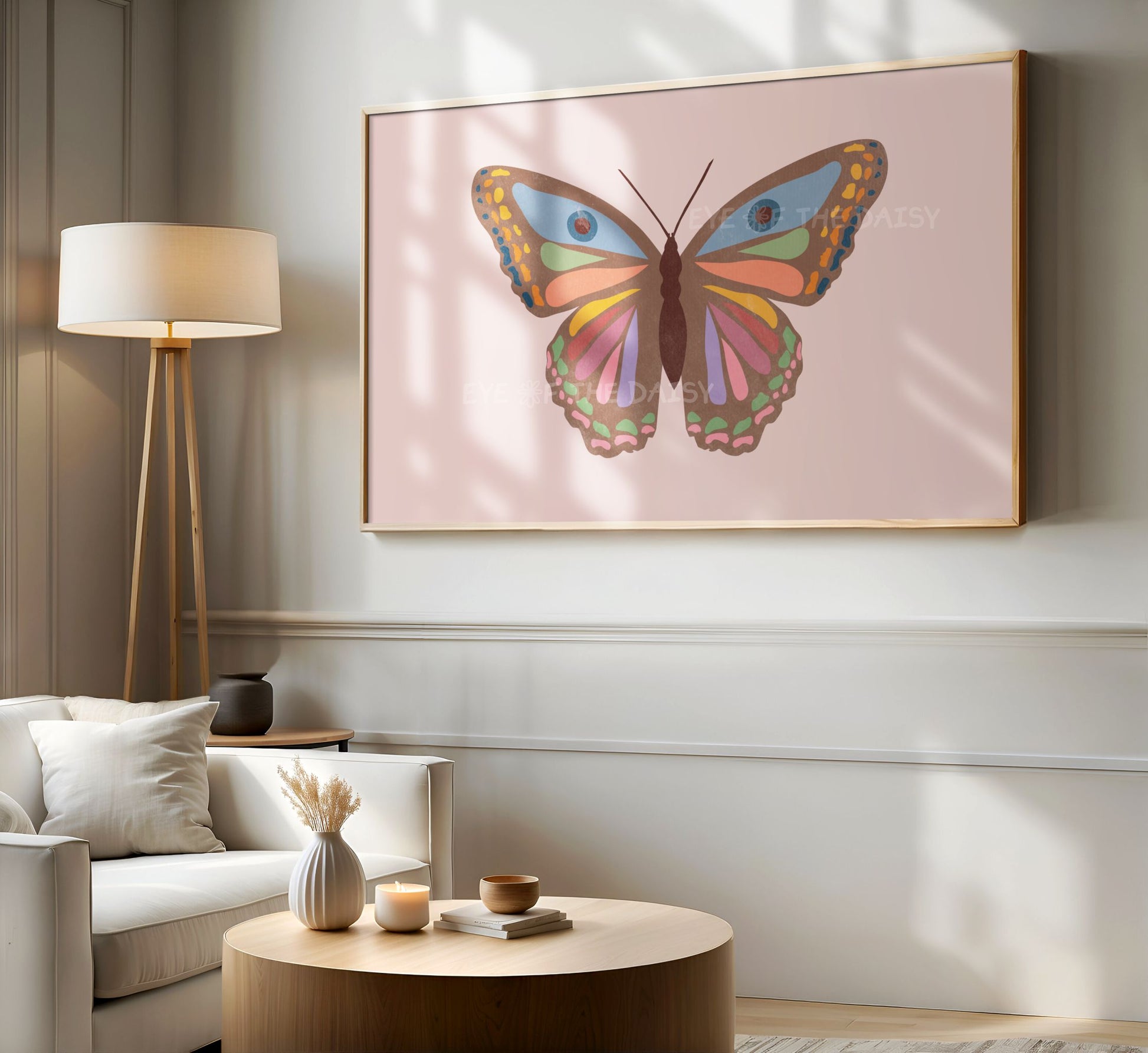Abstract Butterfly 4K TV Art | Blush Pink Eclectic Boho Butterfly Art for TV Screen