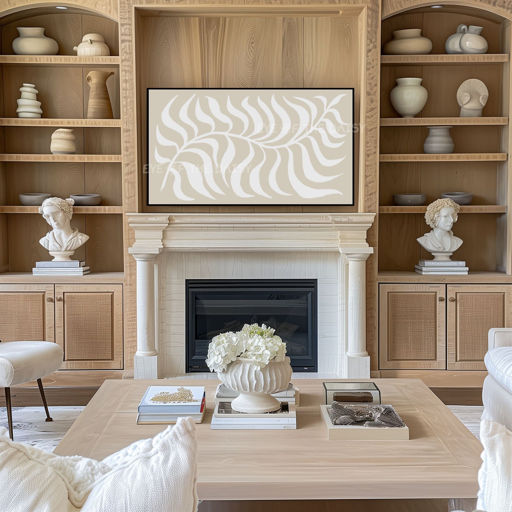 Beige White Abstract Leaf 4K TV Art | Boho Scandi Botanical Art for TV Screen 4K