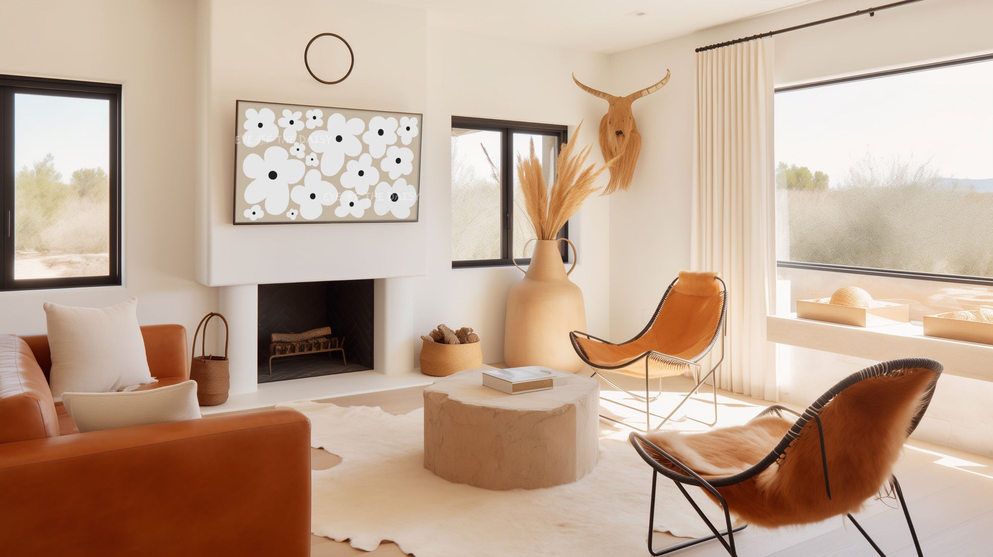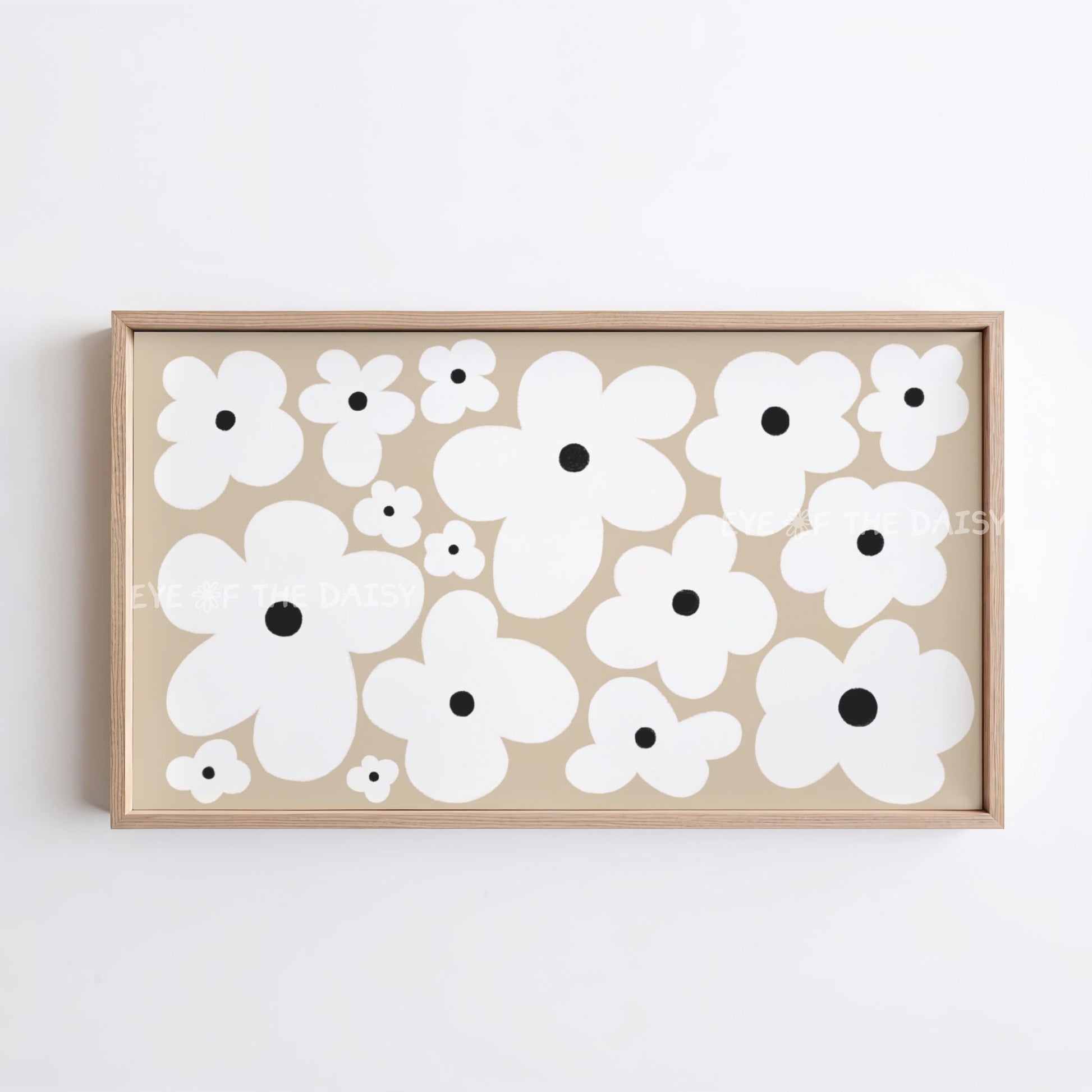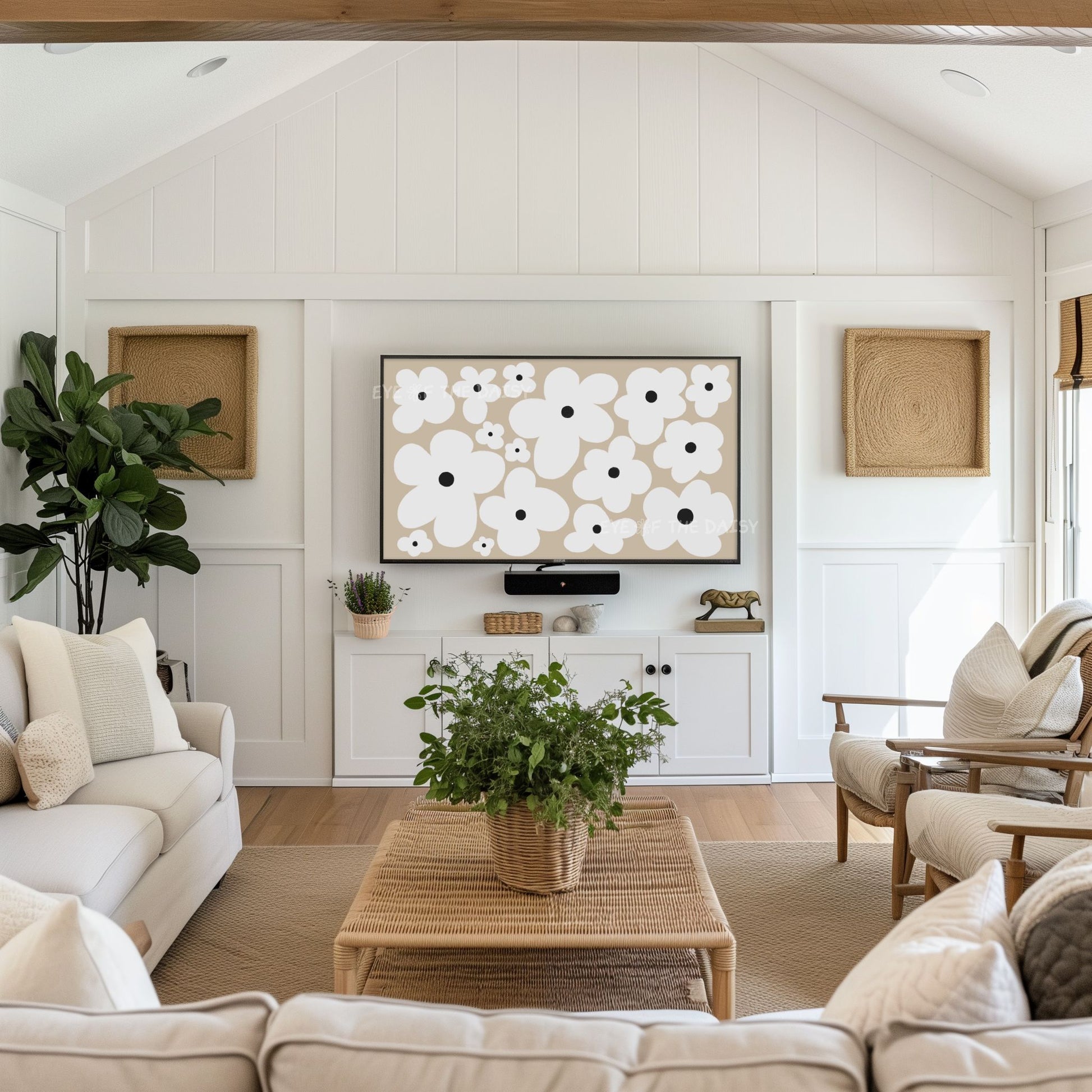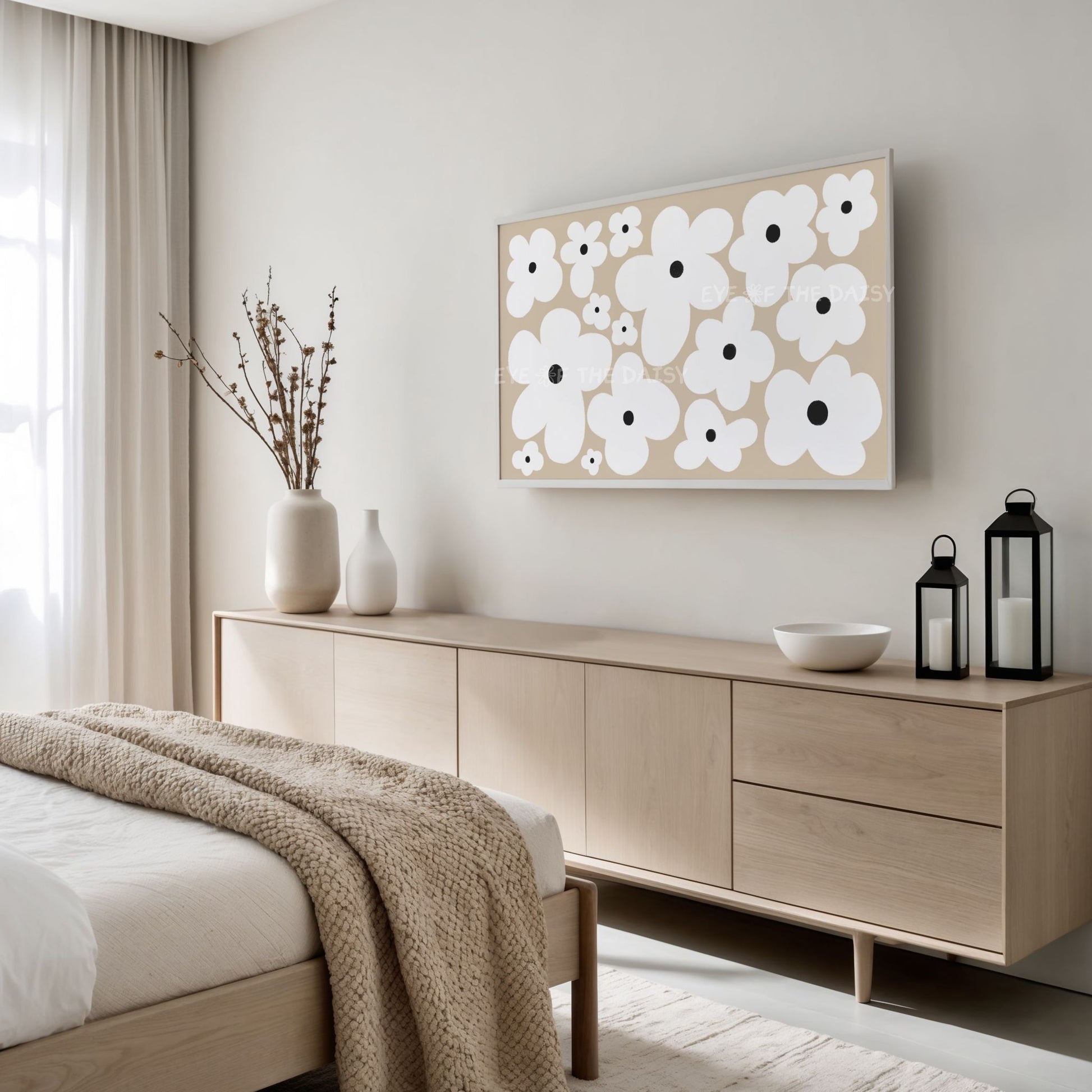 Beige White Boho Flowers 4K TV Art | Neutral Abstract Floral Art for TV Screen