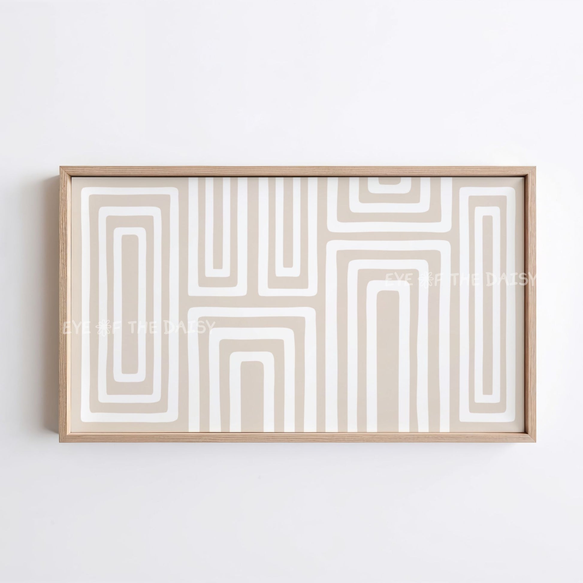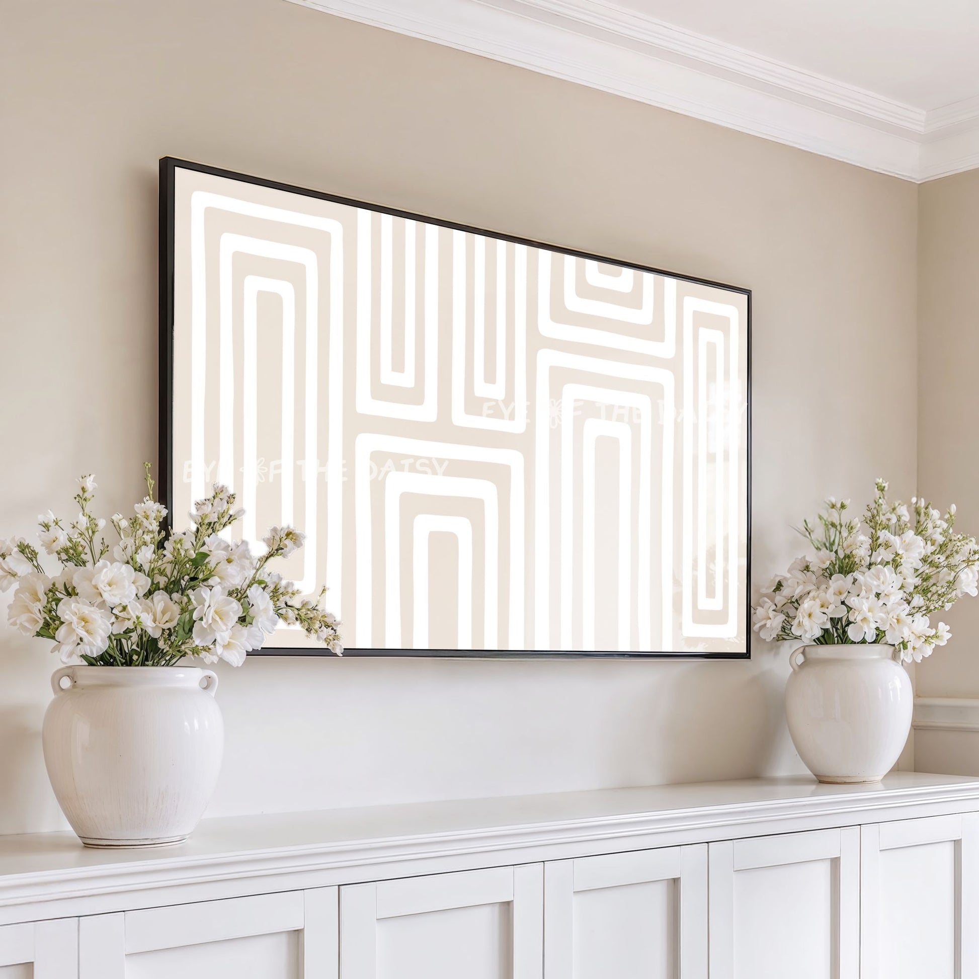 Beige White Minimal Geometric Abstract 4K TV Art | Neutral Contemporary Boho TV Art 4K