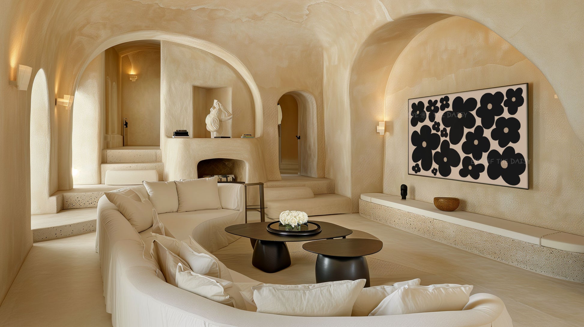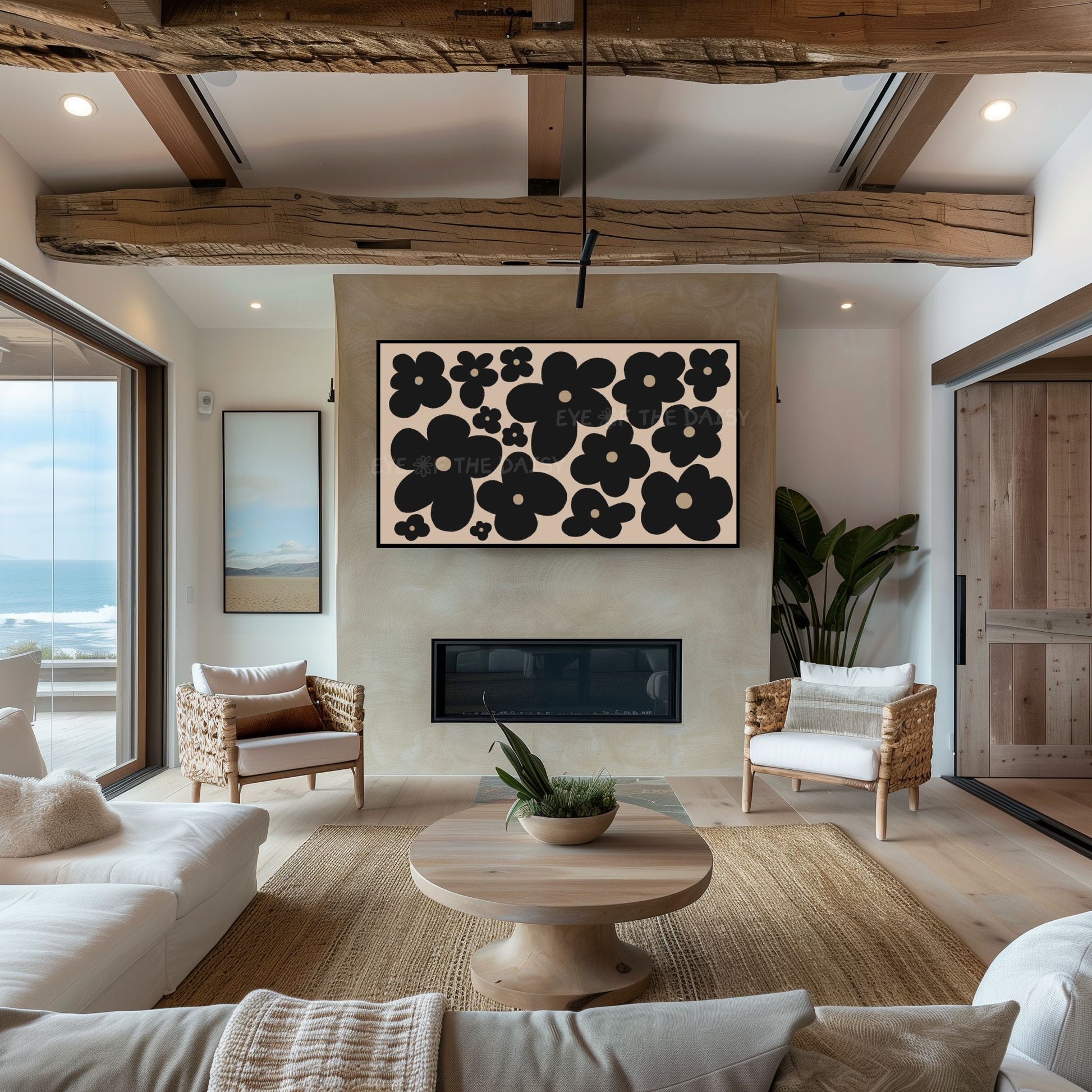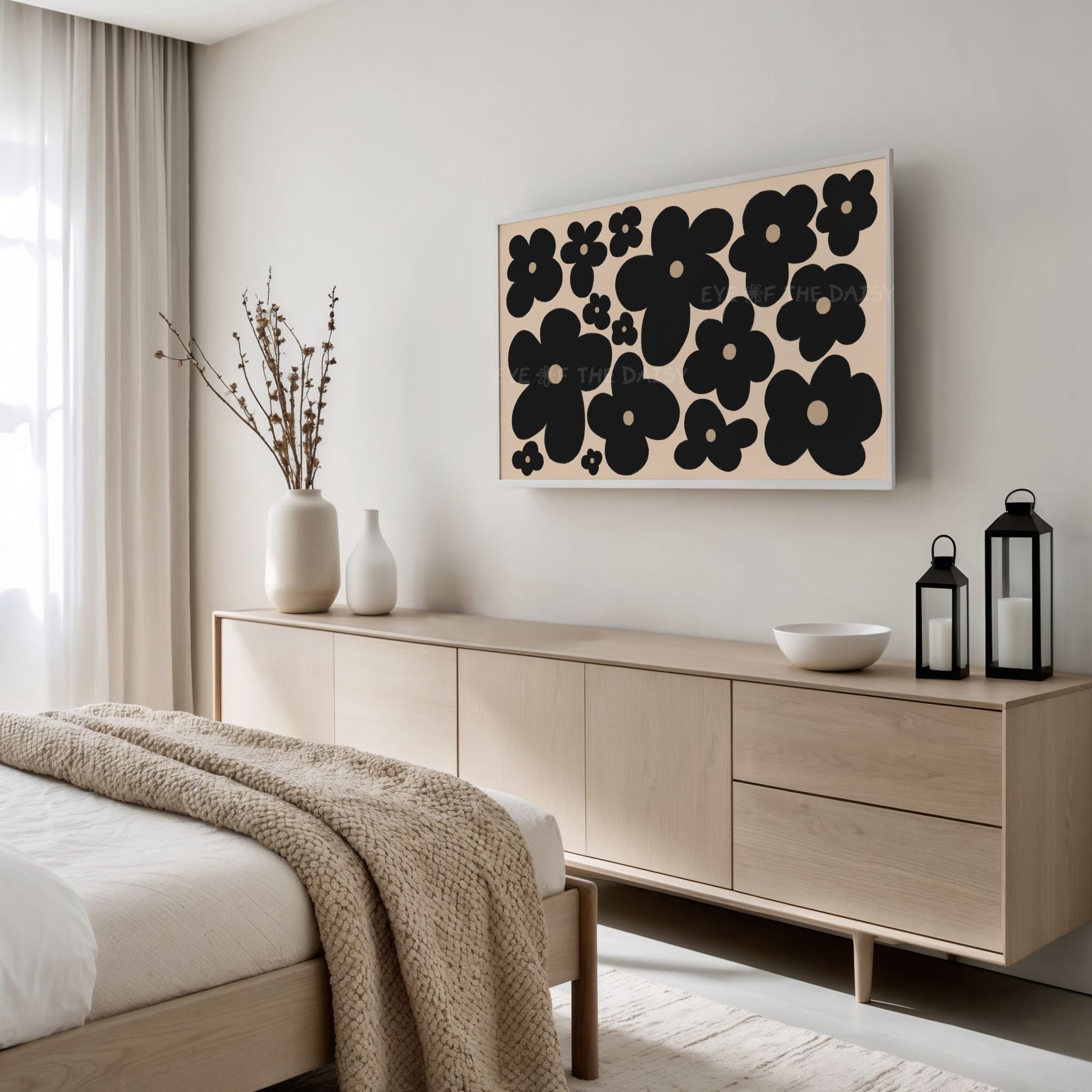 Black Abstract Flowers 4K TV Art | Neutral Boho Floral 4K Art for TV Screen