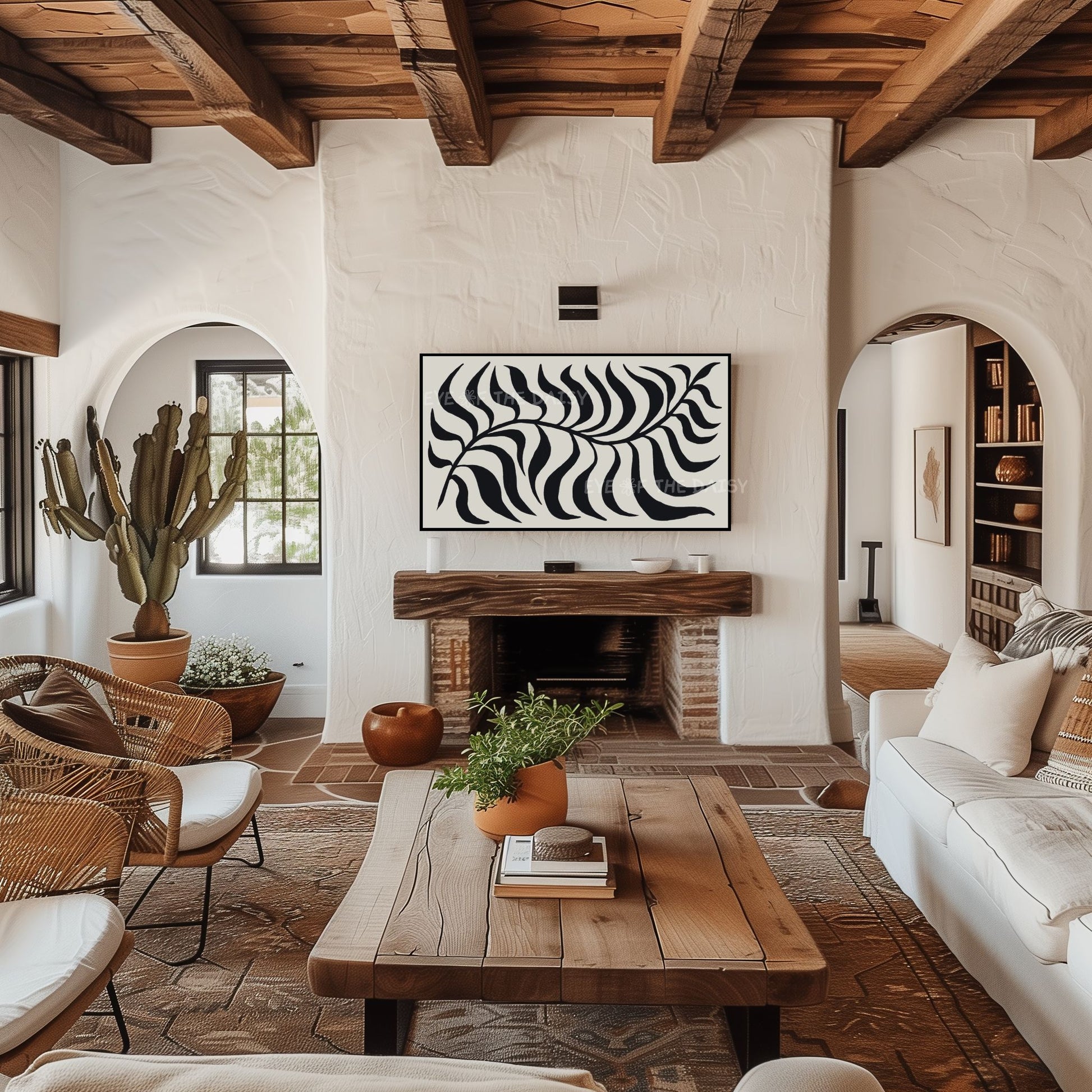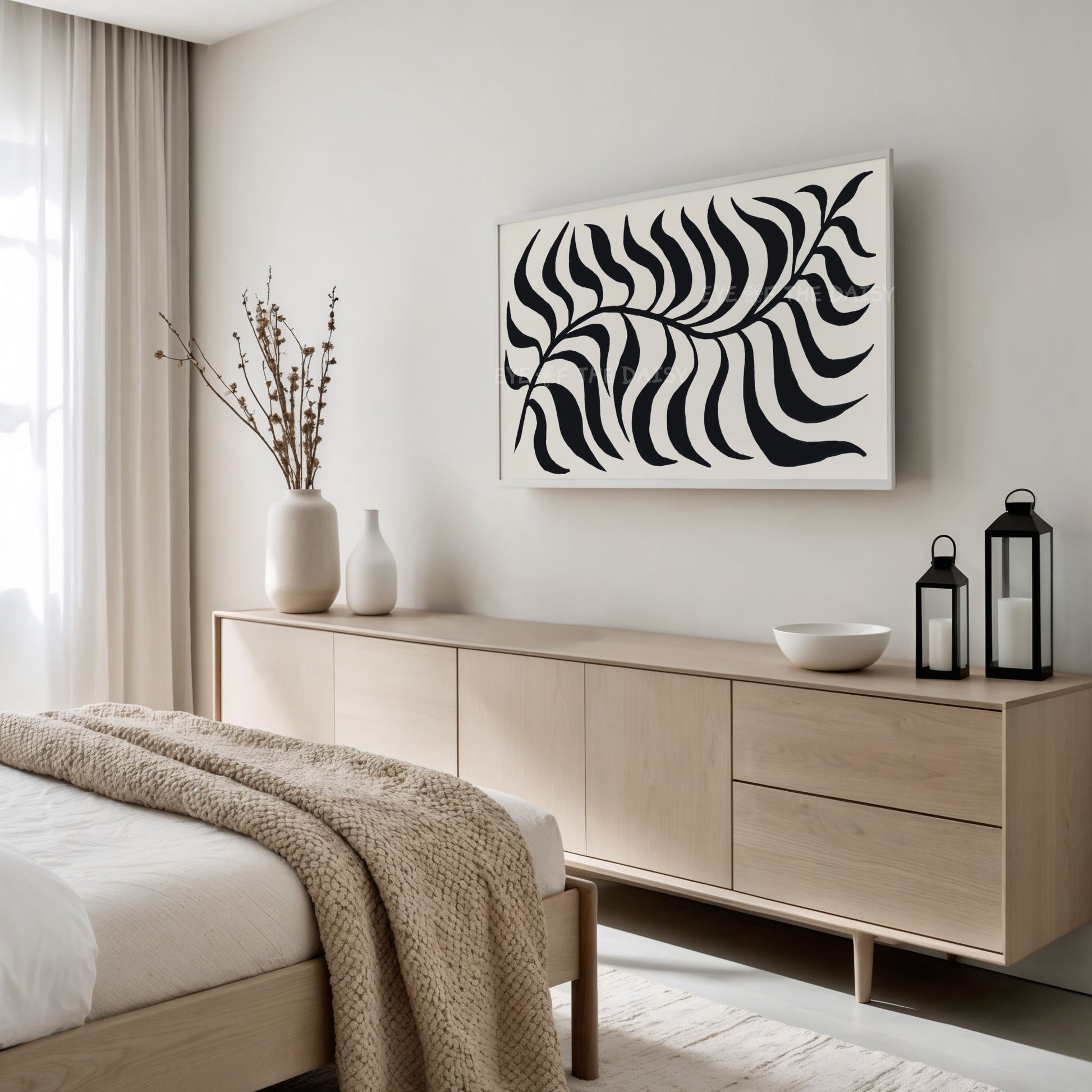 Black Beige Abstract Palm Leaf 4K TV Art | Boho Scandi Botanical TV Artwork 4K