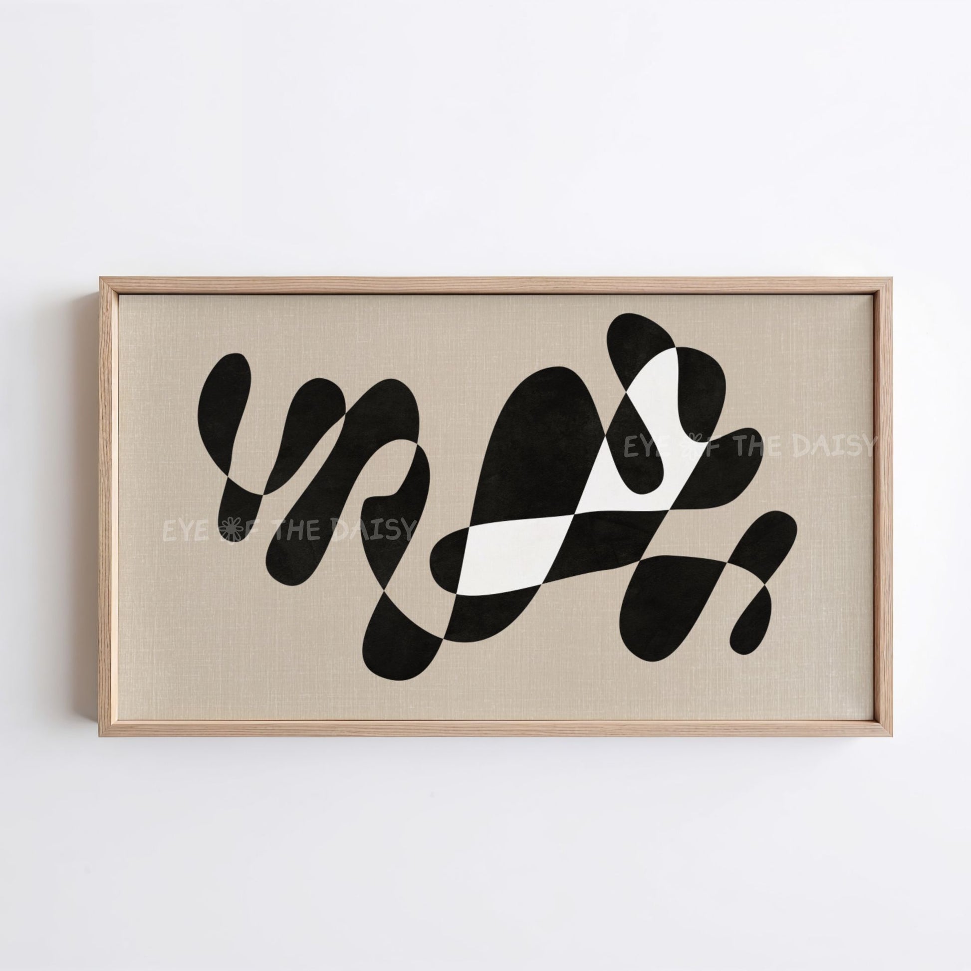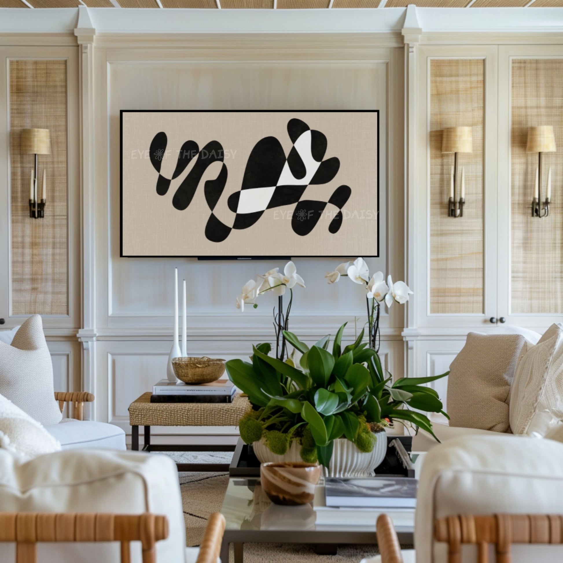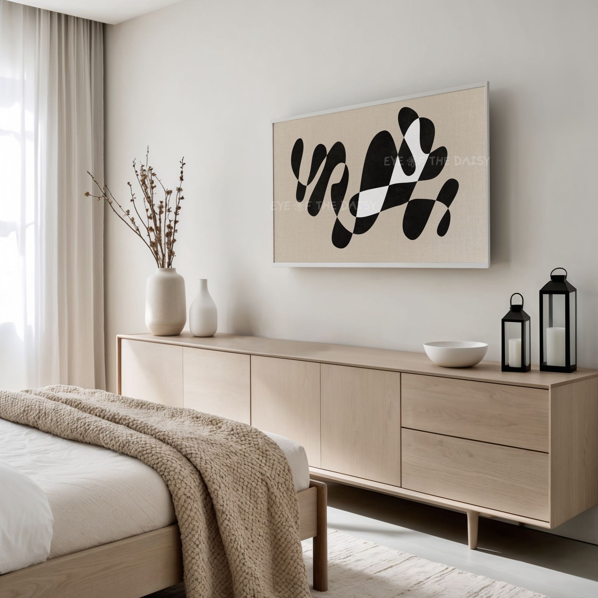 Black Beige Contemporary Abstract 4K TV Art | Modern Organic Shape Art for TV Screen