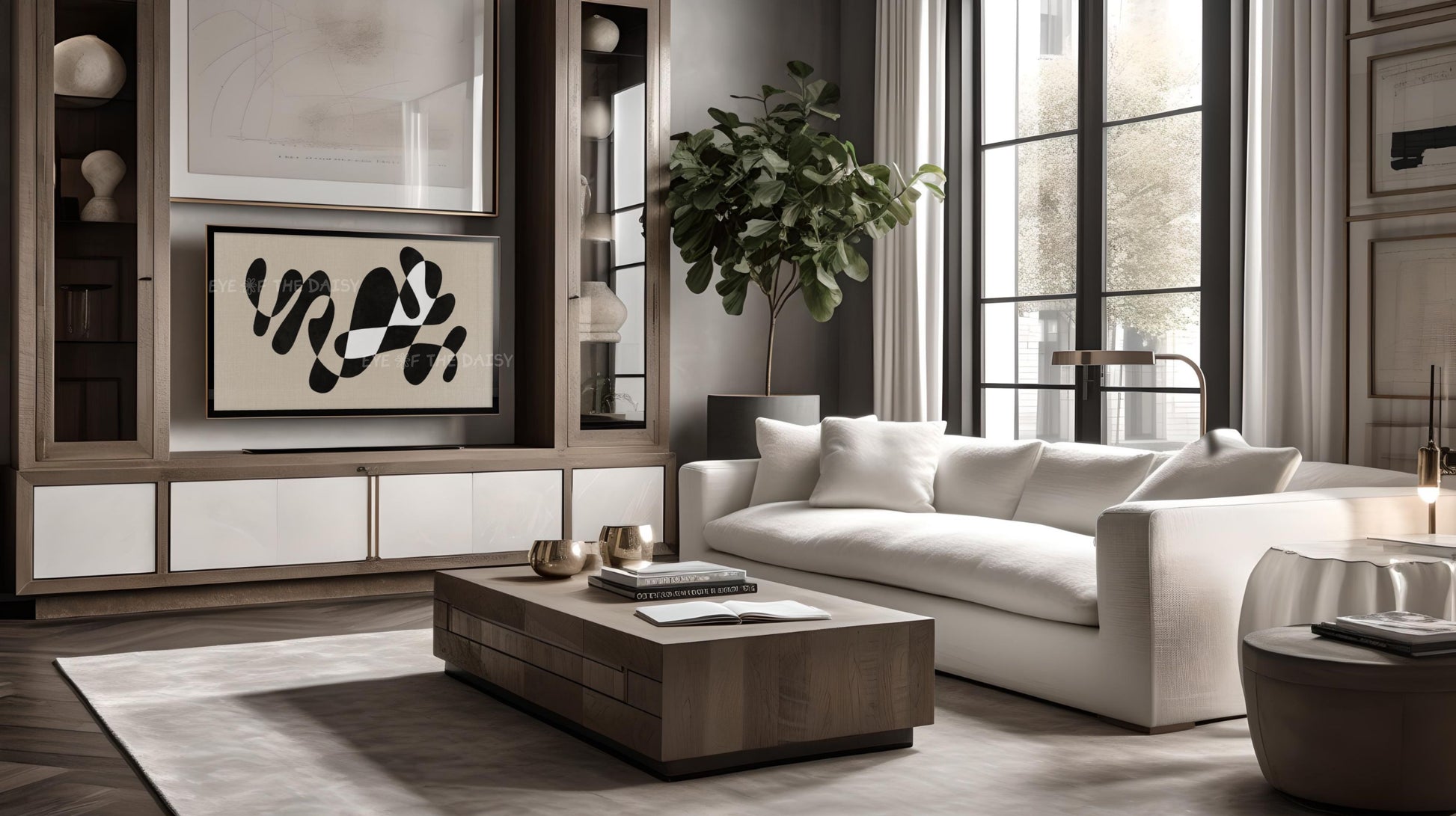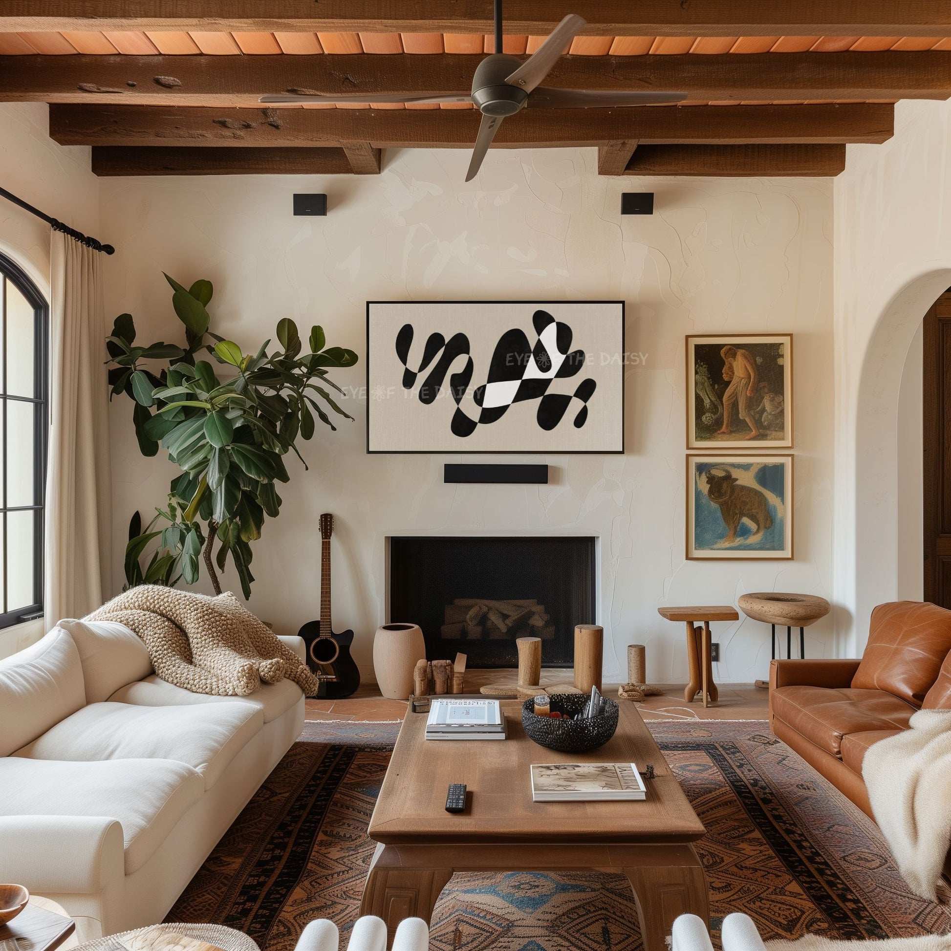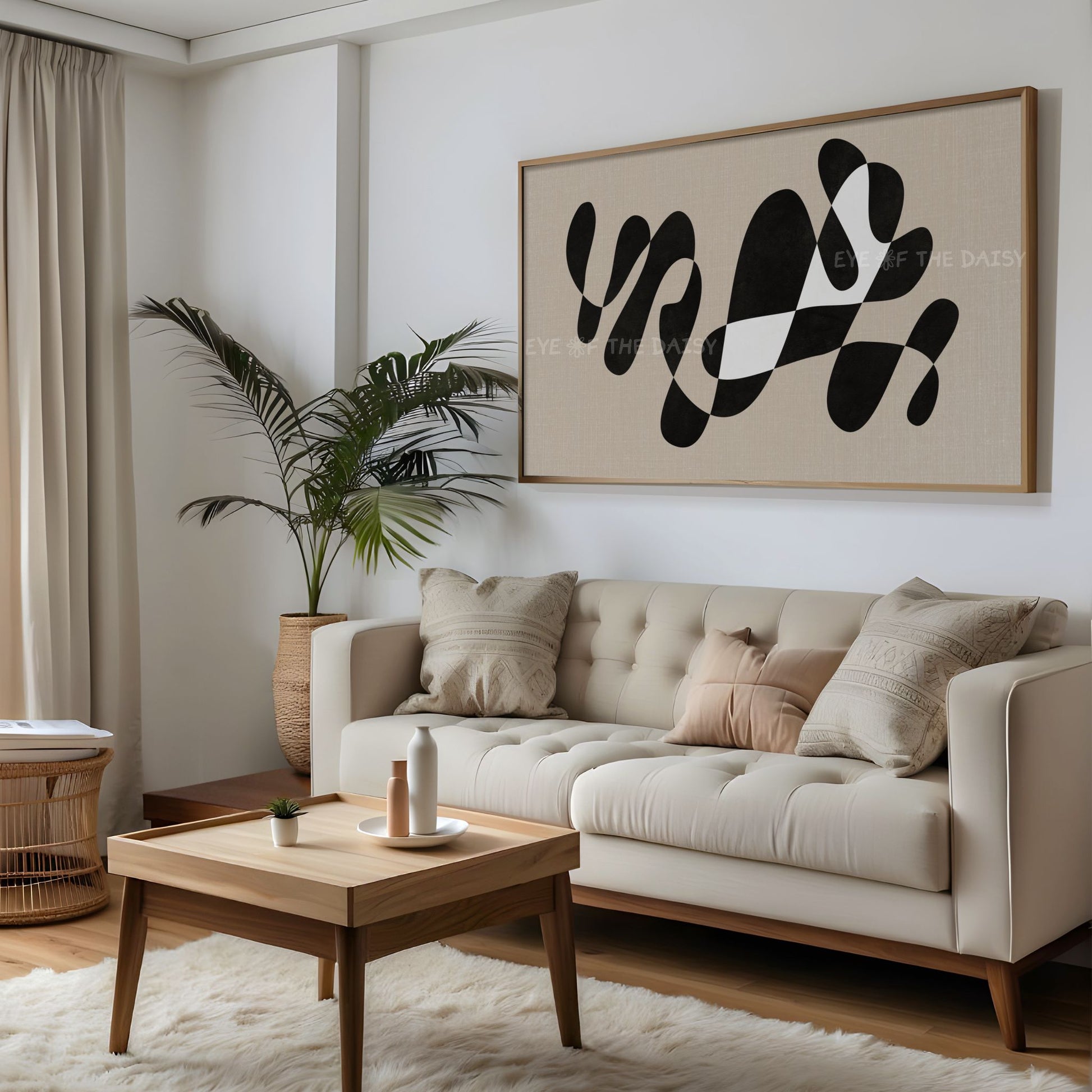 Black Beige Contemporary Abstract 4K TV Art | Modern Organic Shape Art for TV Screen