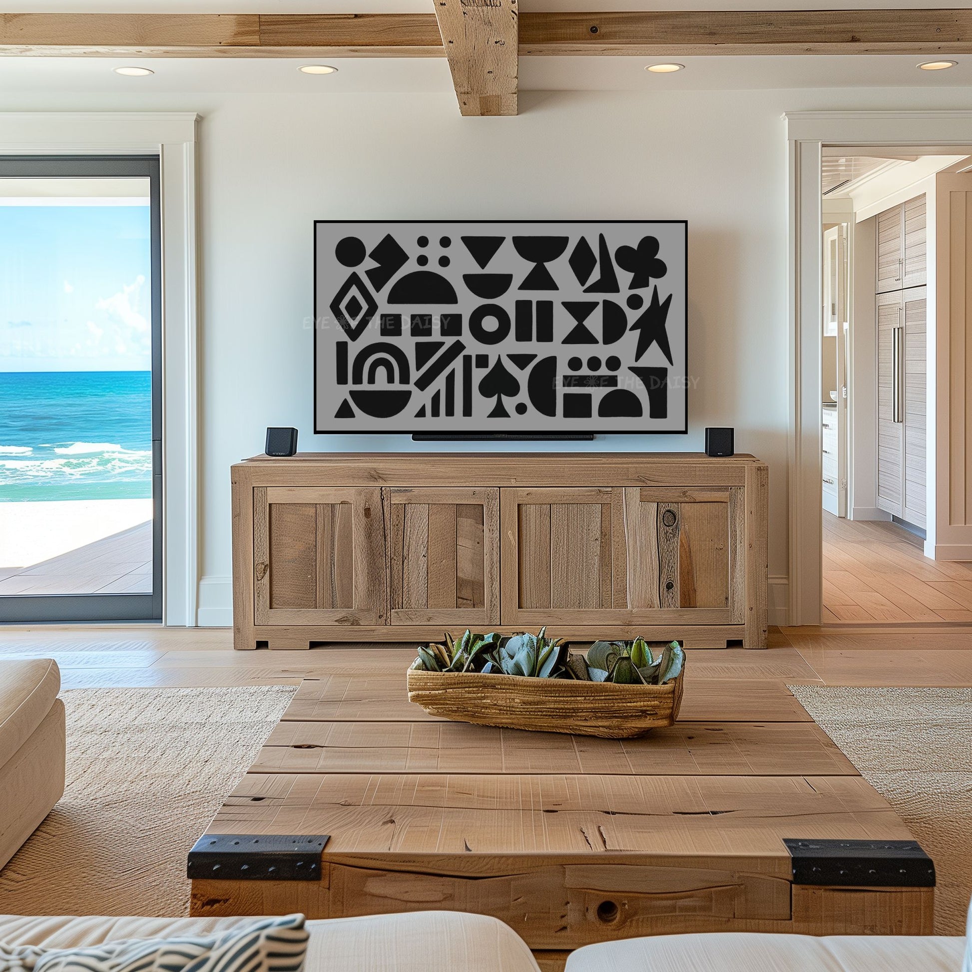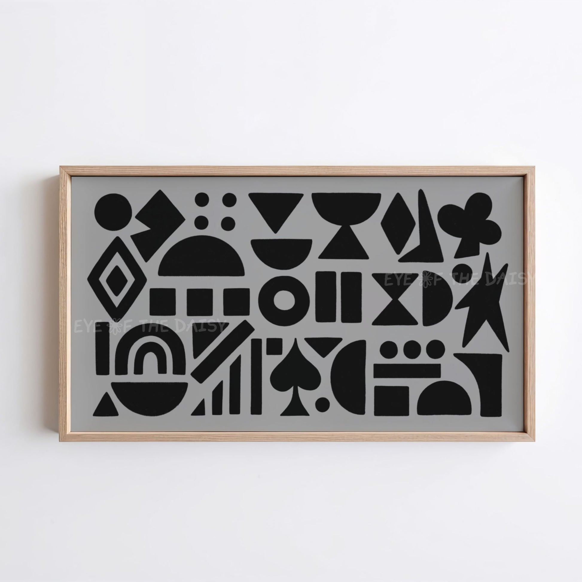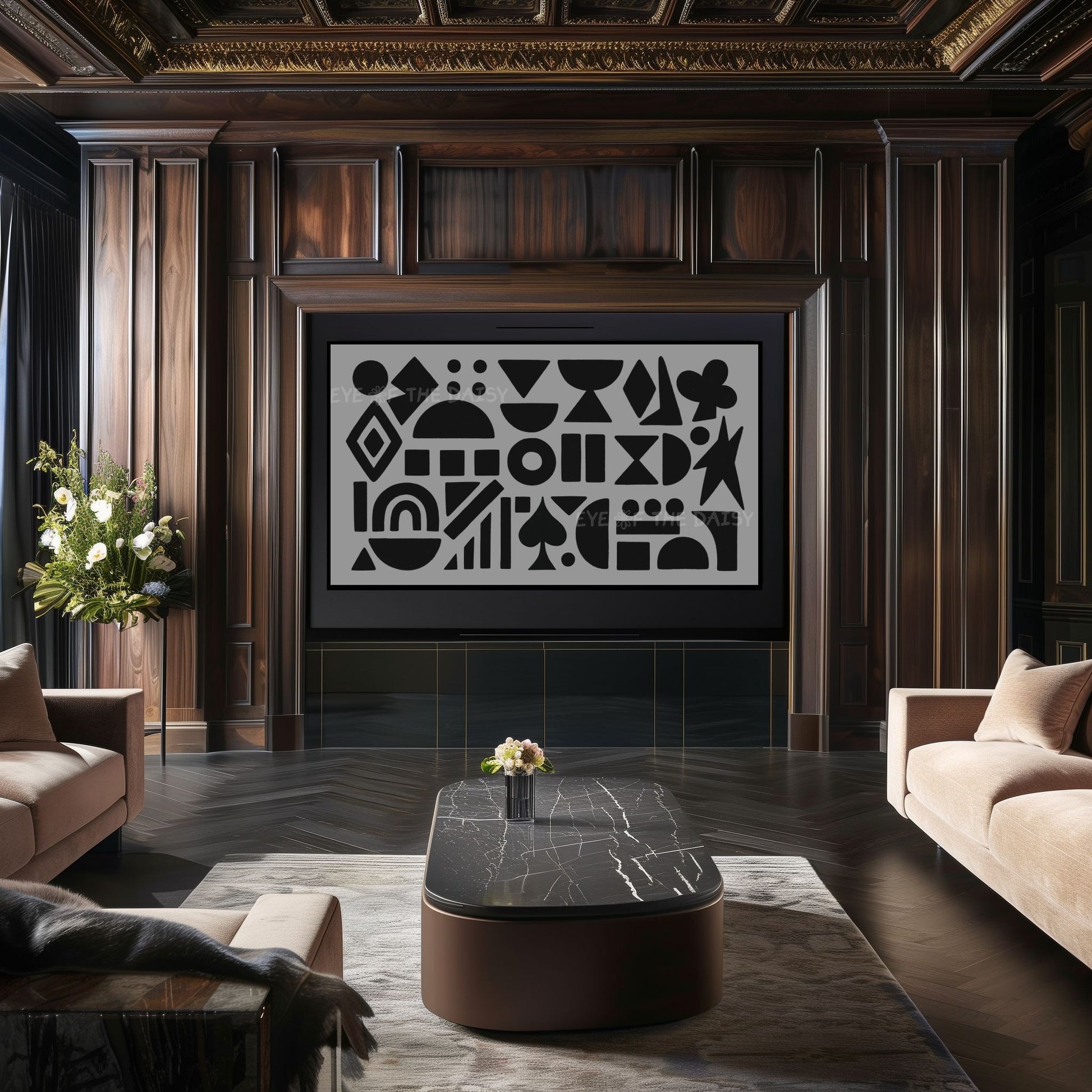 Black Grey Mid Century Modern Shapes 4K TV Art | Contemporary Abstract TV Art 4K