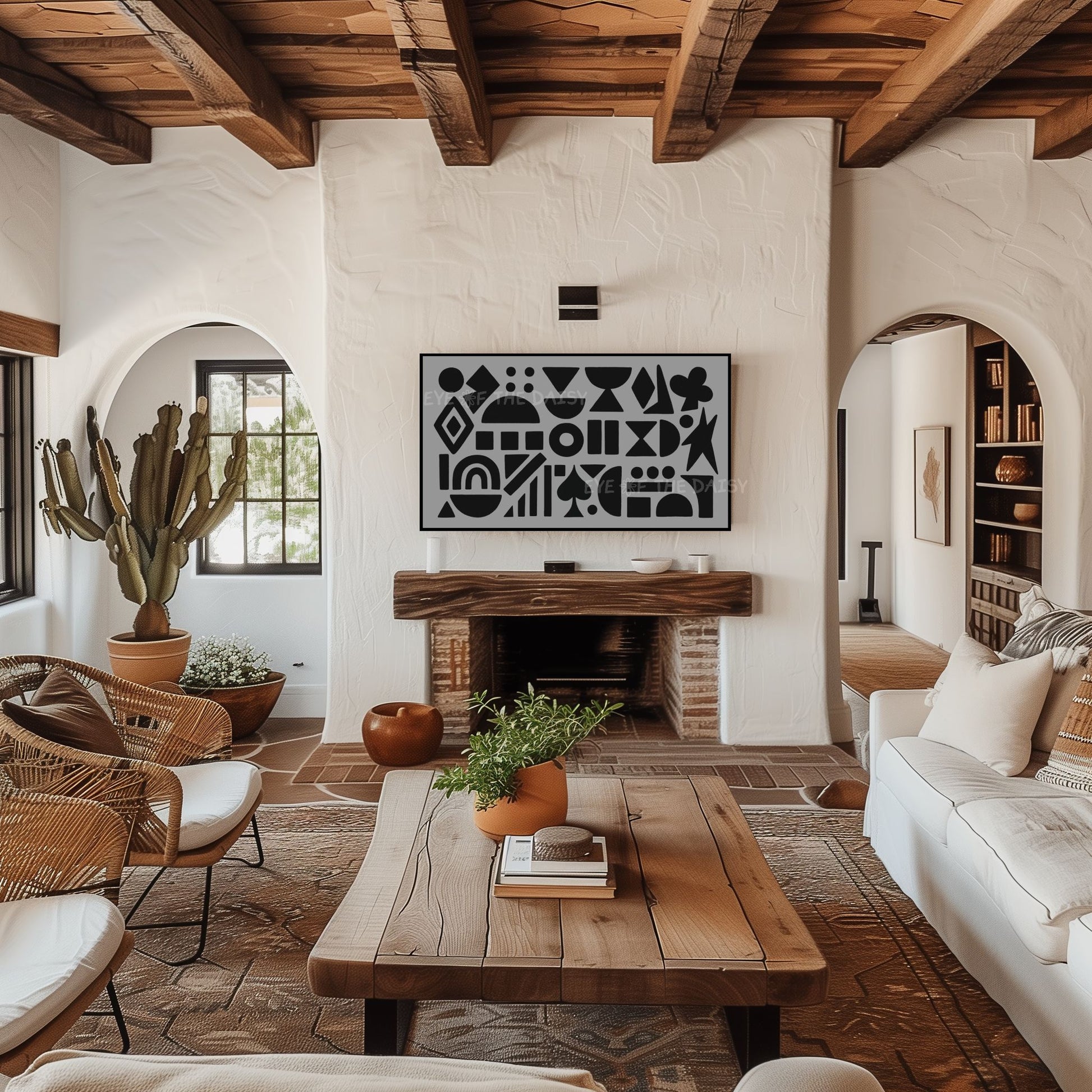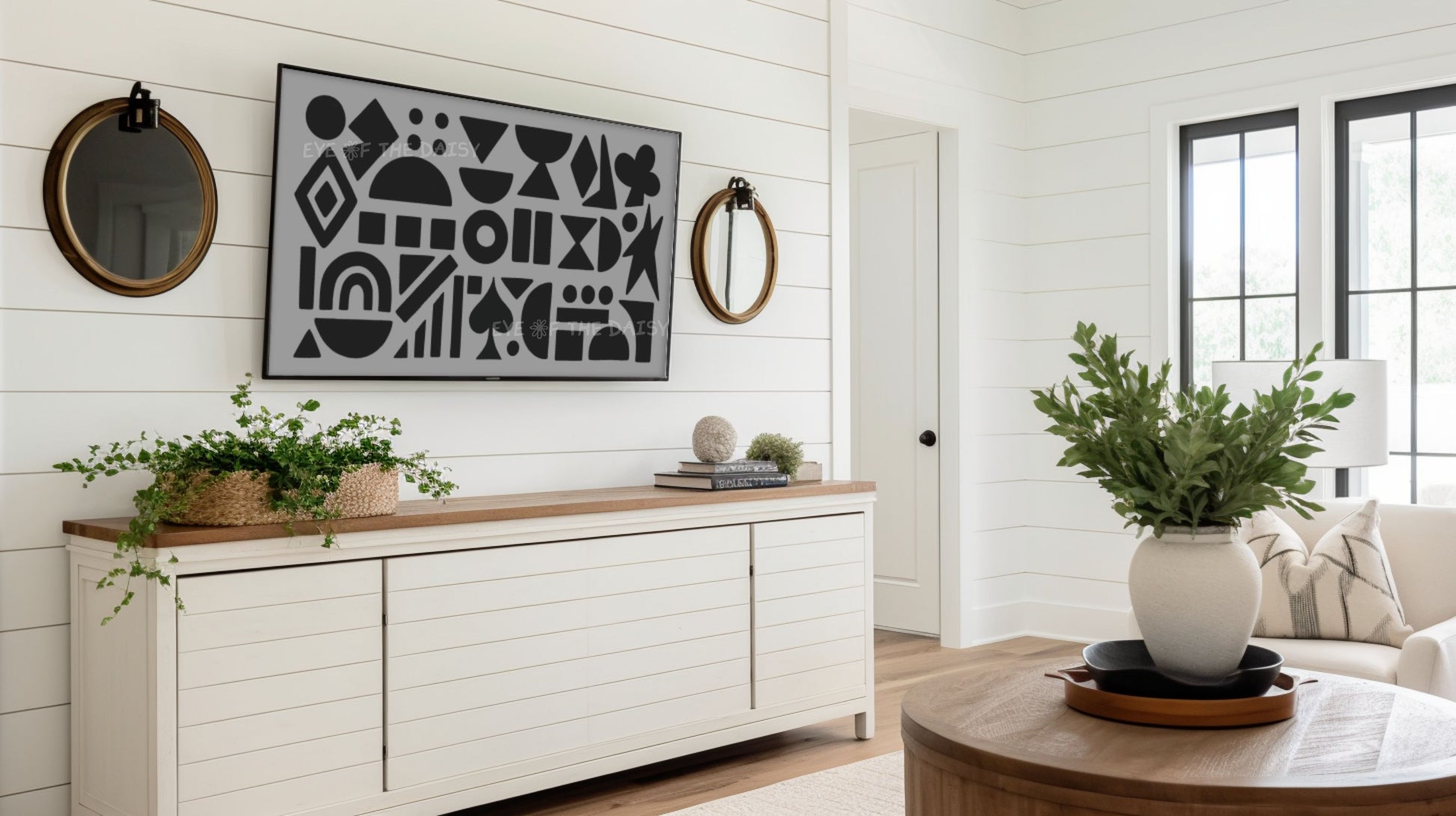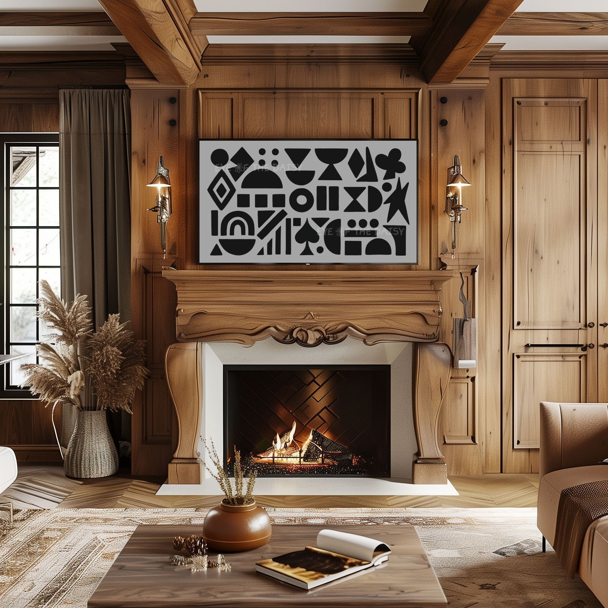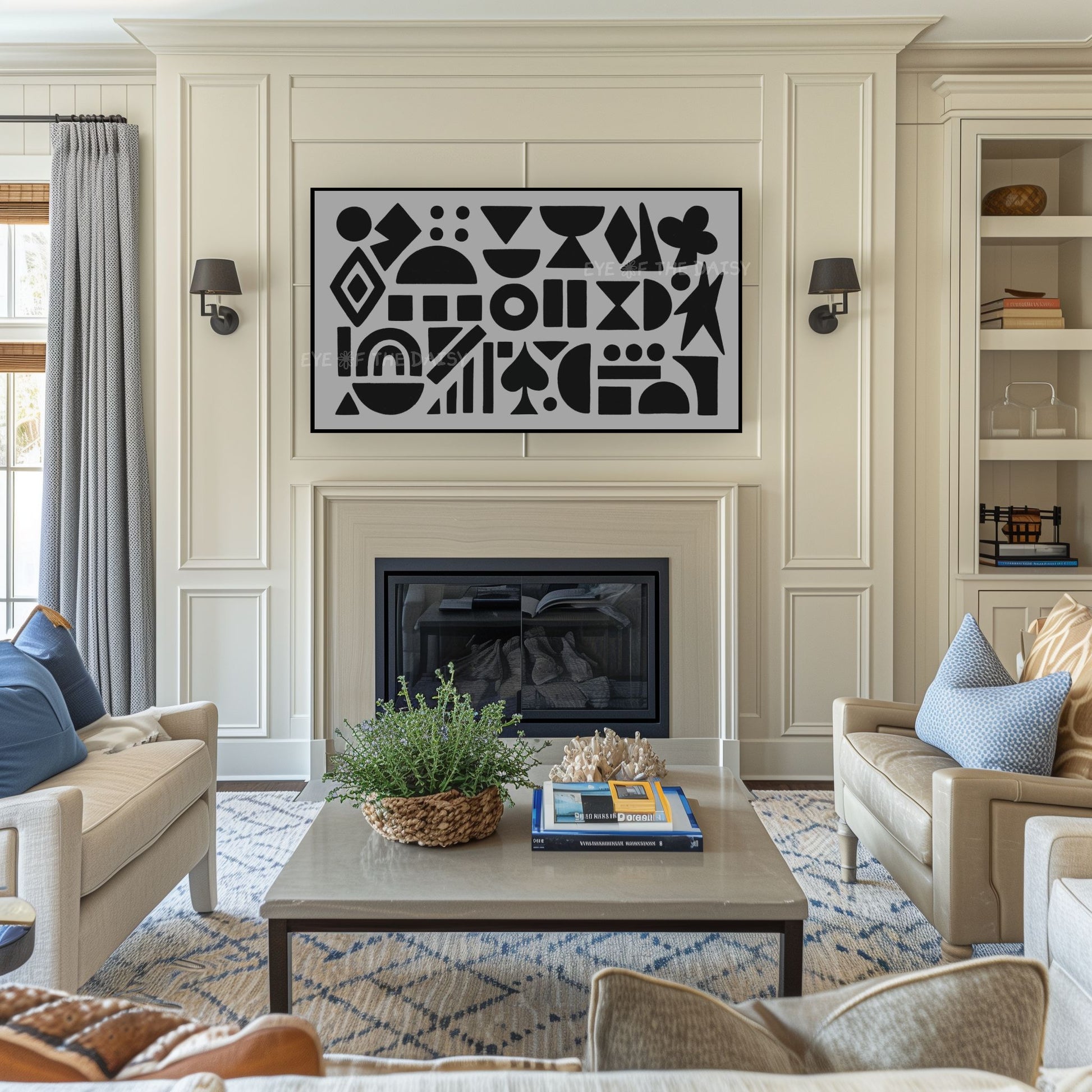 Black Grey Mid Century Modern Shapes 4K TV Art | Contemporary Abstract TV Art 4K