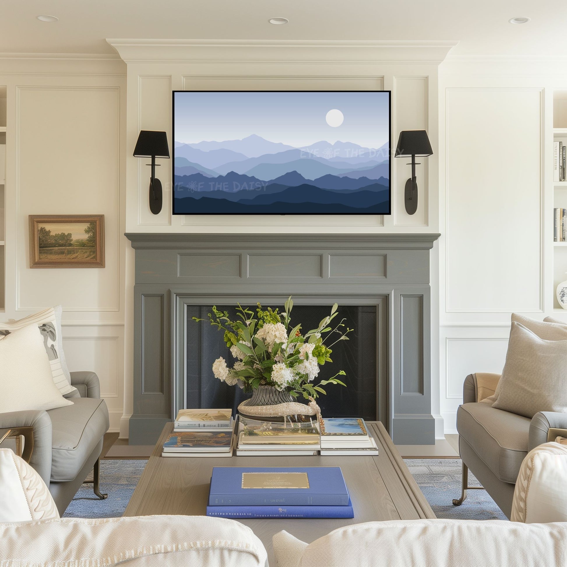 Blue Grey Tone Abstract Mountains 4K TV Art | Calming Minimal Landscape TV Art 4K