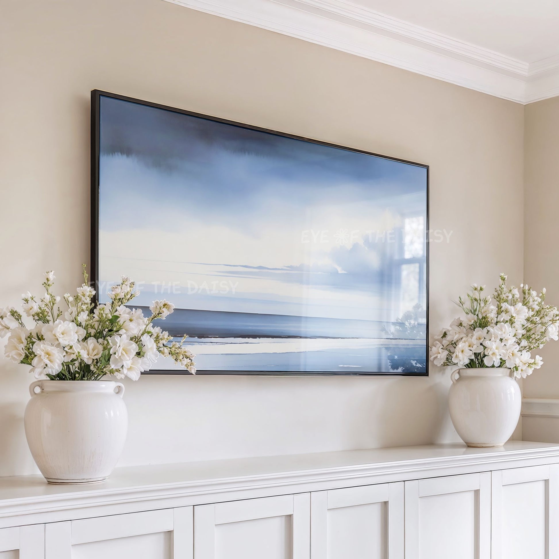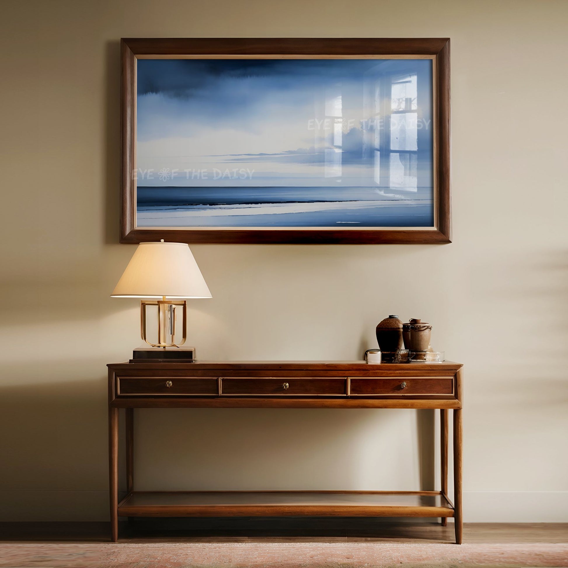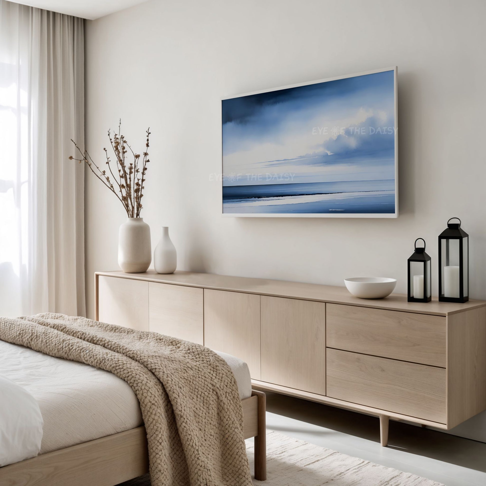 Blue Tone Watercolour Seascape 4K TV Art | Minimal Sea Coastal Landscape TV Art 4K