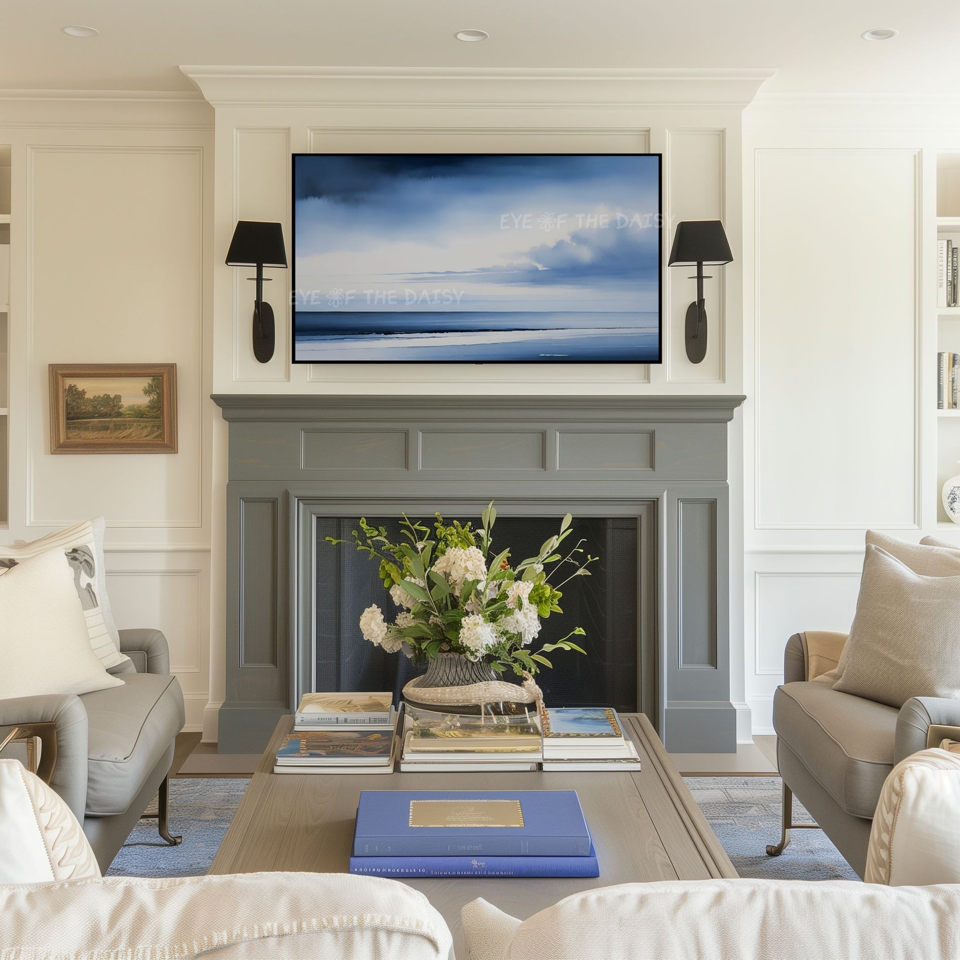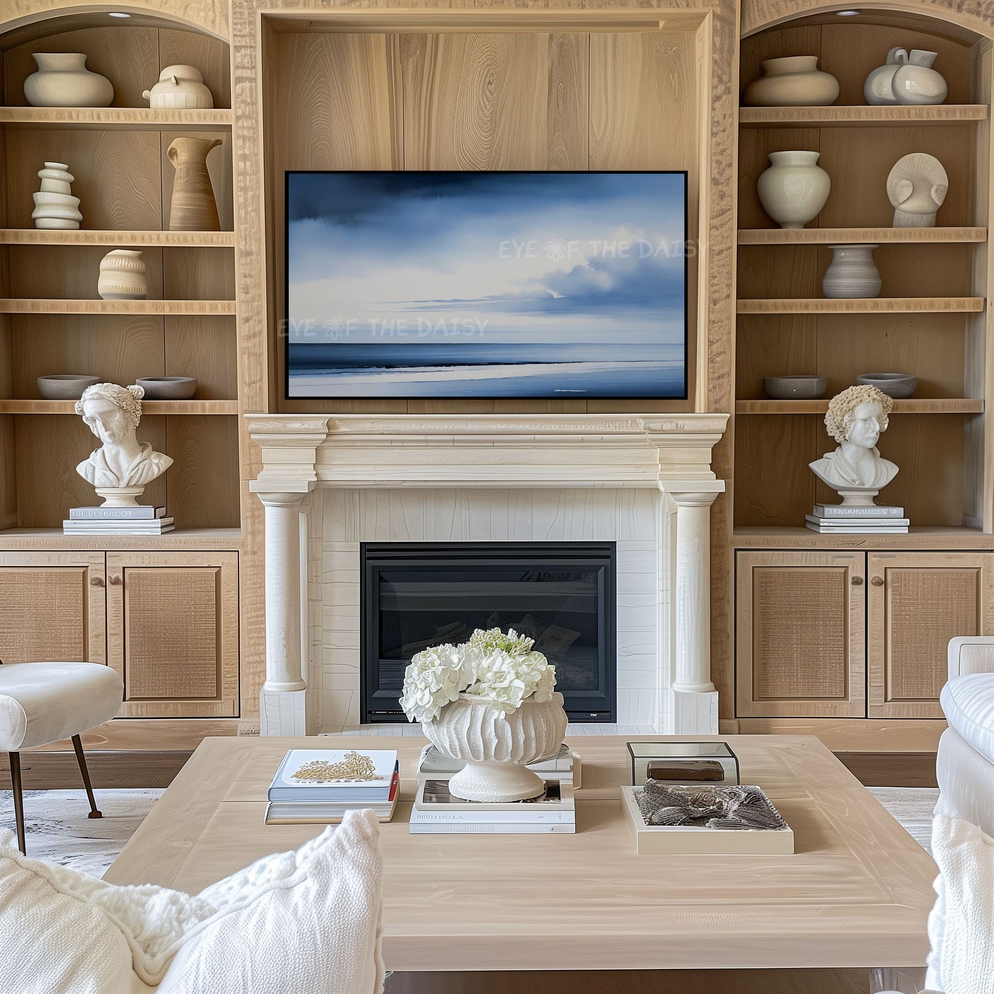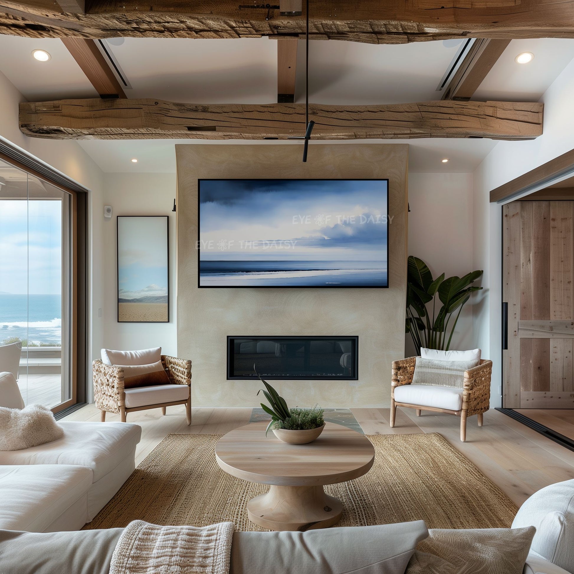 Blue Tone Watercolour Seascape 4K TV Art | Minimal Sea Coastal Landscape TV Art 4K