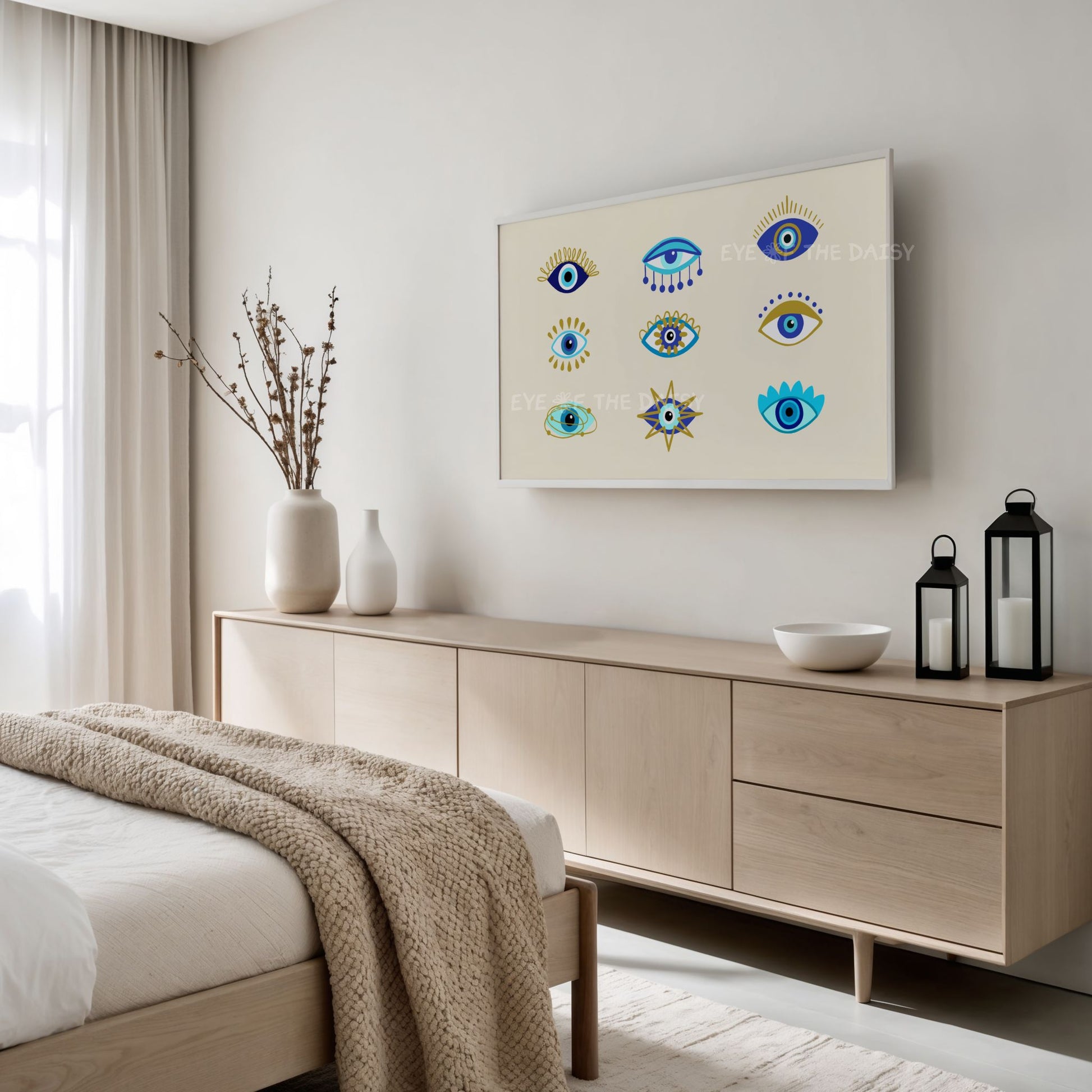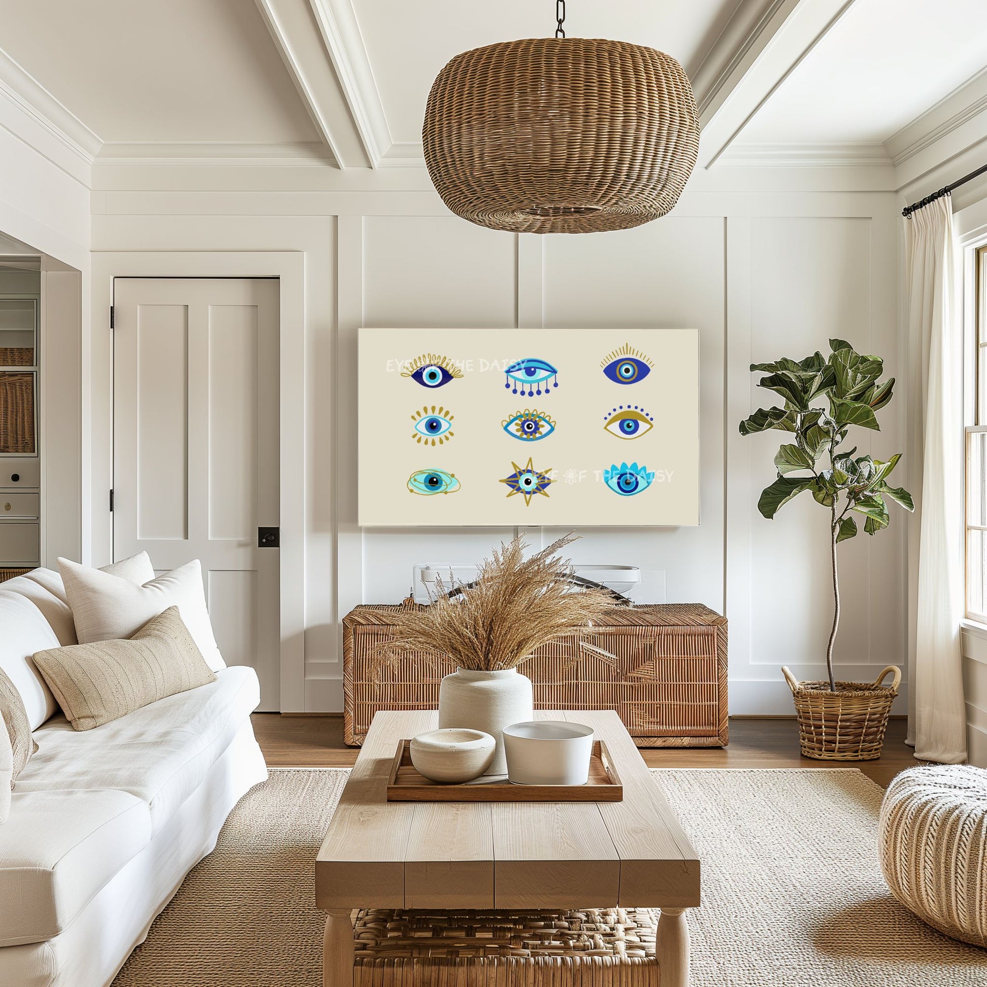 Blue Turquoise Gold Abstract Evil Eye 4K TV Art | Mediterranean Boho 4K TV Art