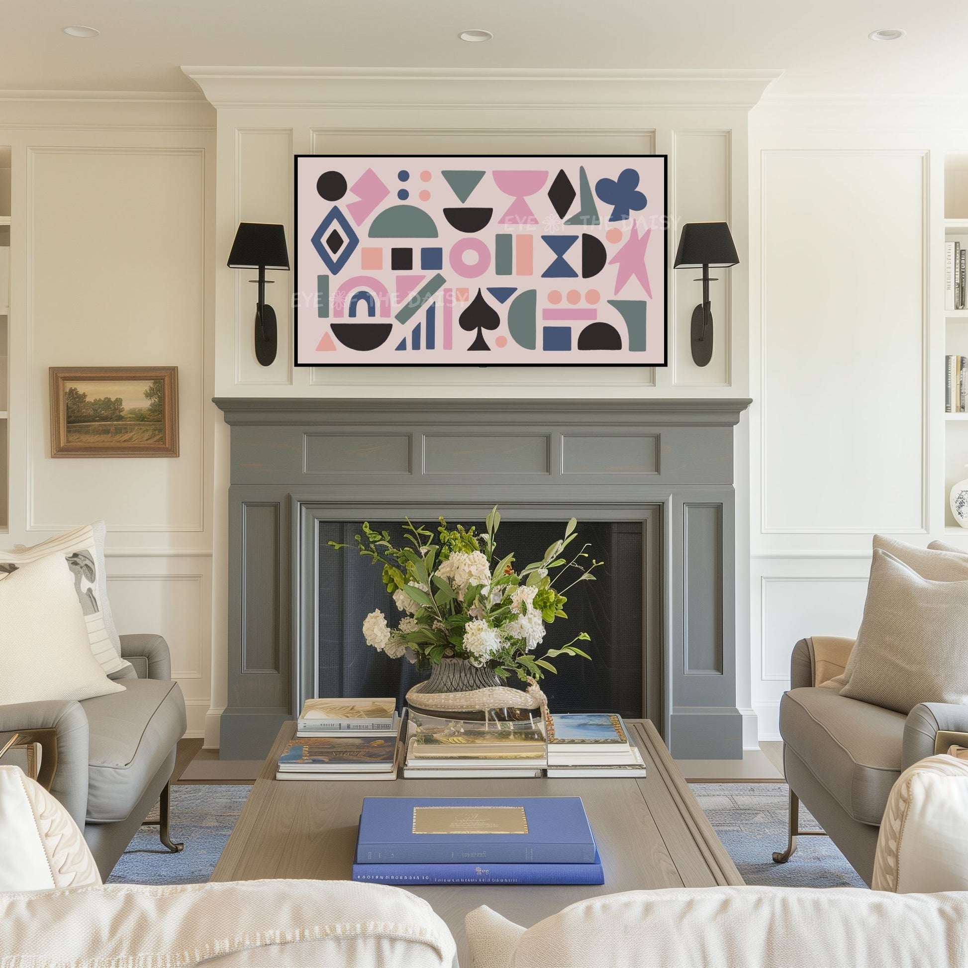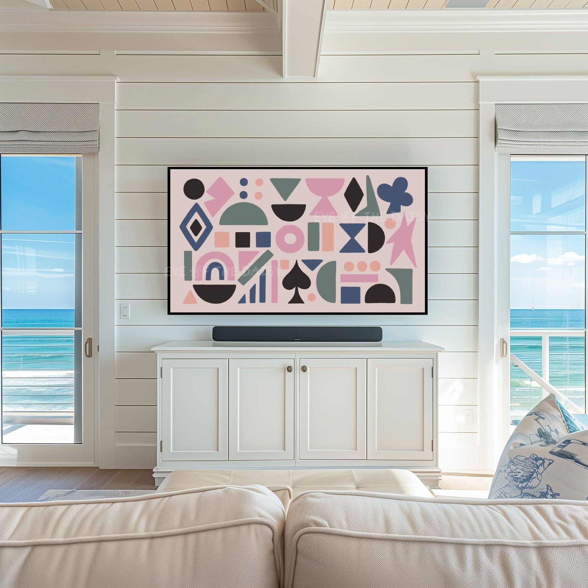 Blush Pink Navy Blue Green Abstract Shapes 4K TV Art | Contemporary Art for TV Screen