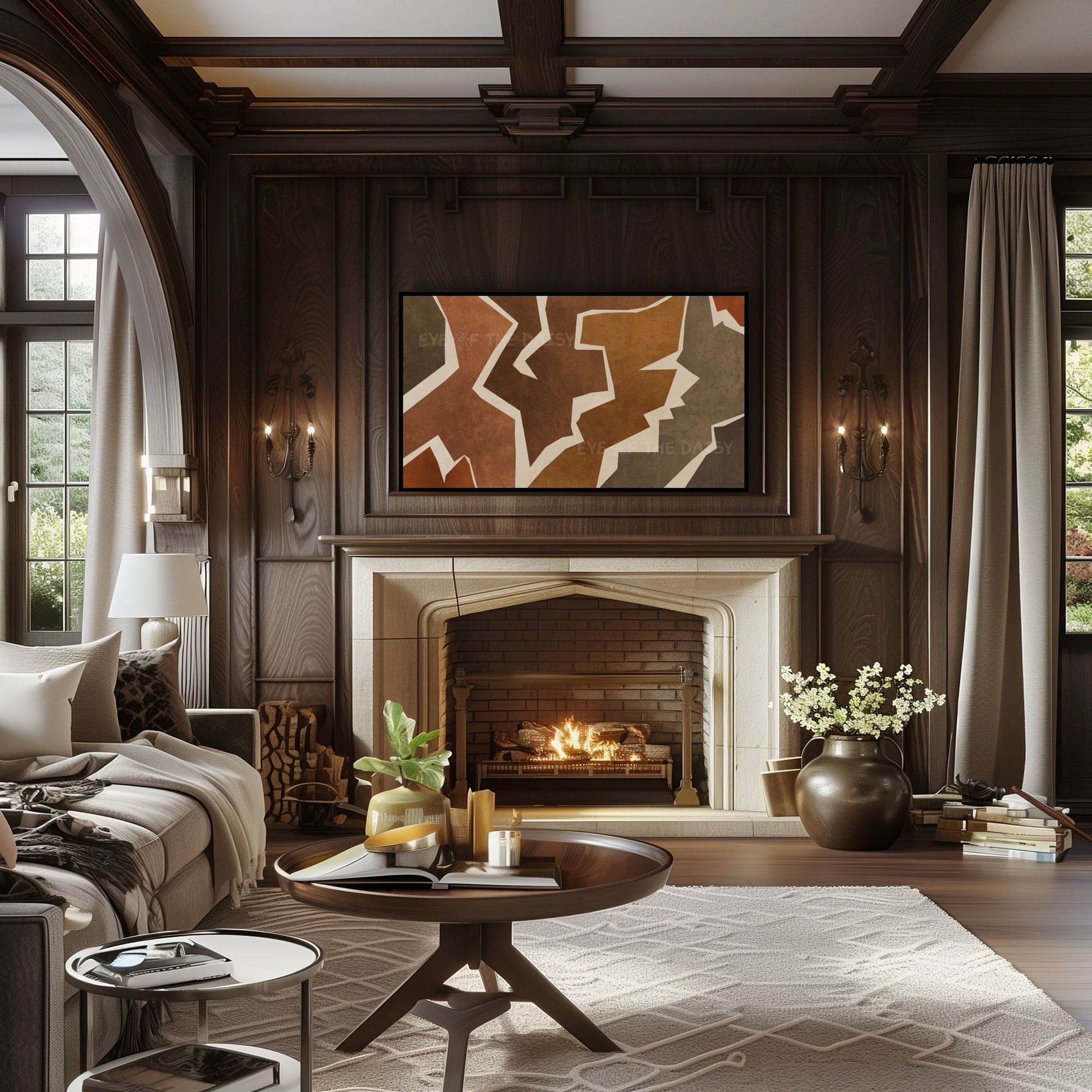 Brown Tan Grey Boho Abstract 4K TV Art | Geometric Animal Print Art for TV Screen