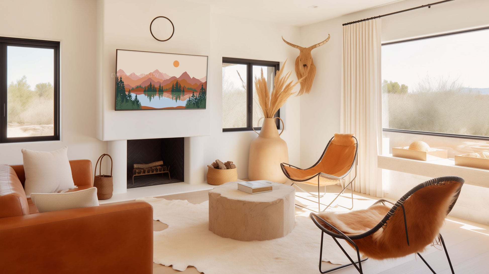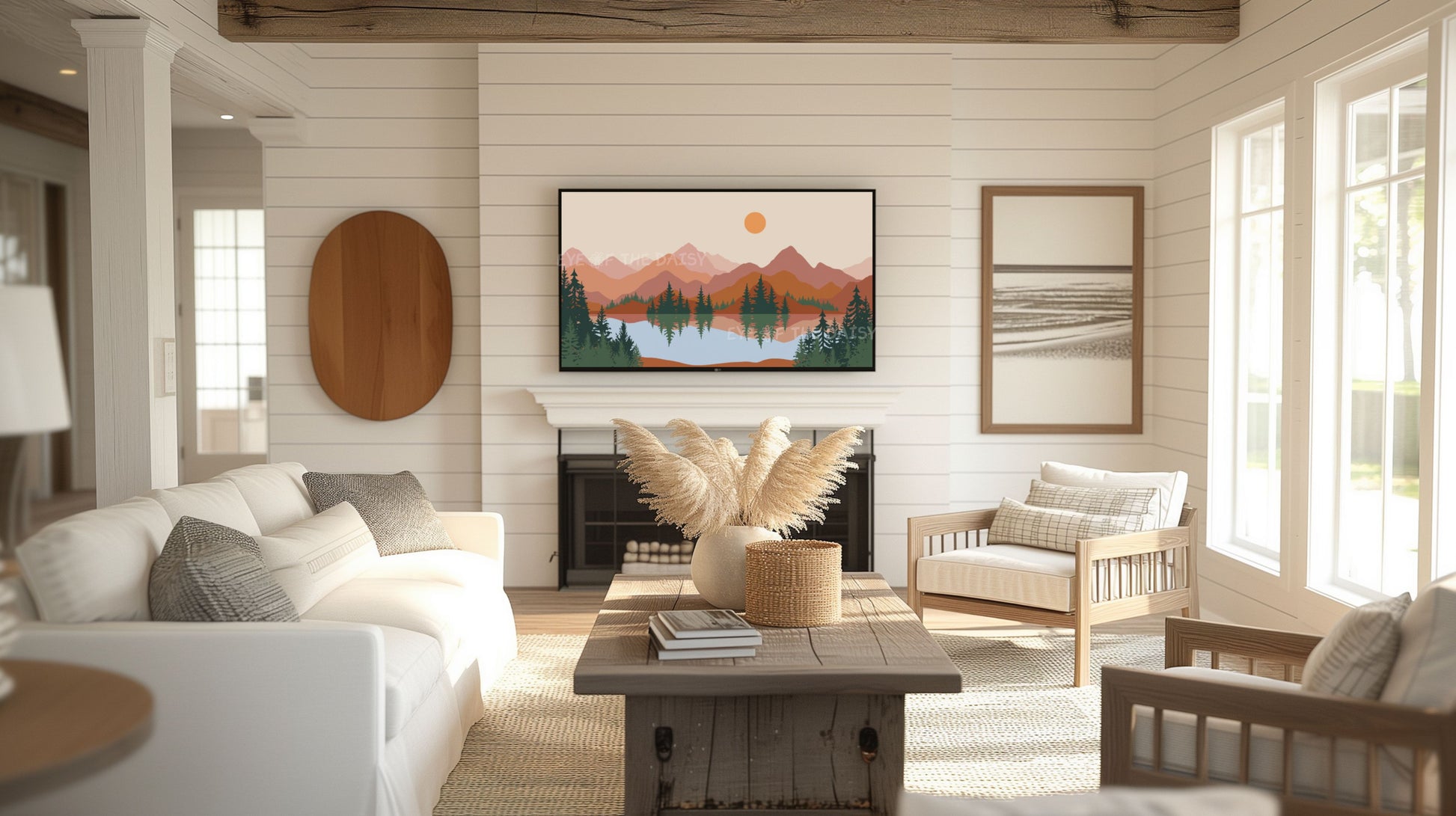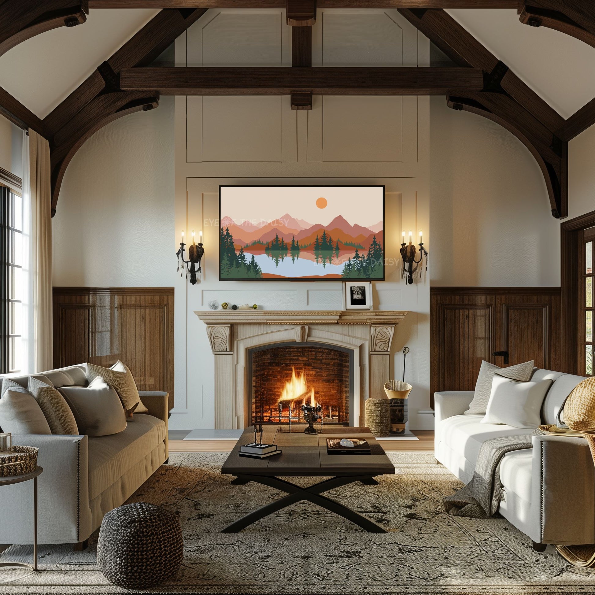 Boho Abstract Landscape 4K TV Art | Mid Century Modern Mountains Lake 4K TV Art