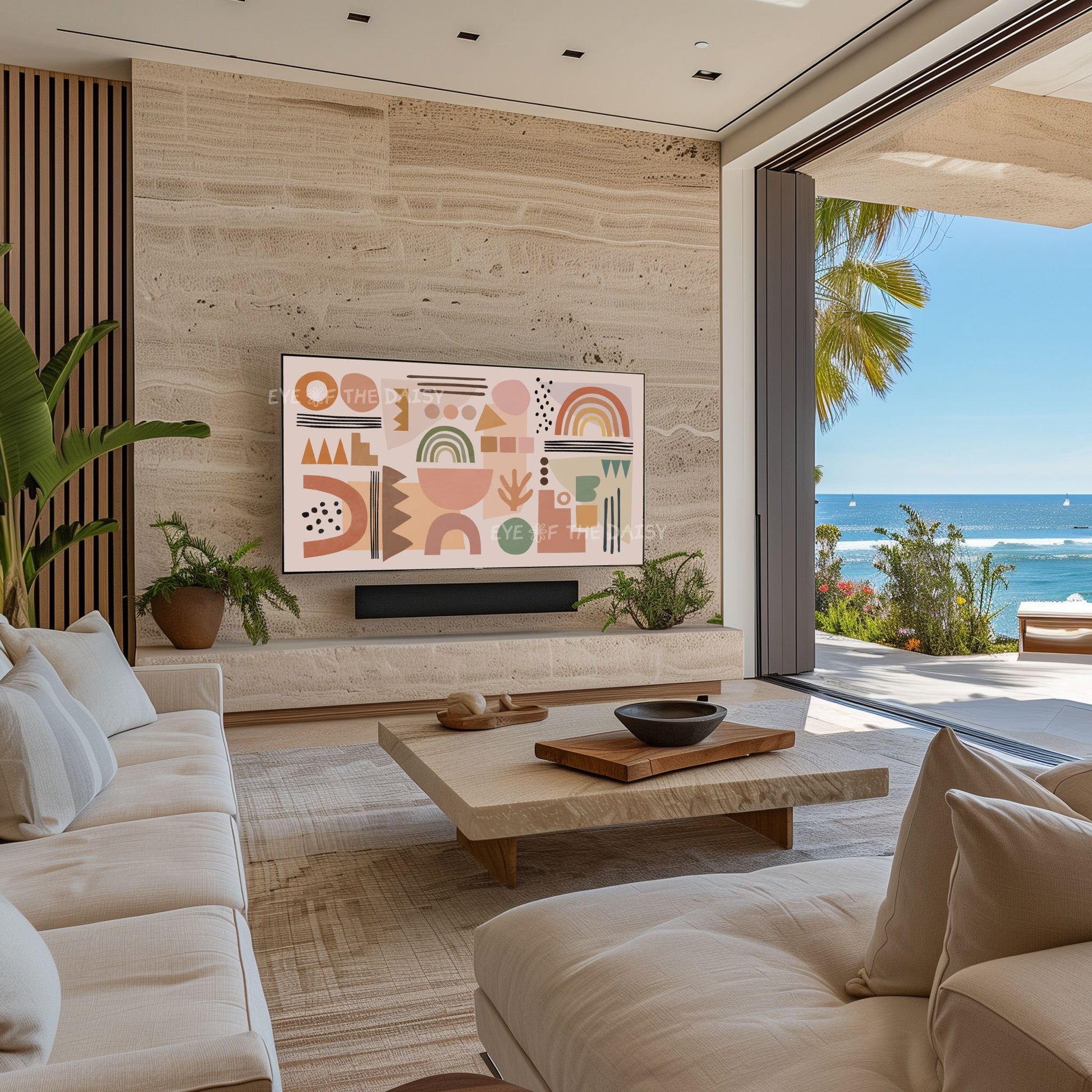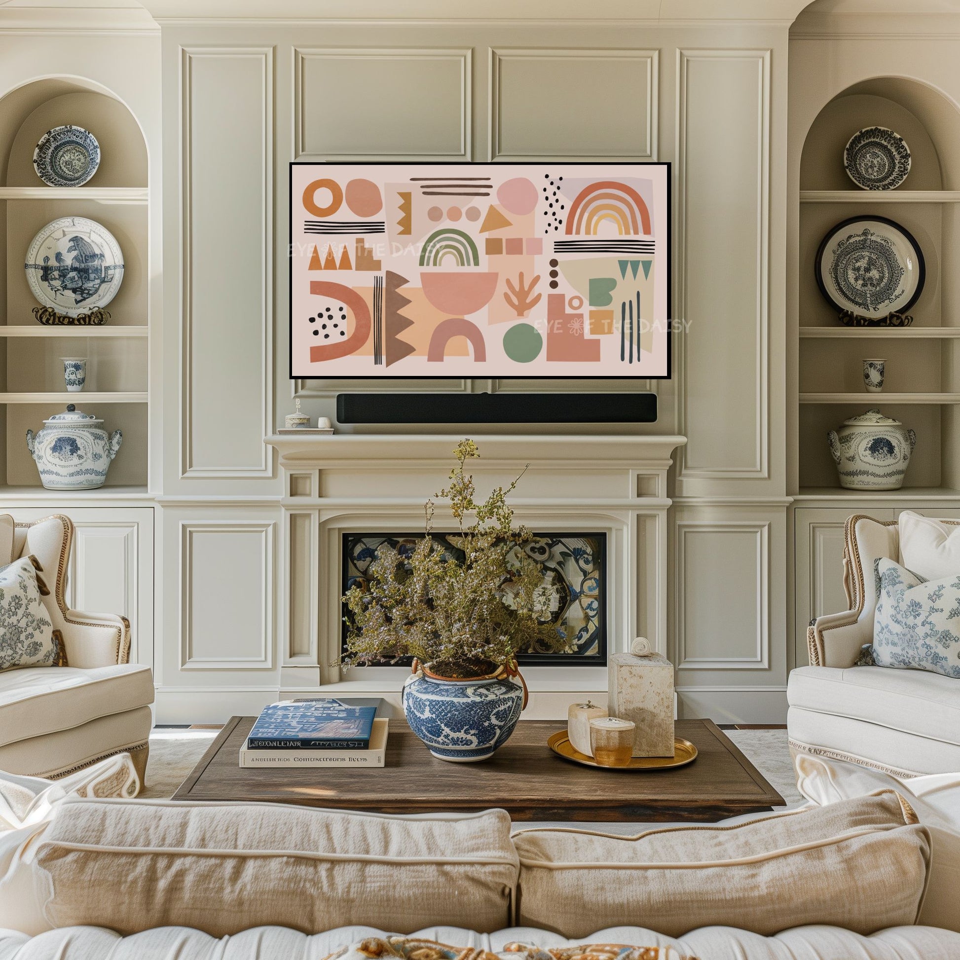 Boho Abstract Shapes 4K TV Art | Beige Terracotta Warm Tone Boho 4K Art for TV Screen