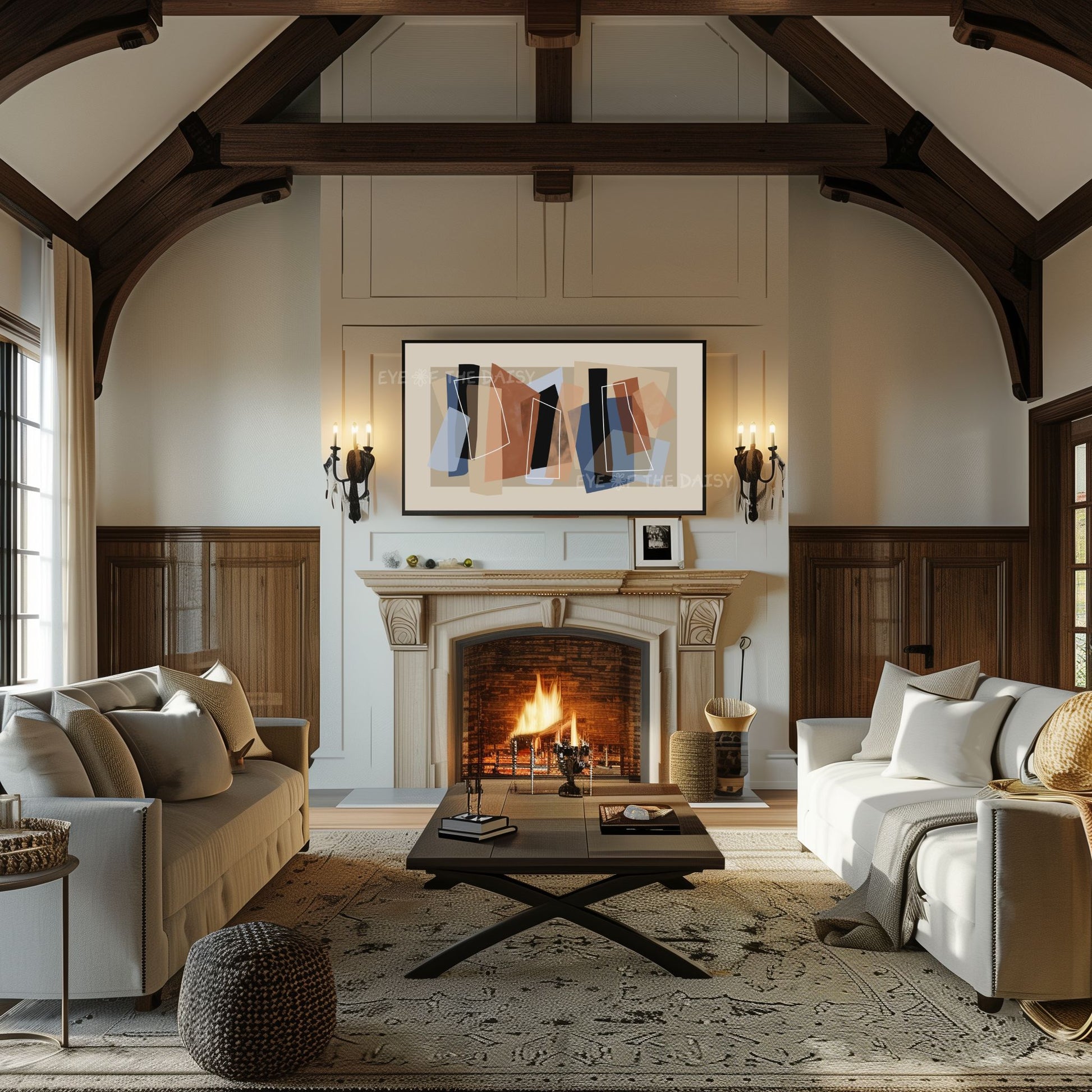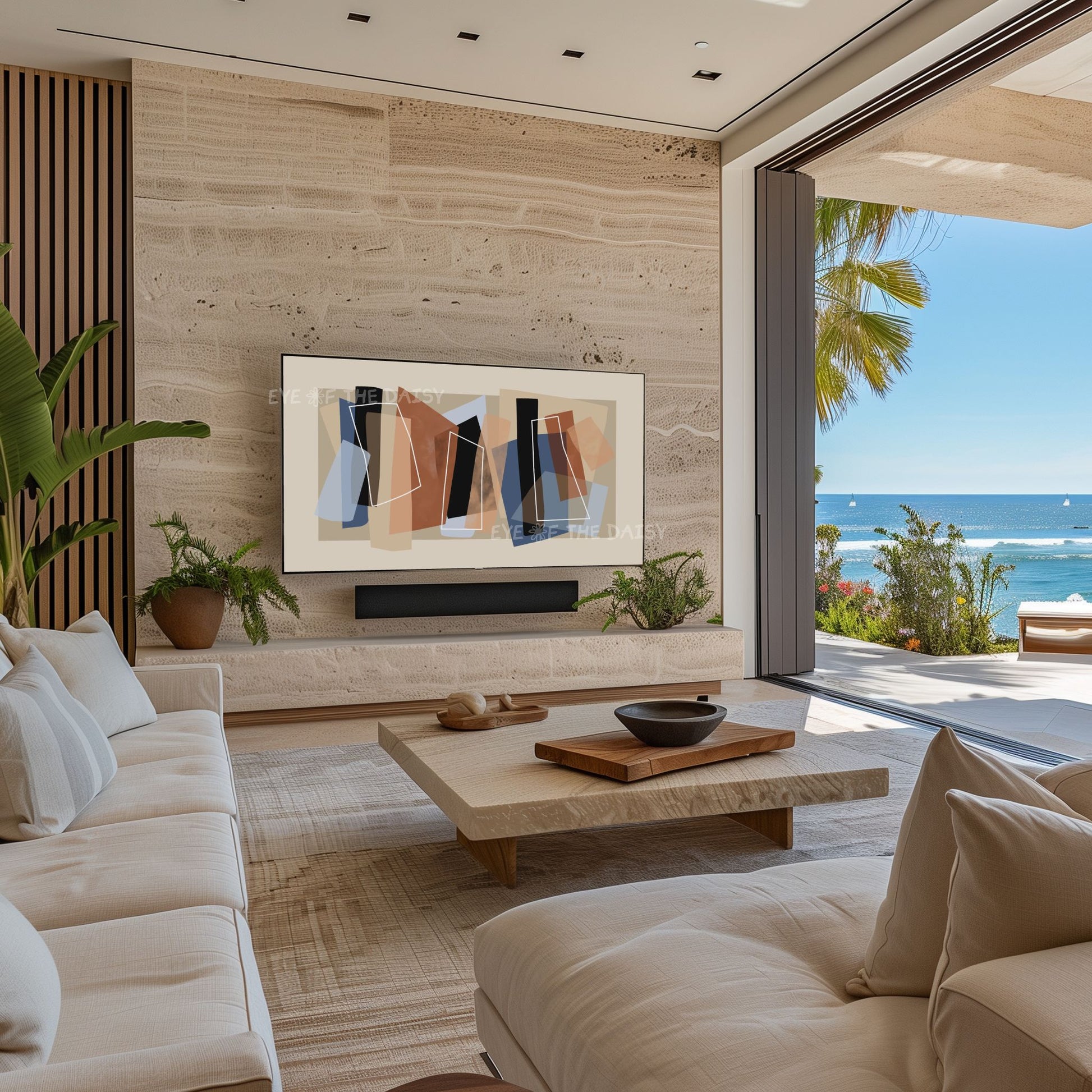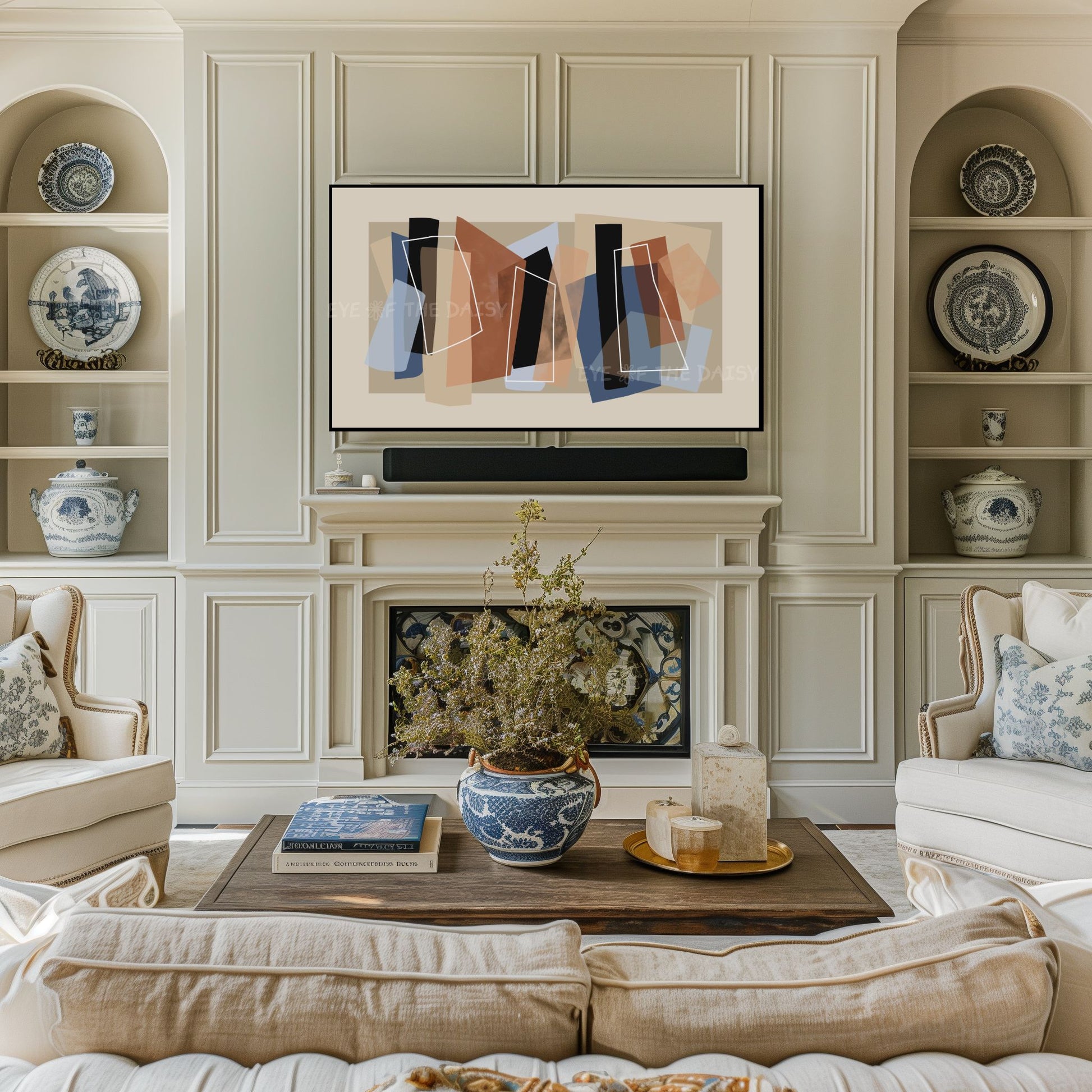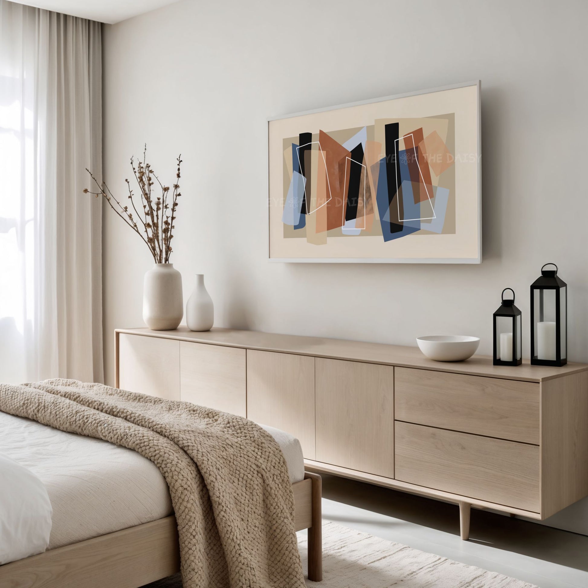 Brown & Blue Modern Abstract 4K TV Art | Neutral Contemporary Art for TV Screen