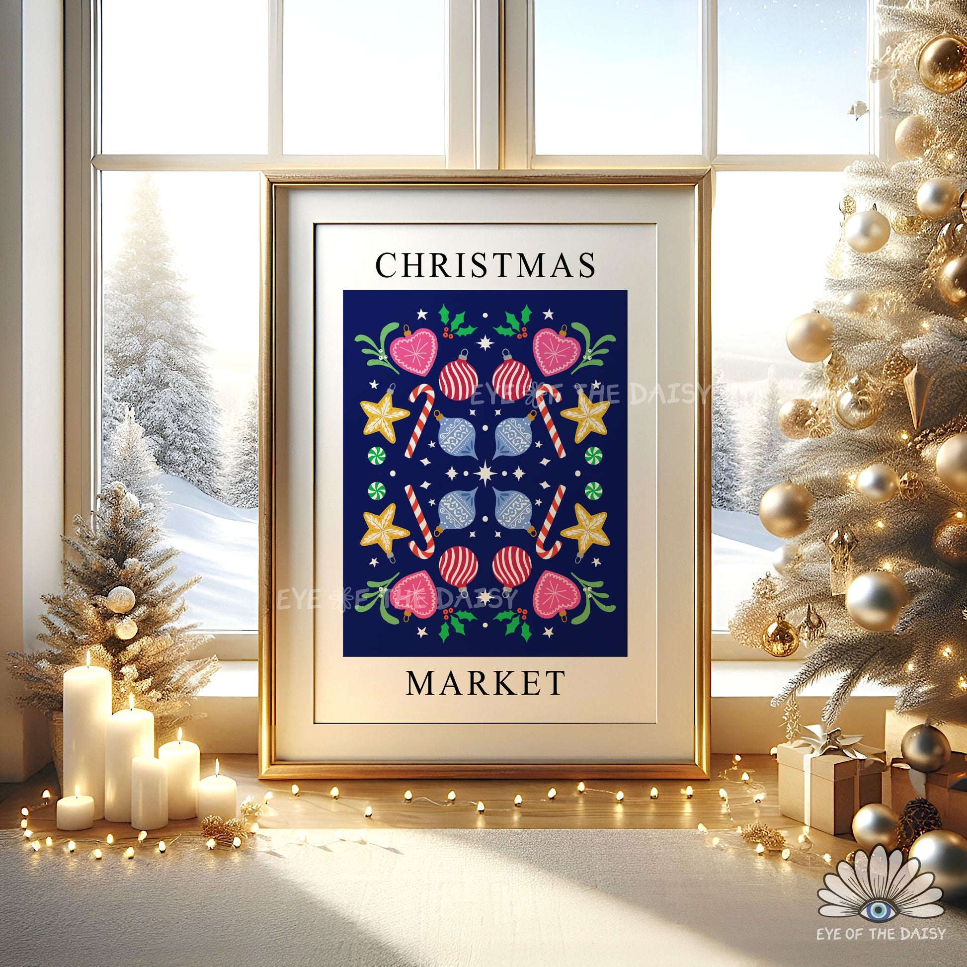 Christmas Market Digital Art Print | Nordic Folk Art Holiday Decor | Printable Wall Art