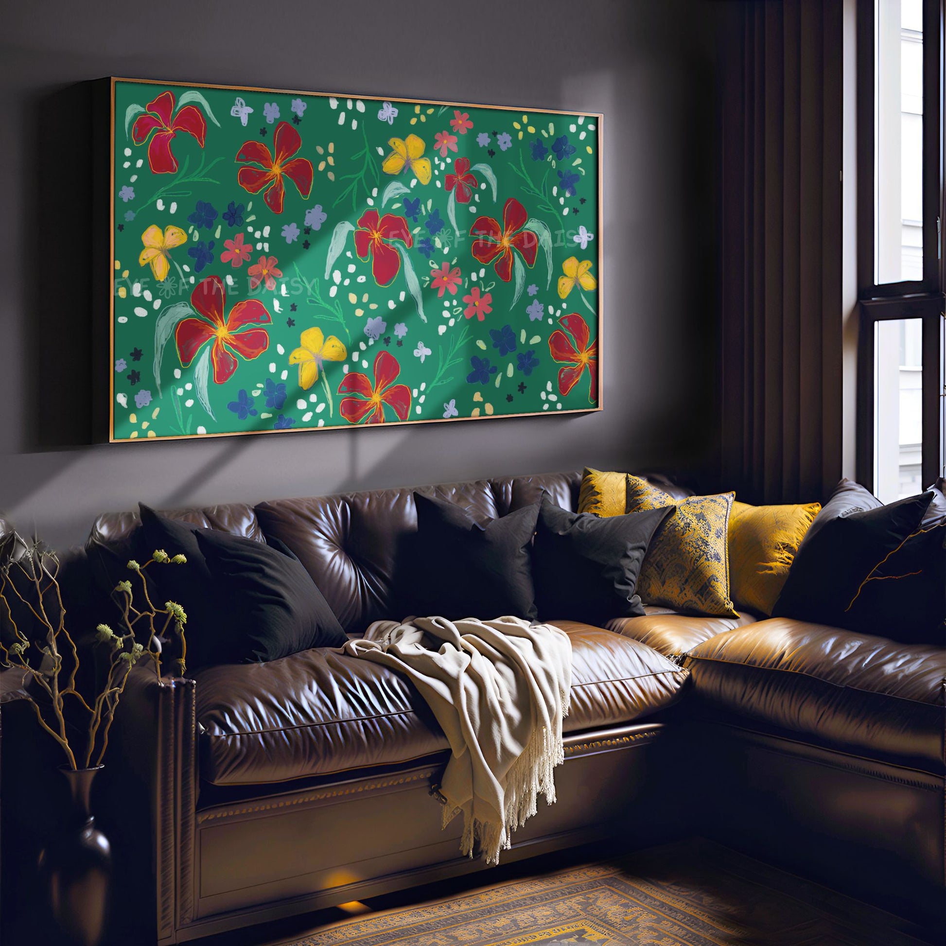 The text watermark seen in the mock-up photos is not included on the digital artwork. Colours may vary slightly depending on the TV on which the image is displayed, and all monitors display colours differently.