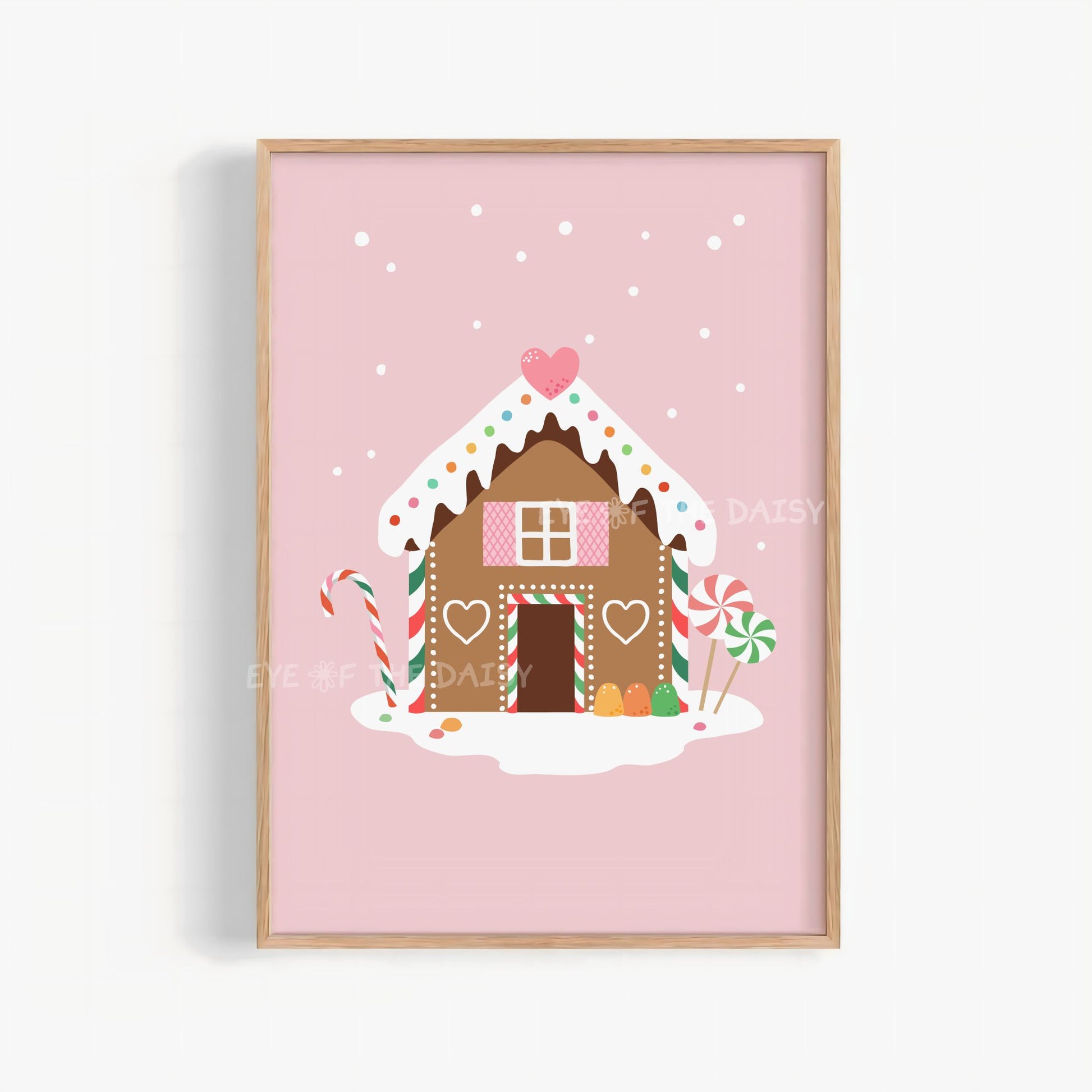 Add a pastel, whimsical touch to your holiday décor with my hand drawn pink Christmas gingerbread house digital print. Perfect for brightening any space with a cute, girly twist on classic Christmas décor.
