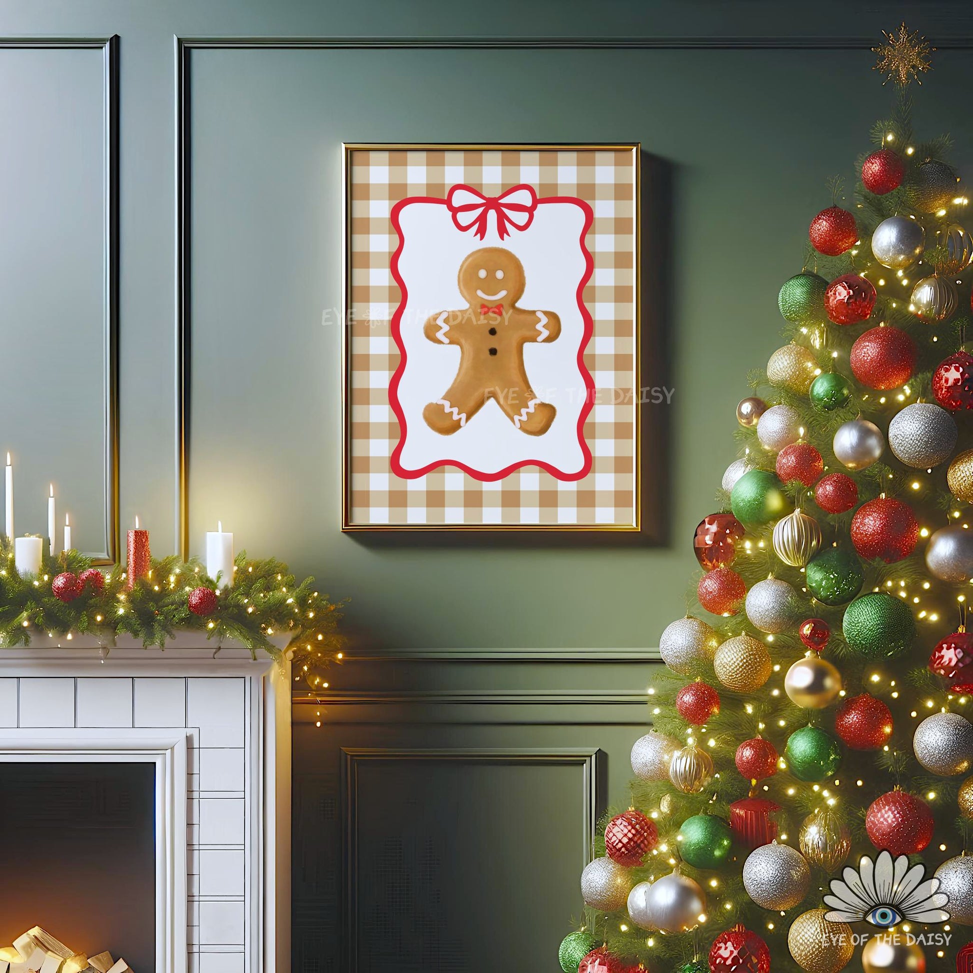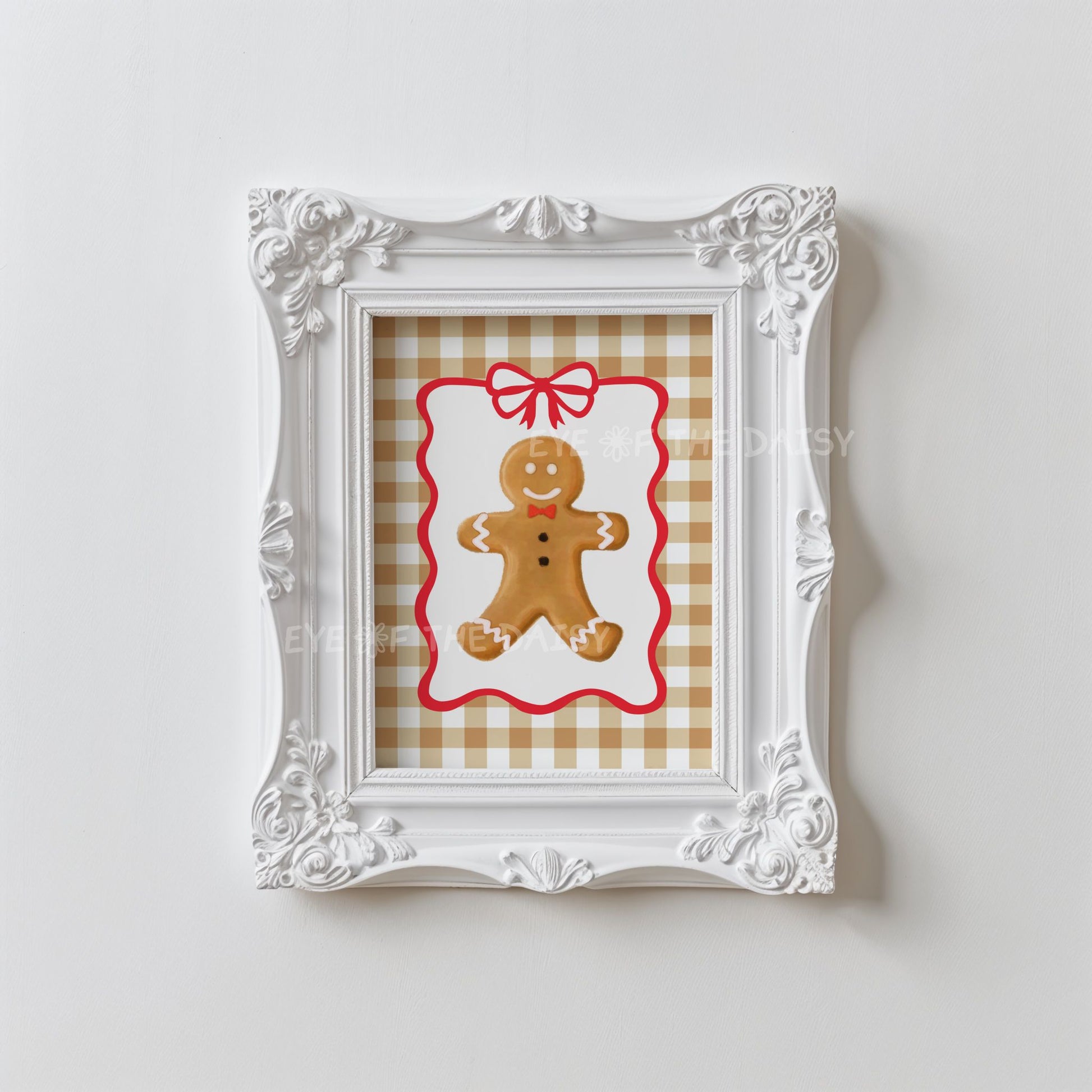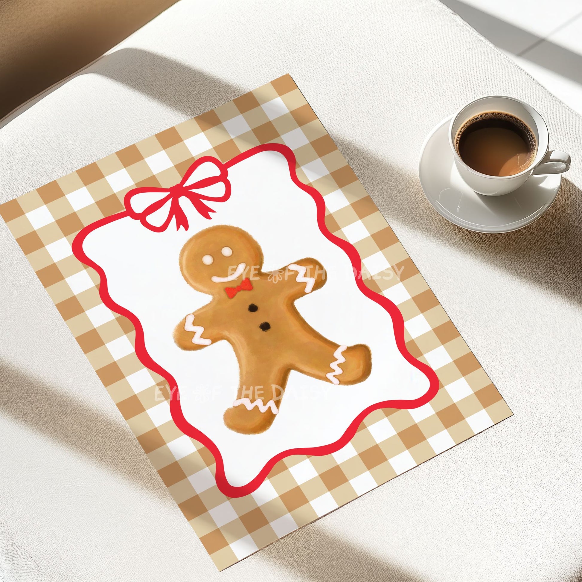 Cute Gingerbread Man Print Digital Download | Check Vintage Holiday Printable Wall Art