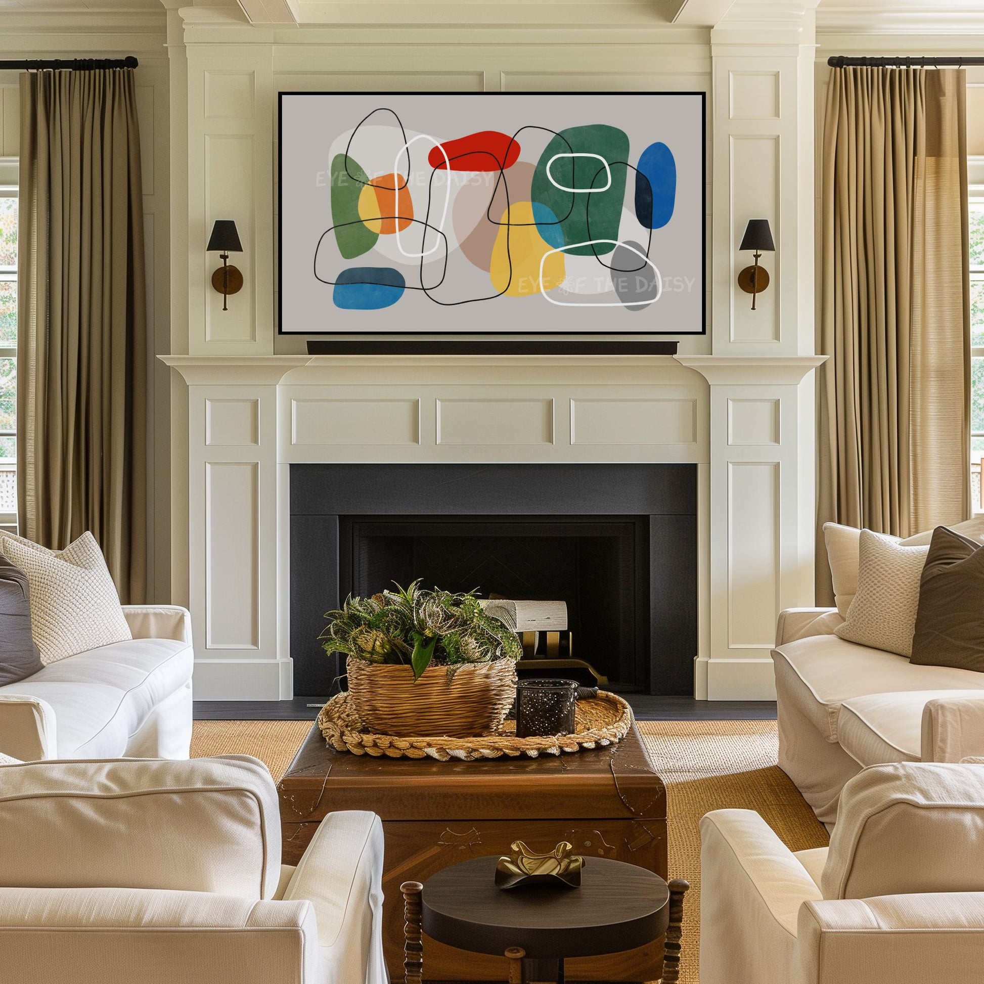 The text watermark seen in the mock-up photos is not included on the digital artwork. Colours may vary slightly depending on the TV on which the image is displayed, and all monitors display colours differently.
