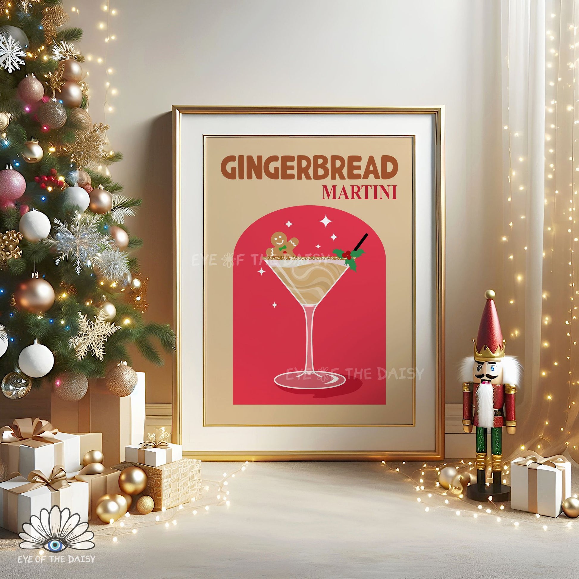 Gingerbread Martini Print Digital Download | Retro Christmas Cocktail Printable Wall Art