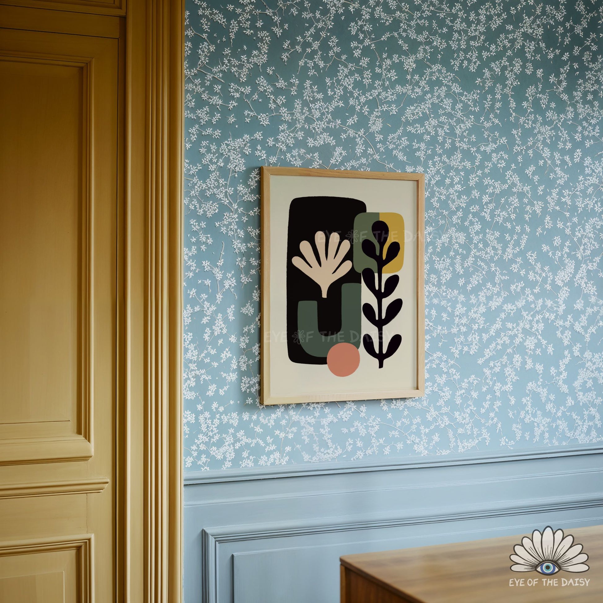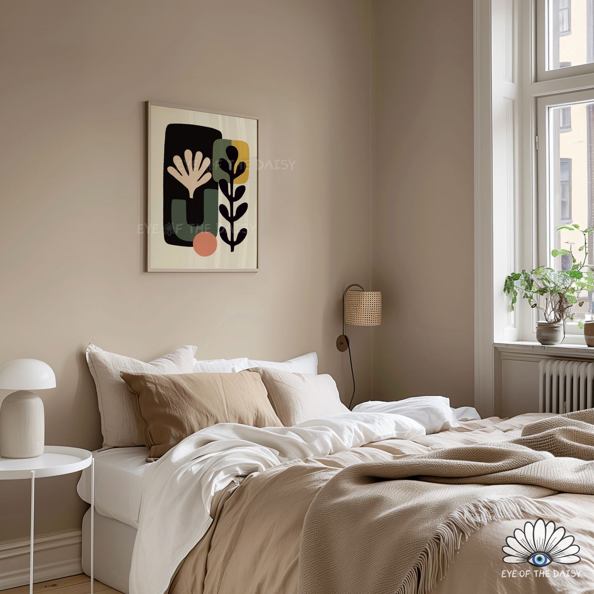 Boho Botanical Print Digital Download | Beige Green Salmon Mustard Organic Shapes Printable Wall Art