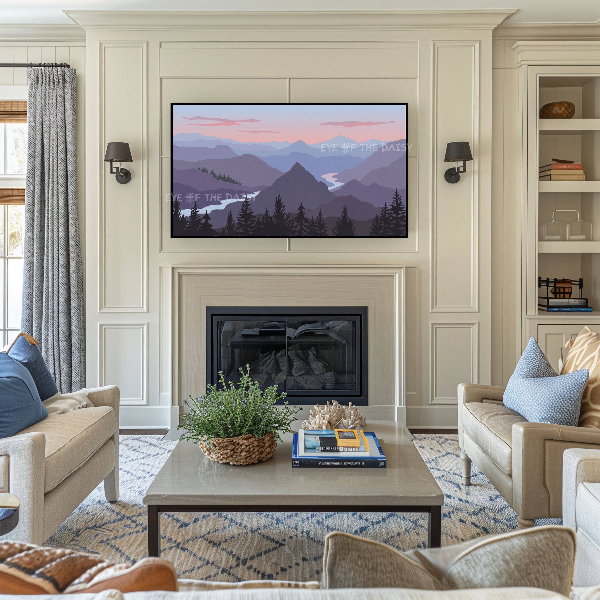 The text watermark seen in the mock-up photos is not included on the digital artwork. Colours may vary slightly depending on the TV on which the image is displayed, and all monitors display colours differently.