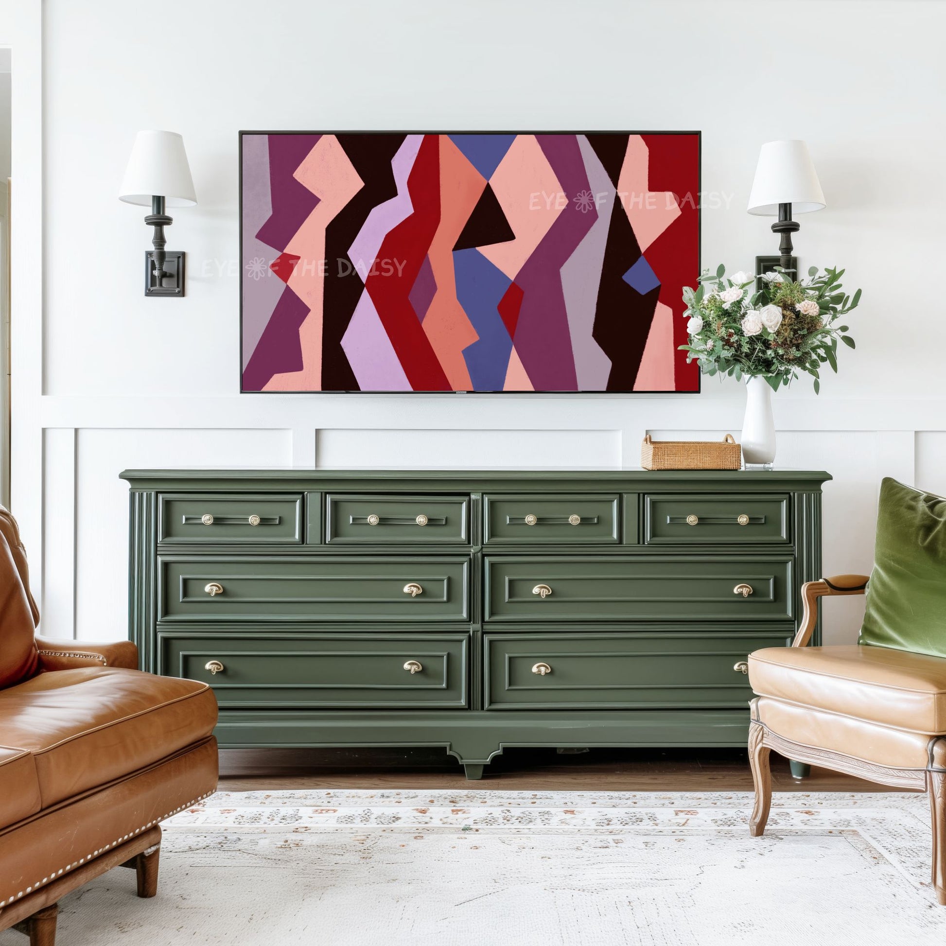 Maroon Purple Peach TV Art 4K | Mid Century Modern Geometric Artwork for TV Screen 4K