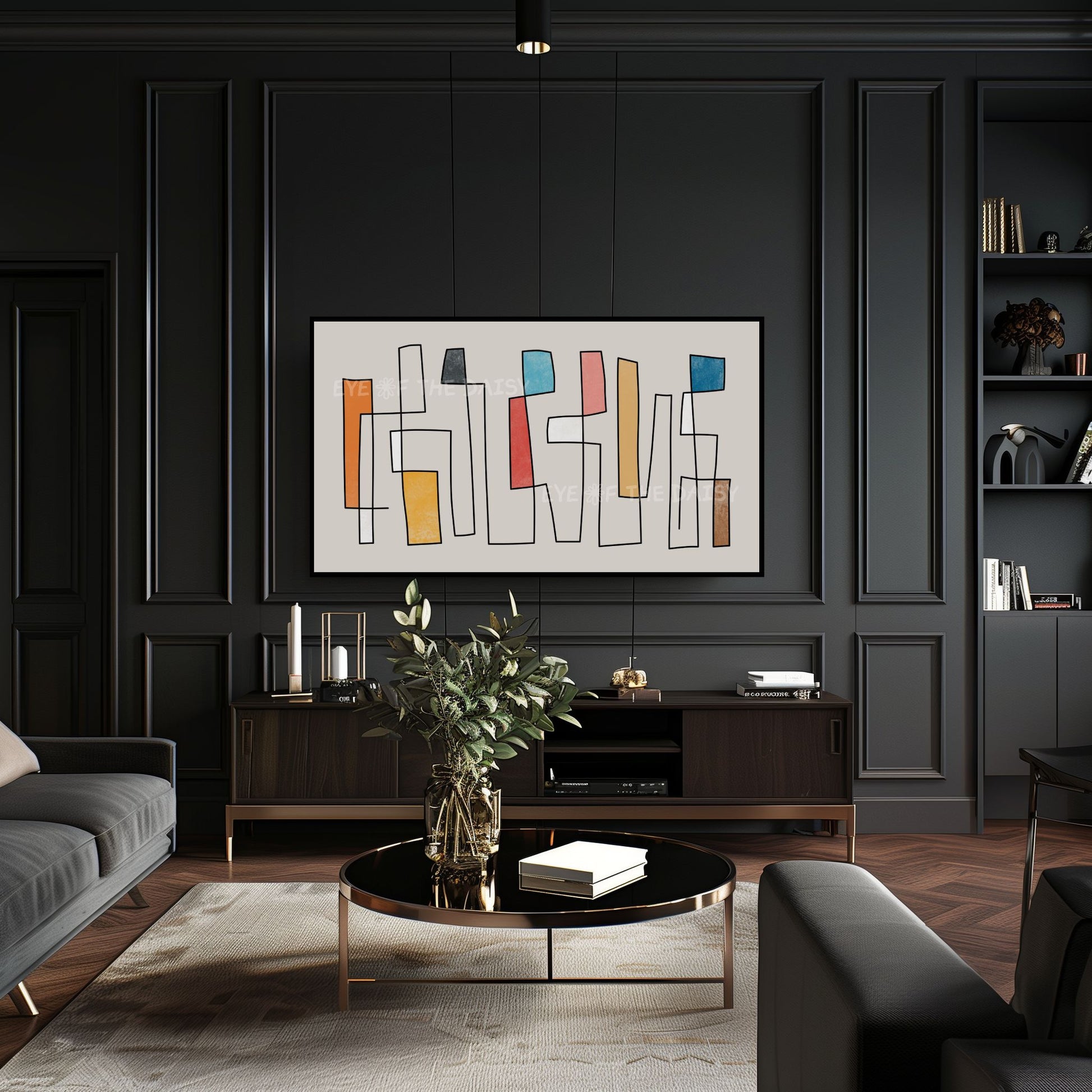 The text watermark seen in the mock-up photos is not included on the digital artwork. Colours may vary slightly depending on the TV on which the image is displayed, and all monitors display colours differently.