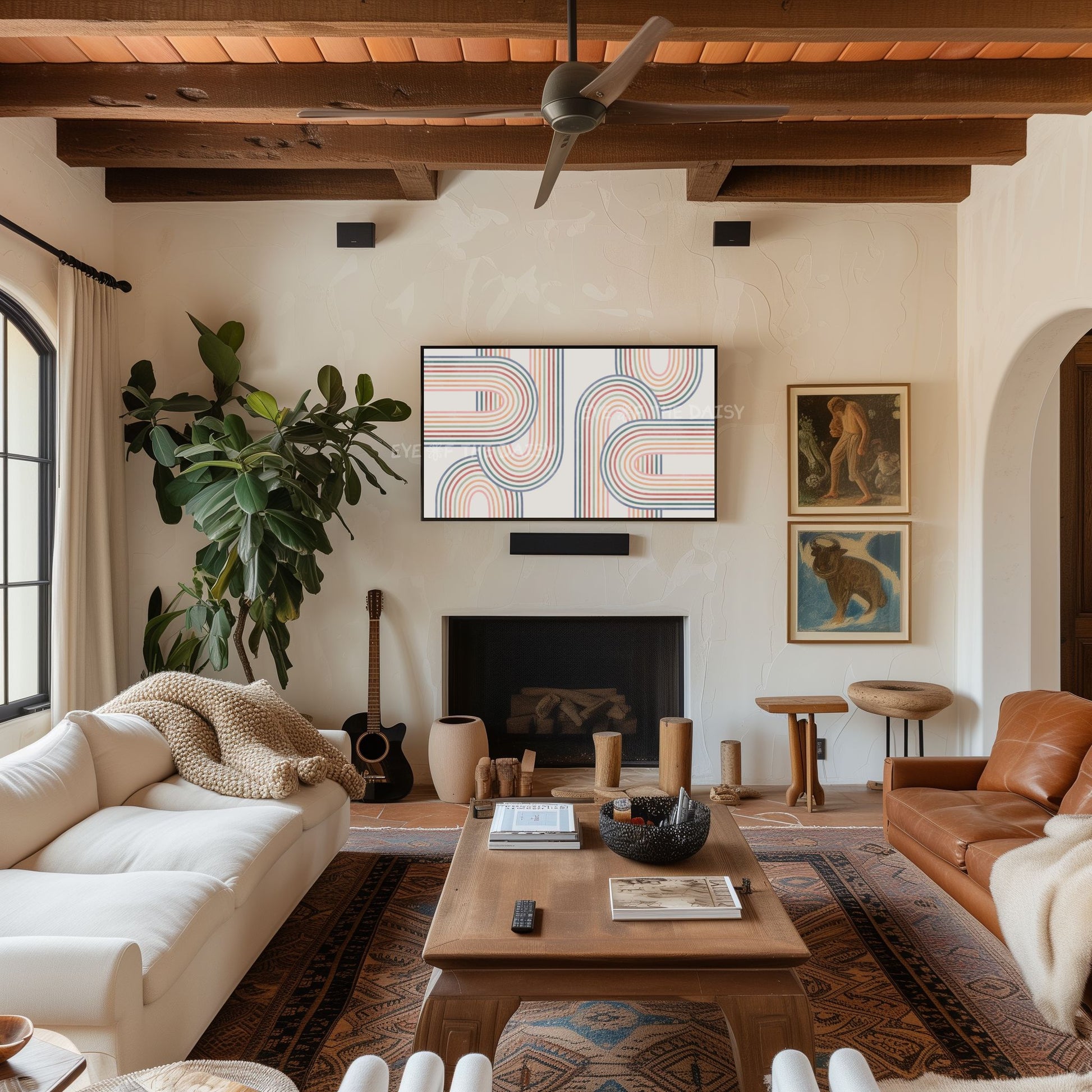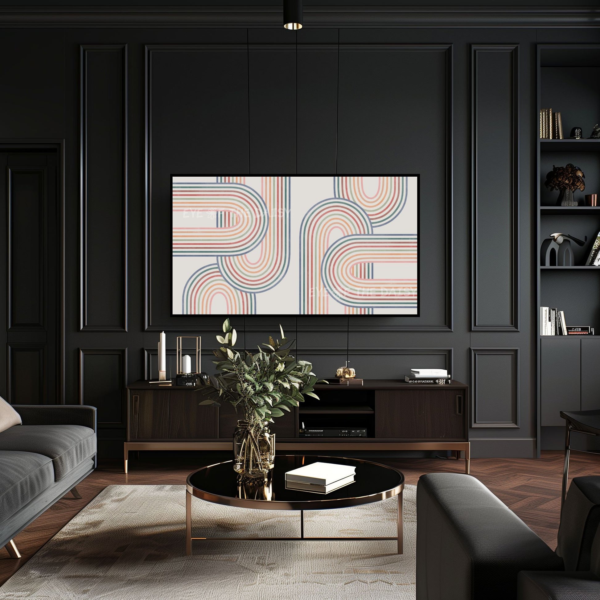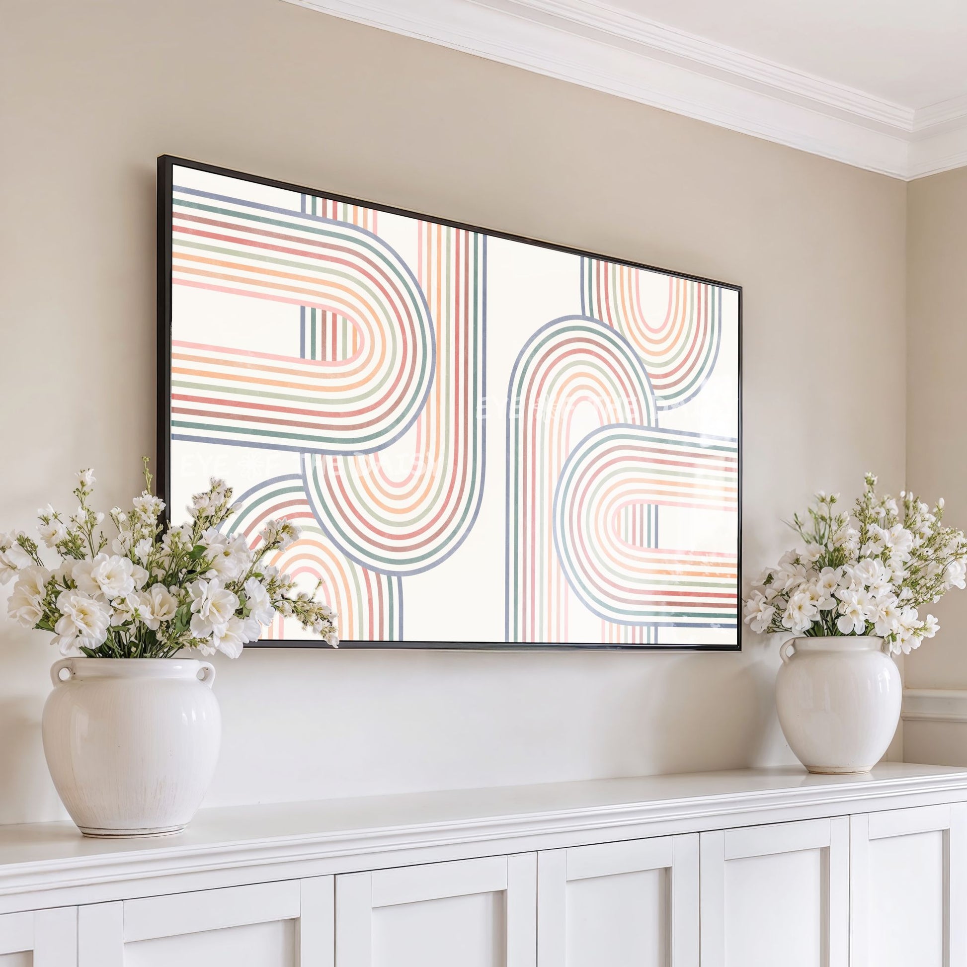 Mid Century Modern Arches 4K TV Art | Muted Colour Rainbow Art for TV Screen 4K