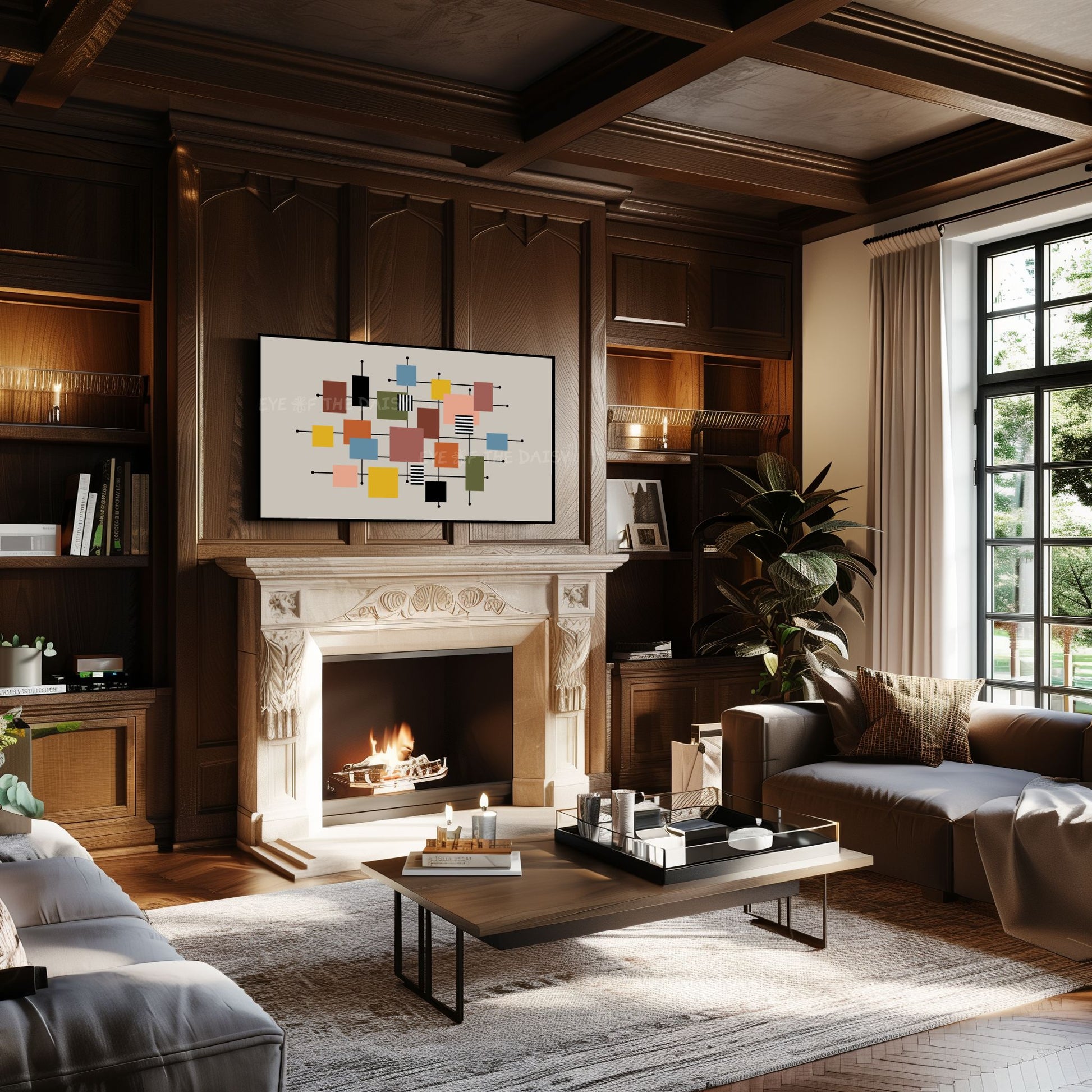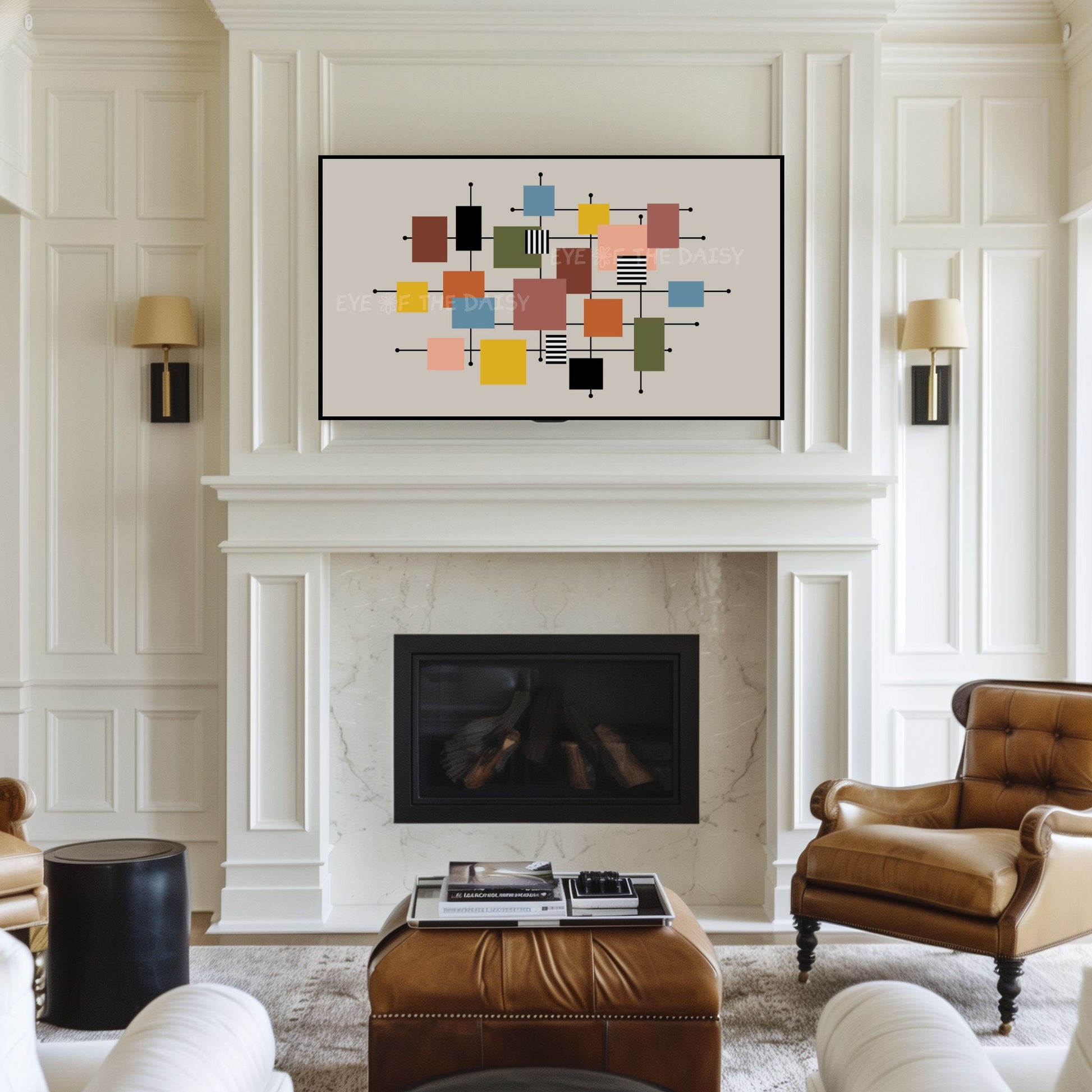 Mid Century Modern Squares 4K TV Art | Colourful Geometric Abstract TV Art 4K
