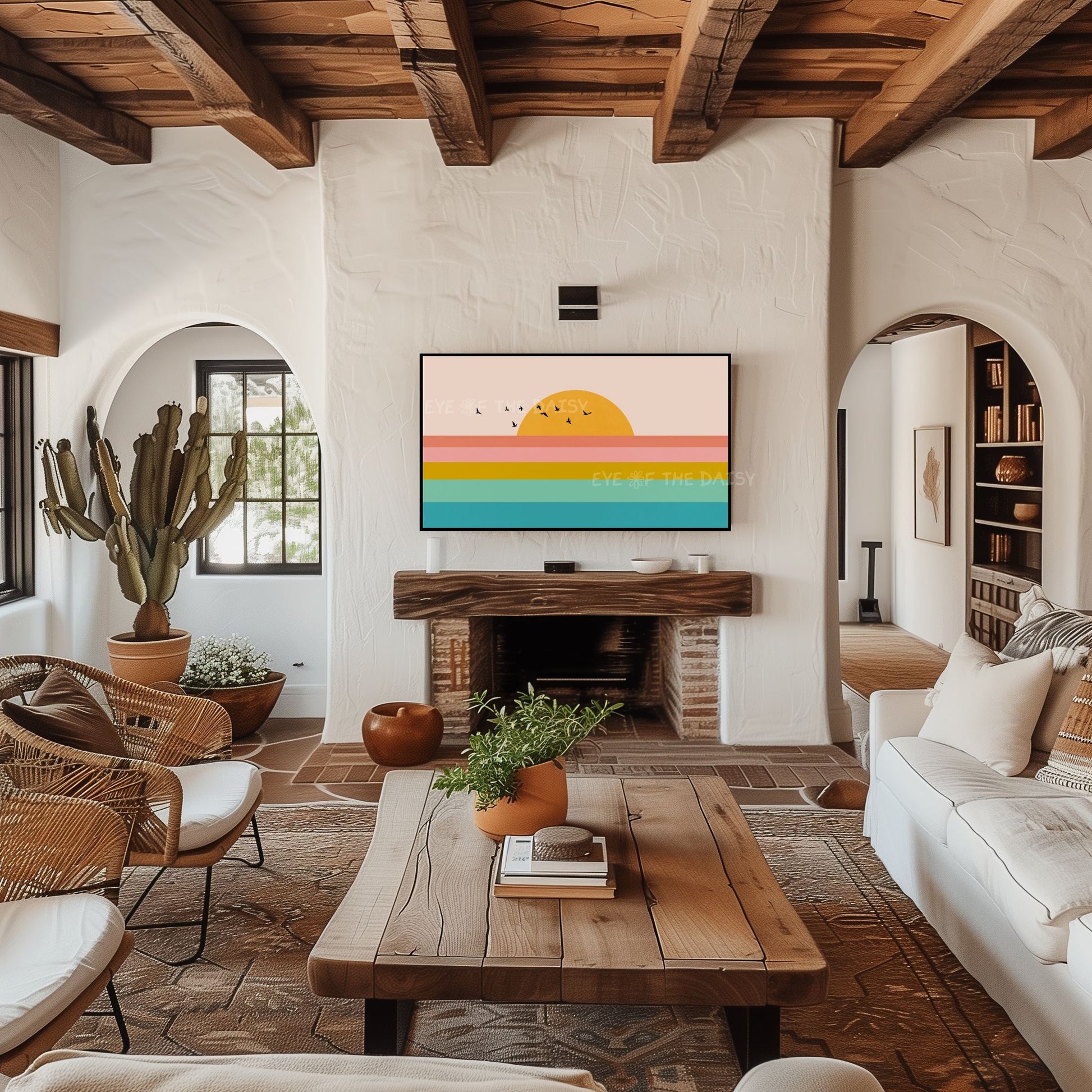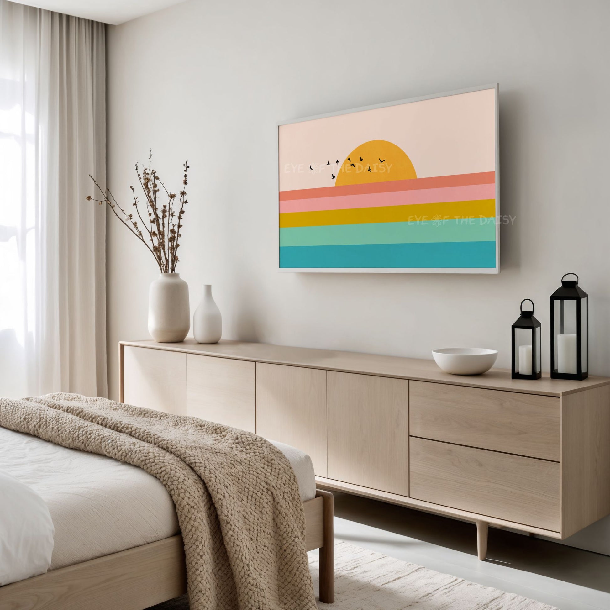 Mid Century Modern Sunset Seascape 4K TV Art | Colourful Sky Sun Sea Landscape TV Art