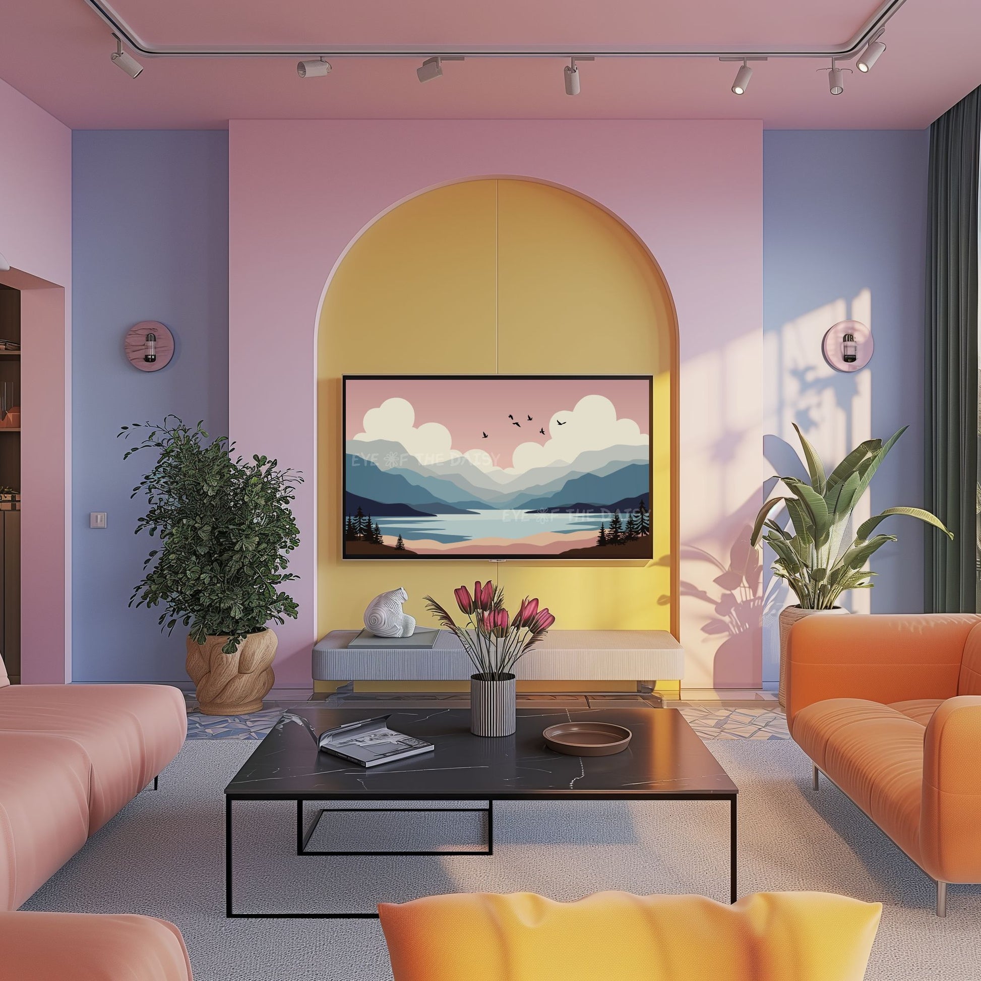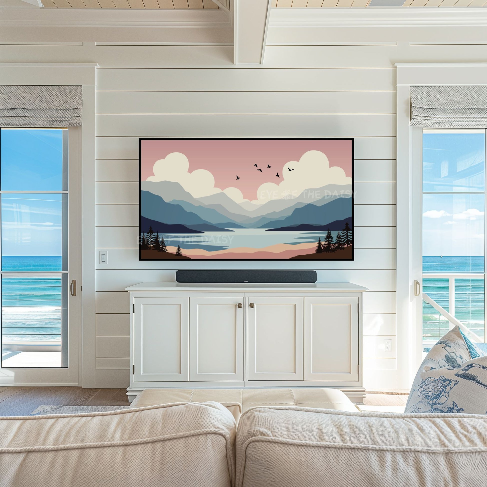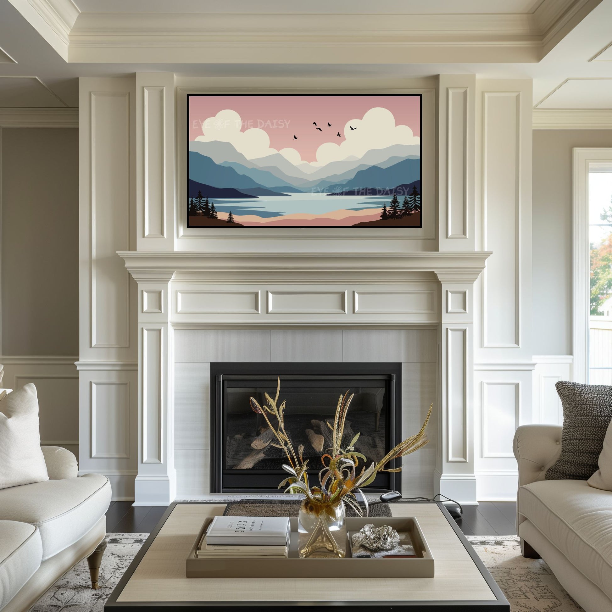 The text watermark seen in the mock-up photos is not included on the digital artwork. Colours may vary slightly depending on the TV on which the image is displayed, and all monitors display colours differently.