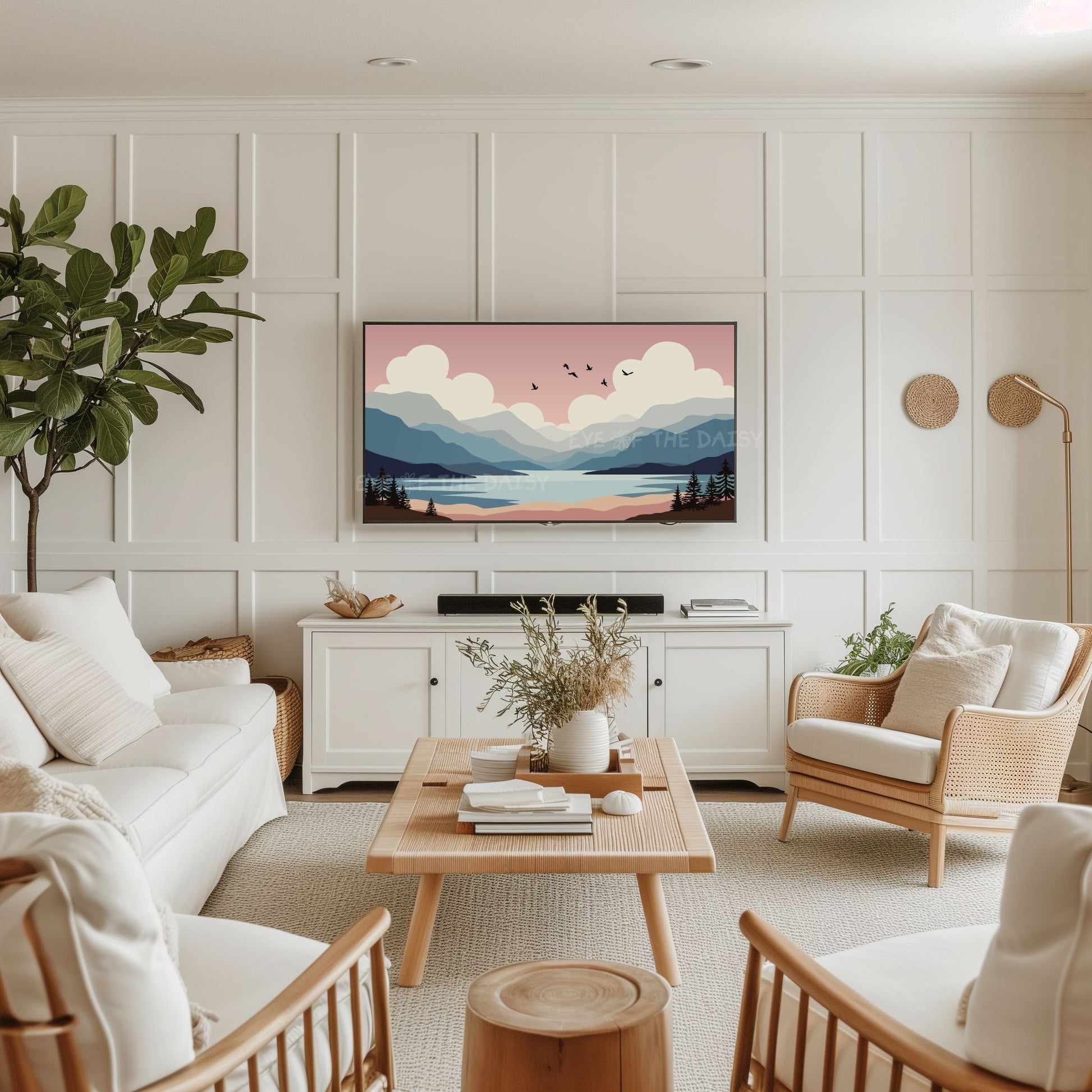 Minimal Abstract Landscape 4K TV Art | Mid Century Modern Mountains Trees Nature TV Art
