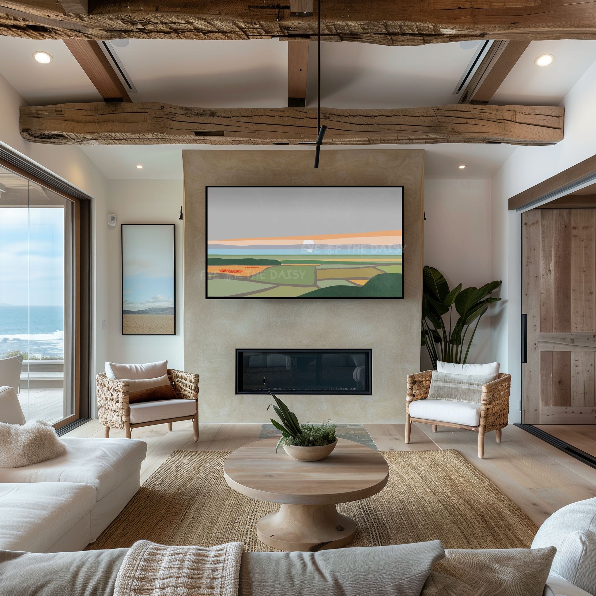 Minimal Abstract Landscape 4K TV Art | Poppy Flower Fields Sea Sky TV Art 4K