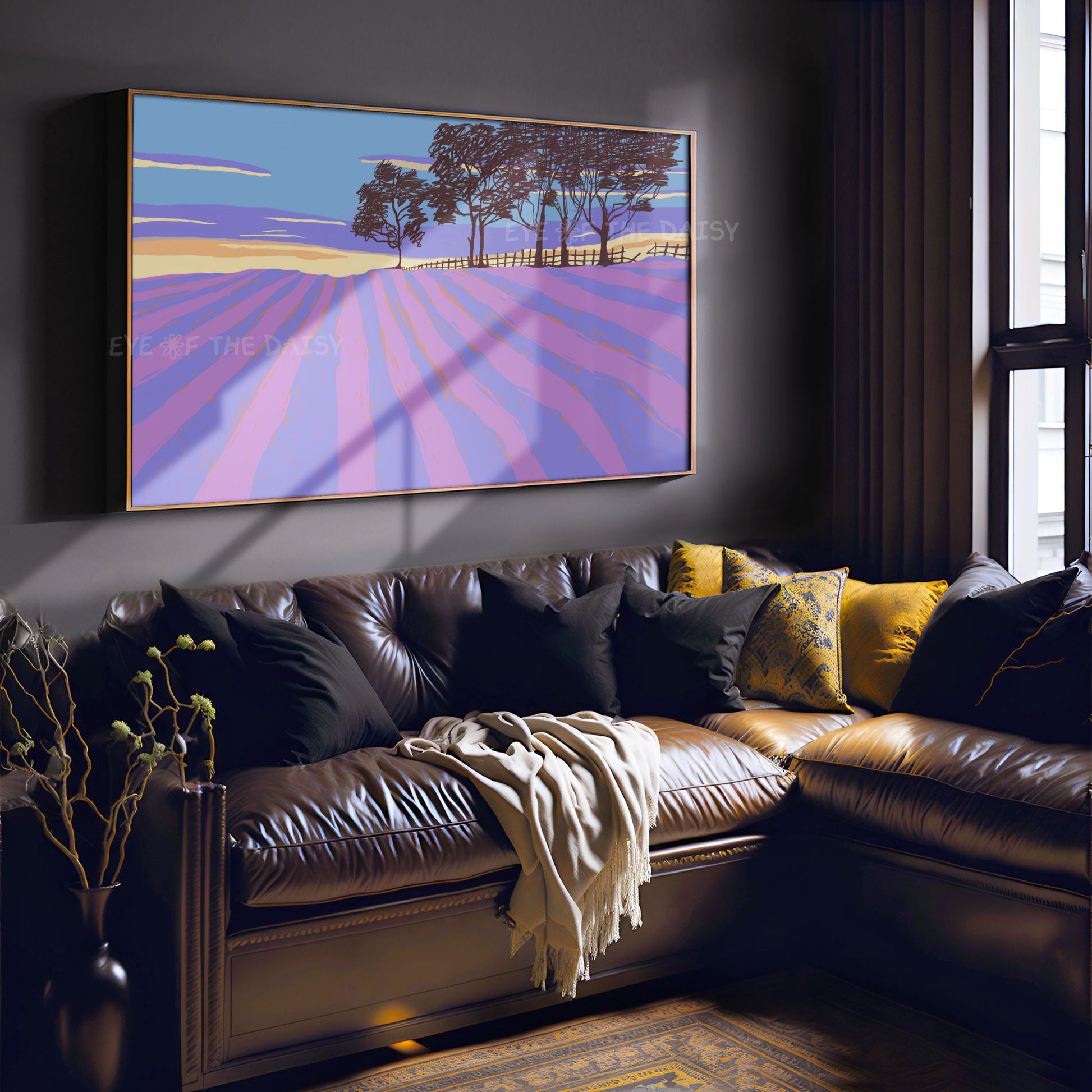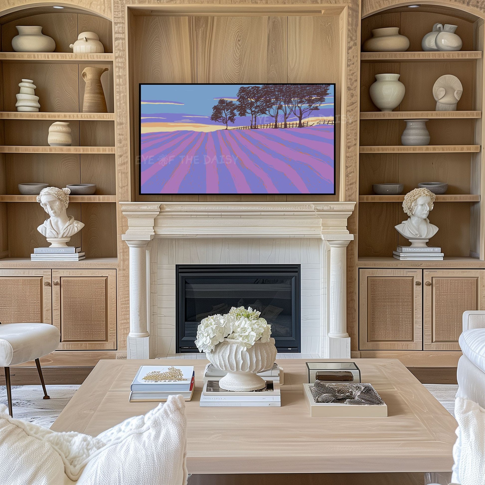 Minimal Landscape 4K TV Art | Contemporary Lavender Field 4K Art for TV Screen