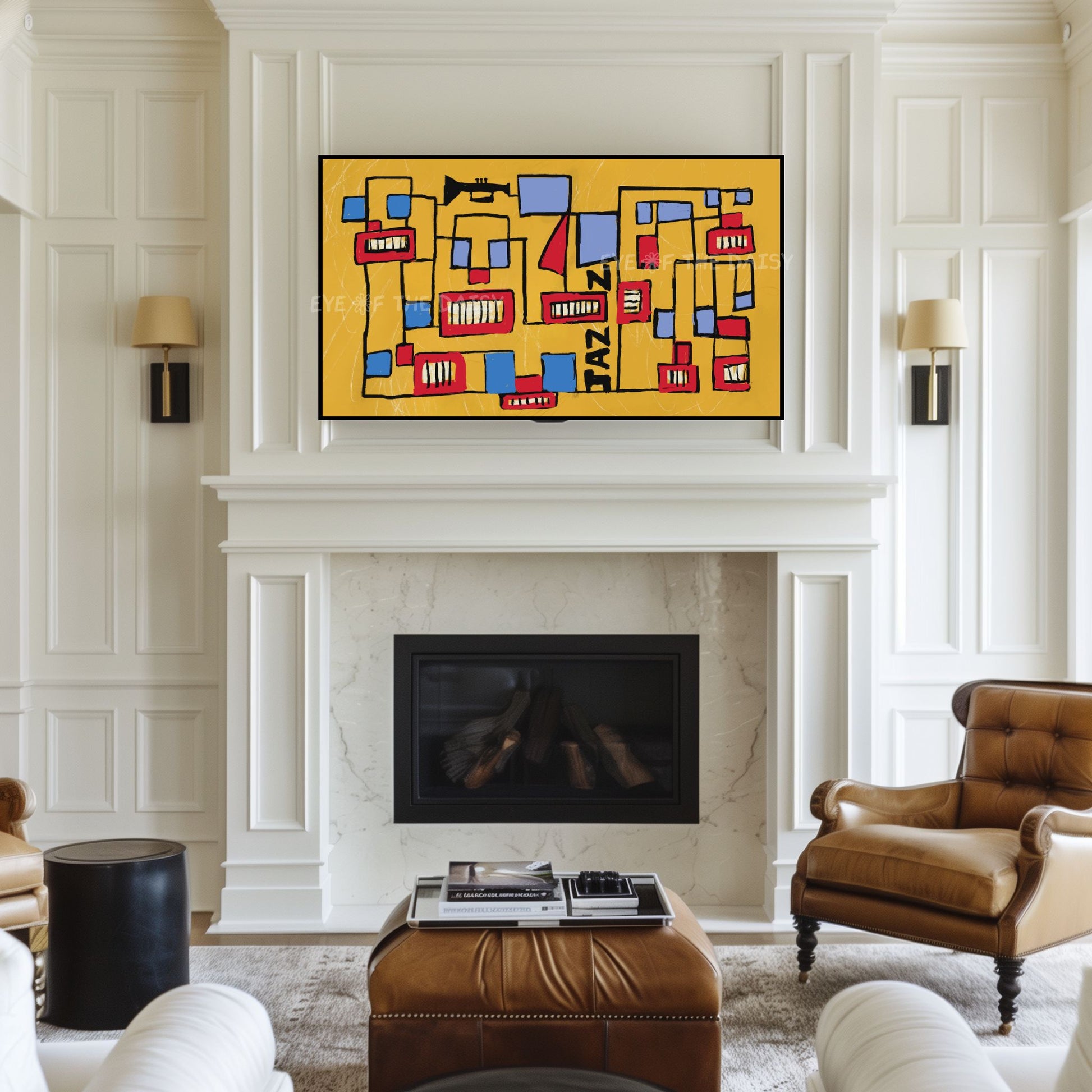Mustard Red Blue Mid Century Modern 4K TV Art | Jazz Vibrant Line Art for TV Screen 4K