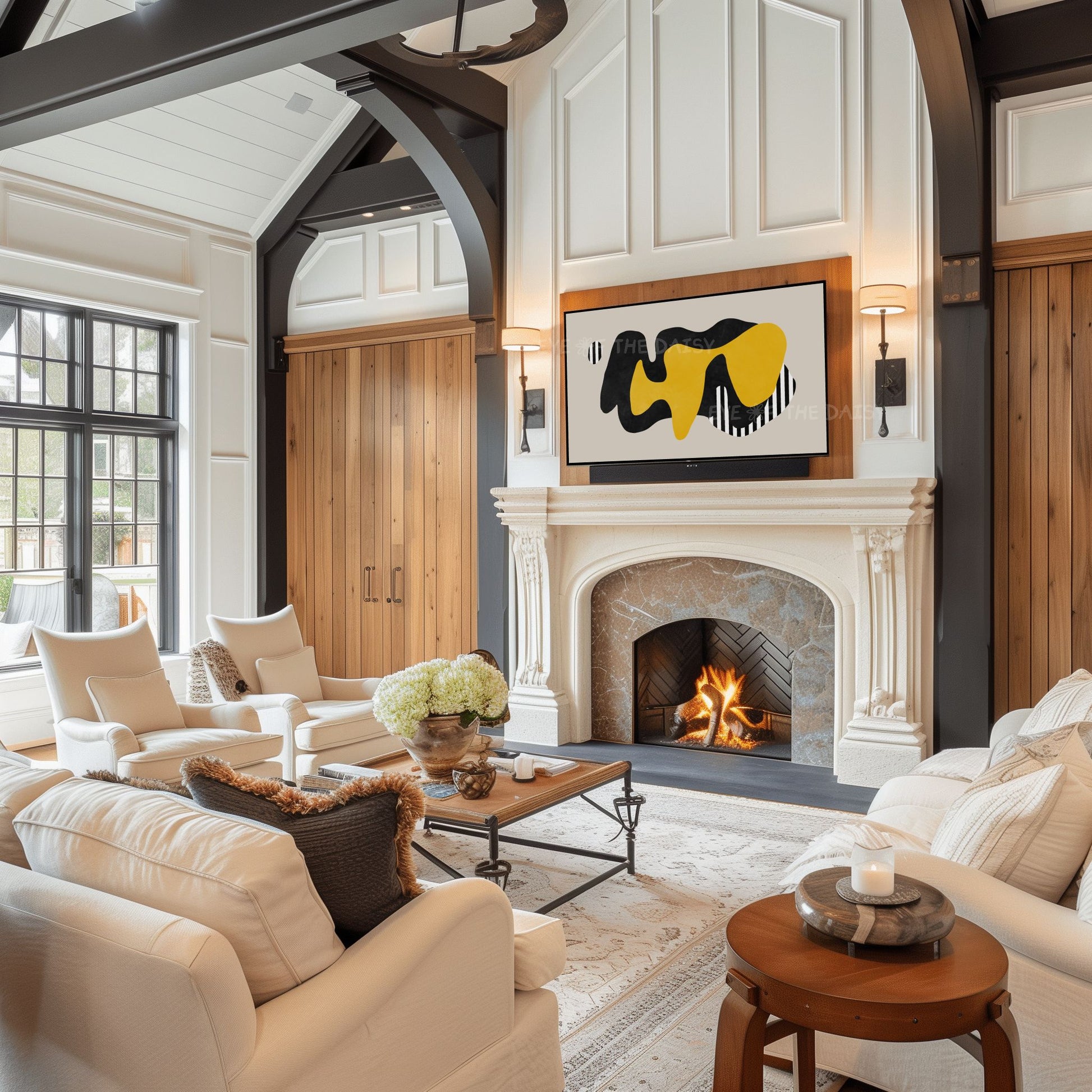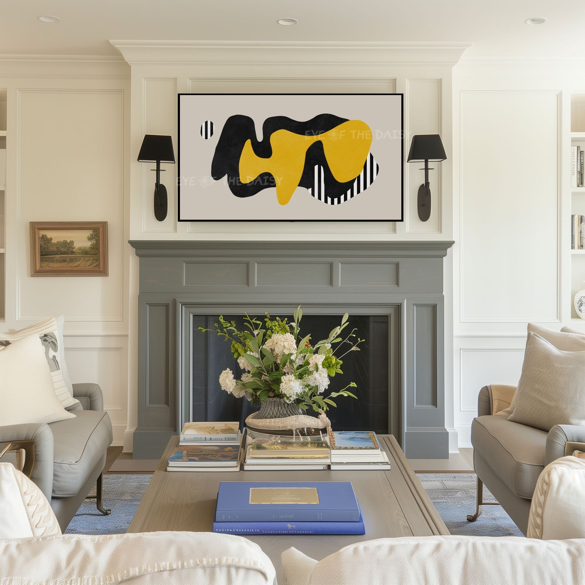 Mustard Yellow & Black Abstract 4K TV Art | Contemporary Shapes Art for TV Screen
