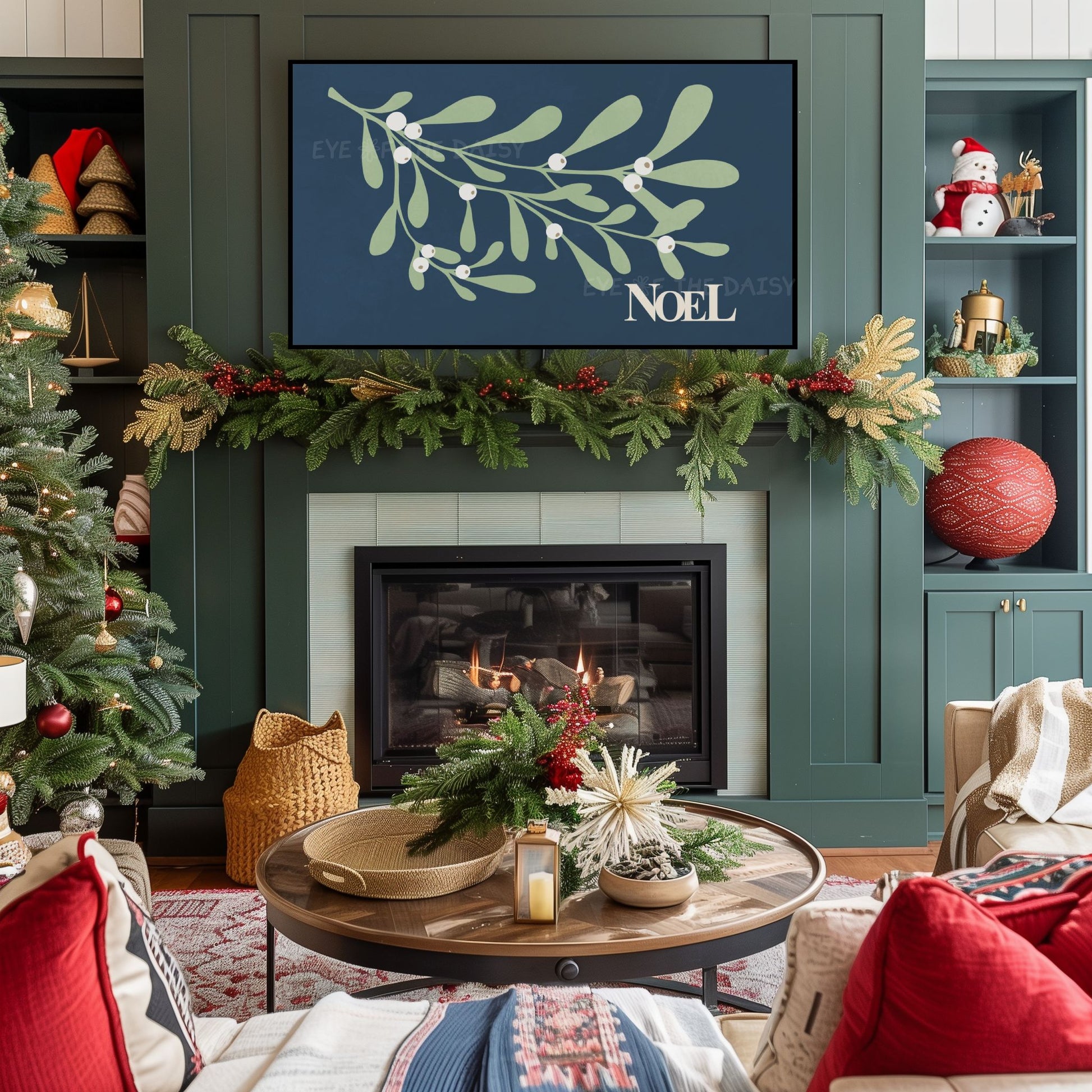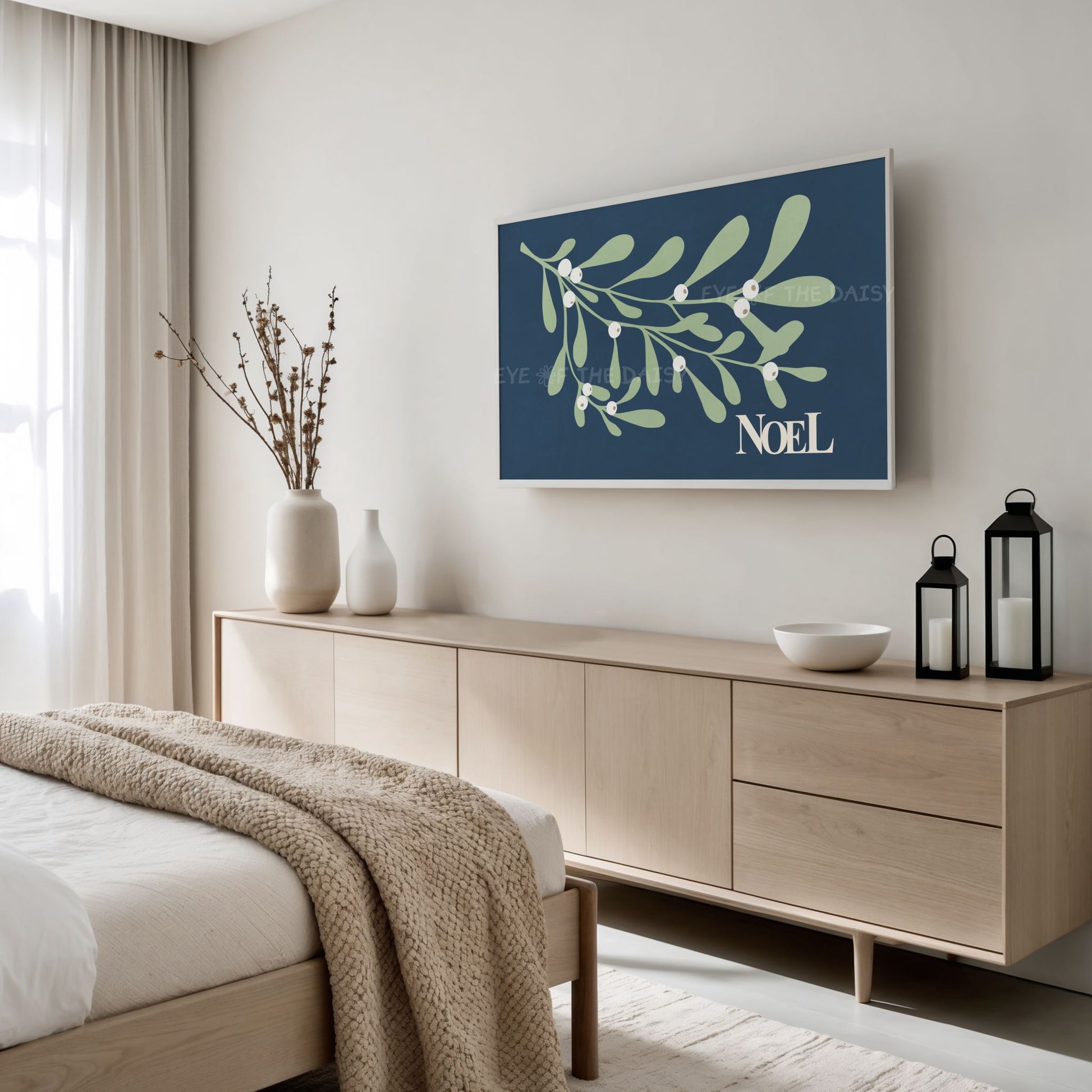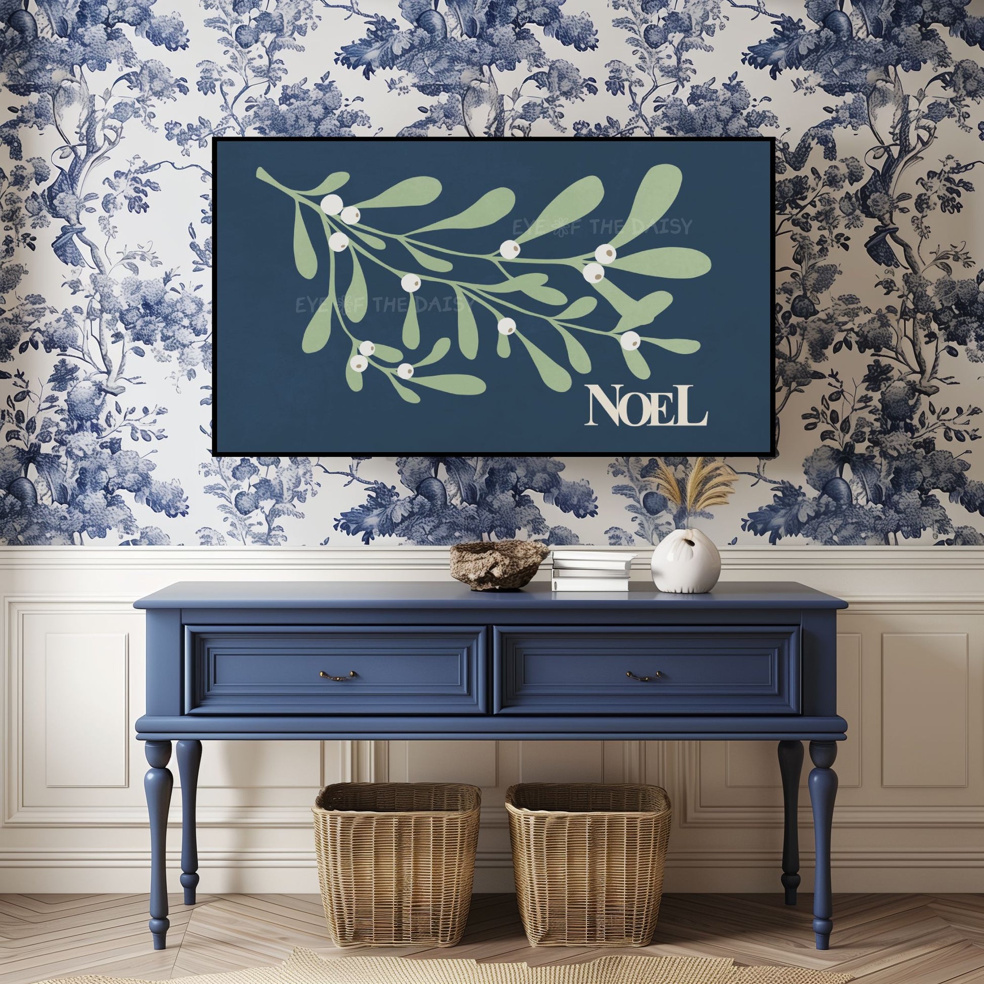 Navy Blue Christmas Botanical 4K TV Art | Holiday Mistletoe Art for TV Screen 4K