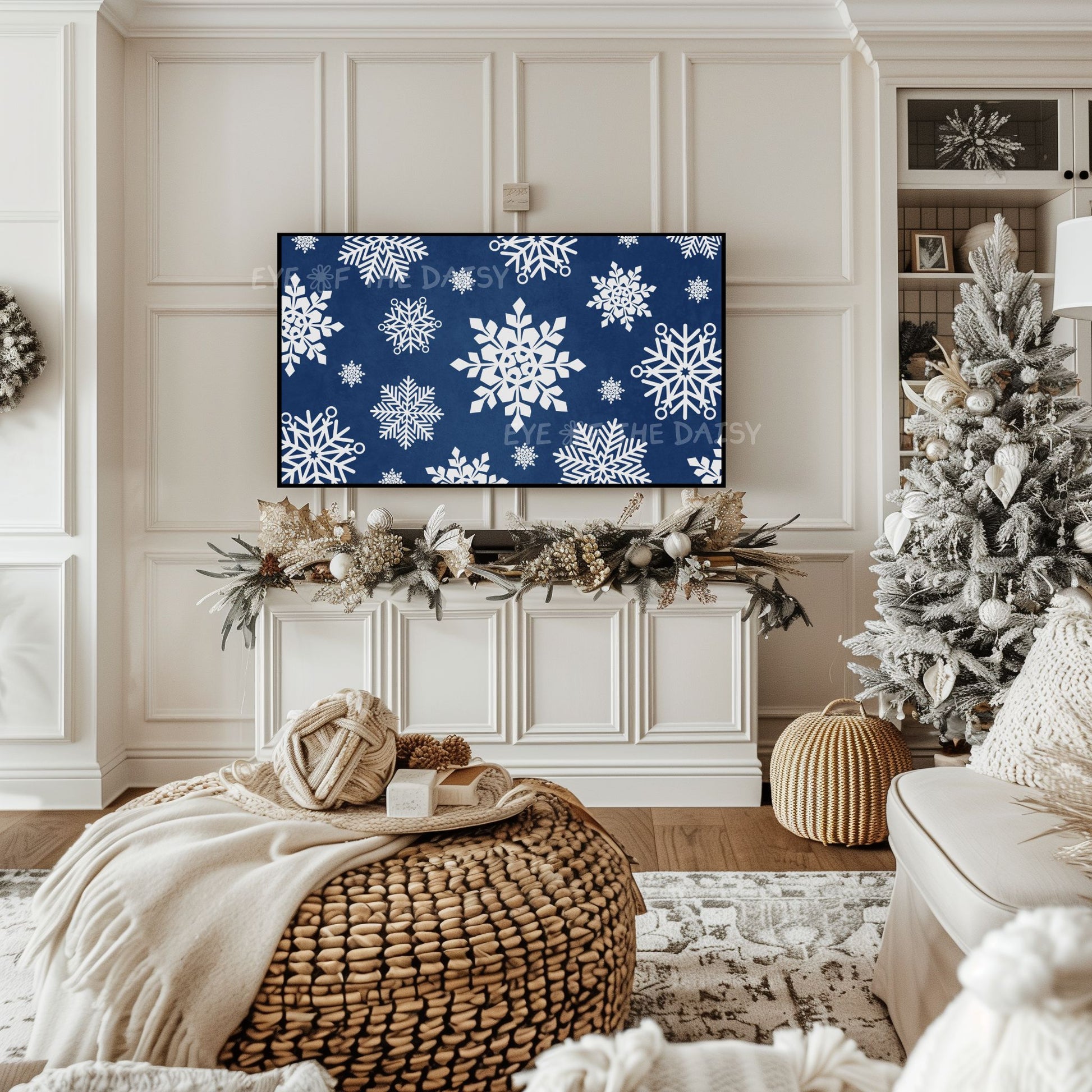 Navy Blue White Snowflakes Christmas 4K TV Art | Minimal Holiday TV Artwork 4K
