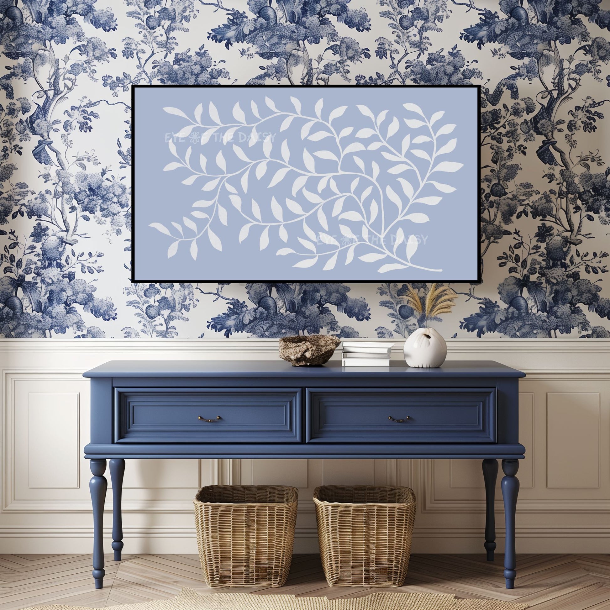 Pale Blue White Abstract Leaf 4K TV Art | Minimal Botanical Art for TV Screen