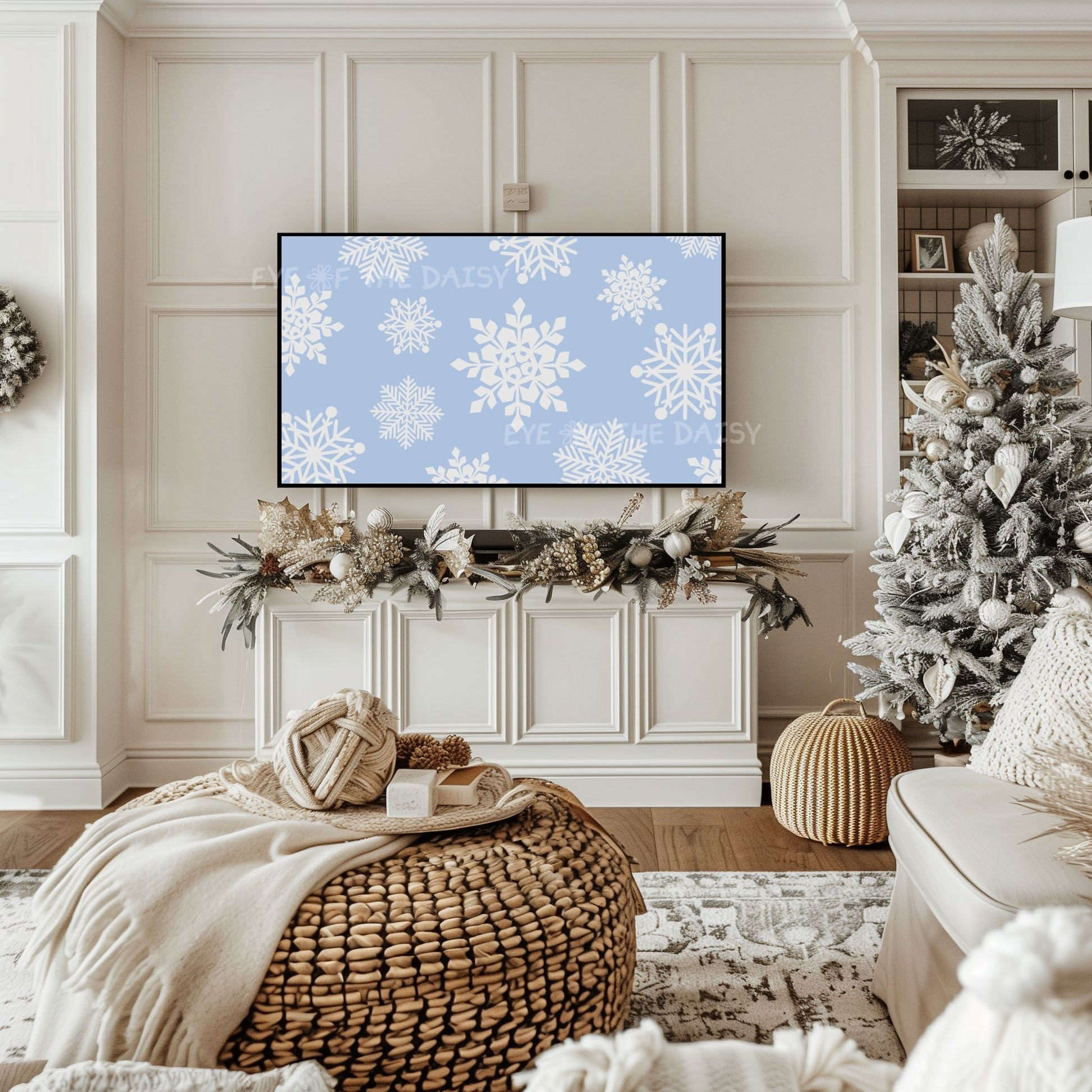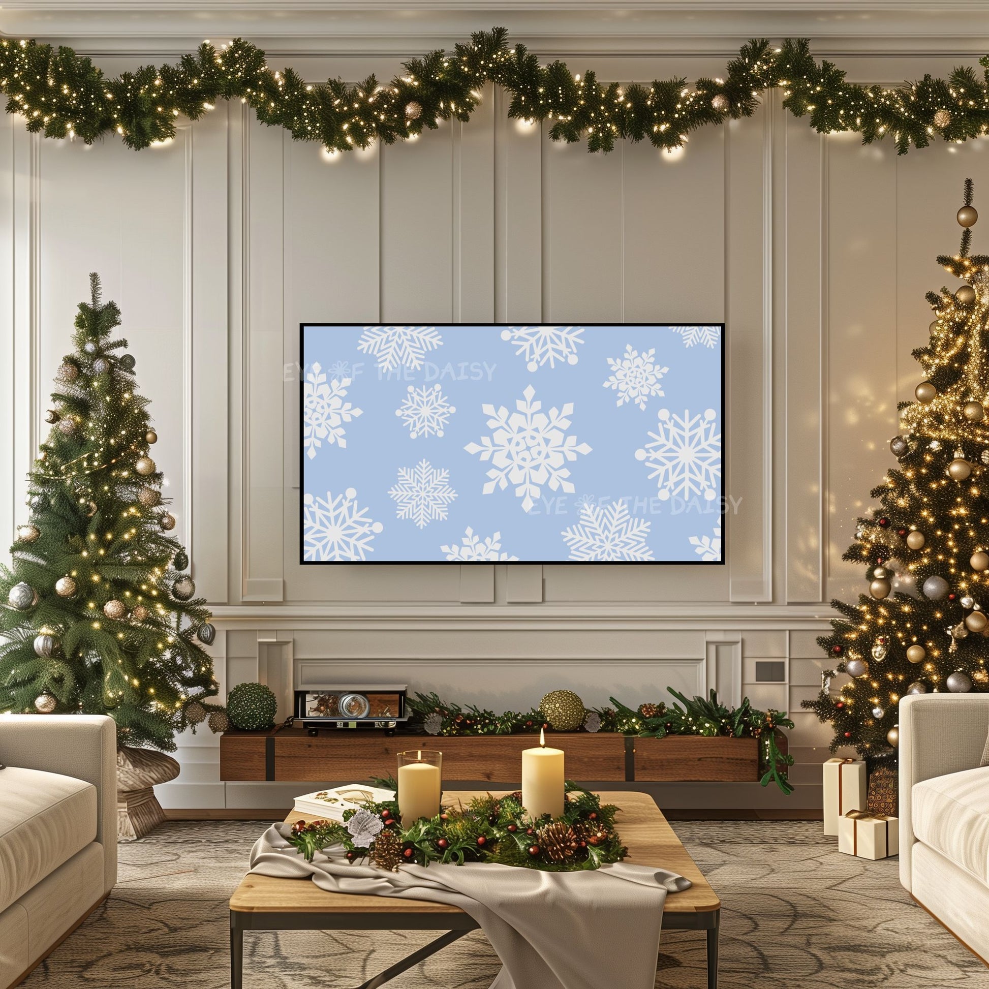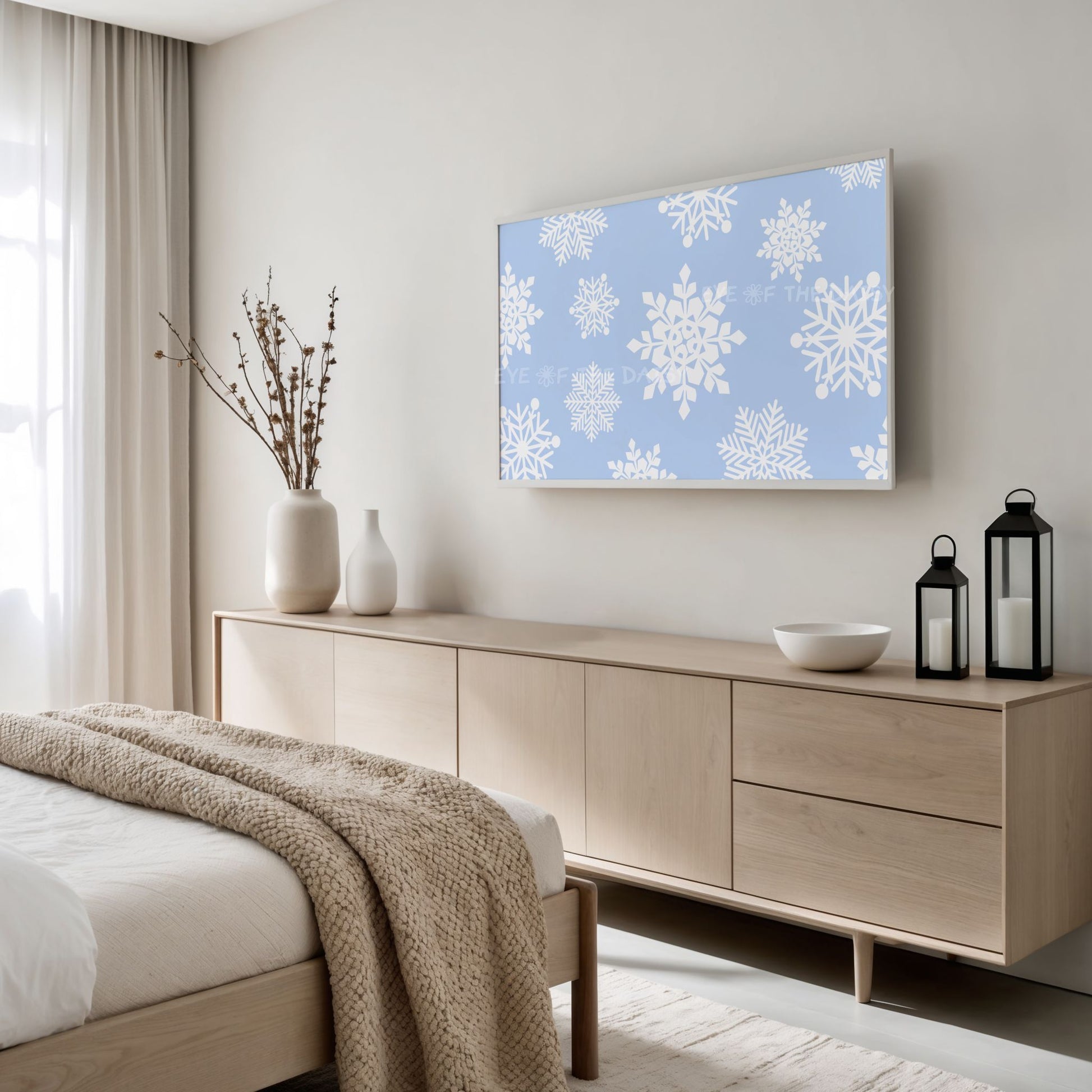 Pale Blue White Snowflakes Christmas TV Art 4K | Minimal Holiday 4K TV Artwork