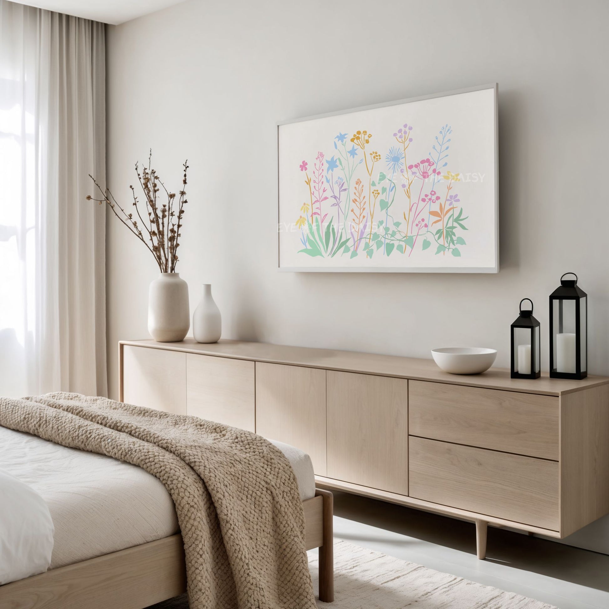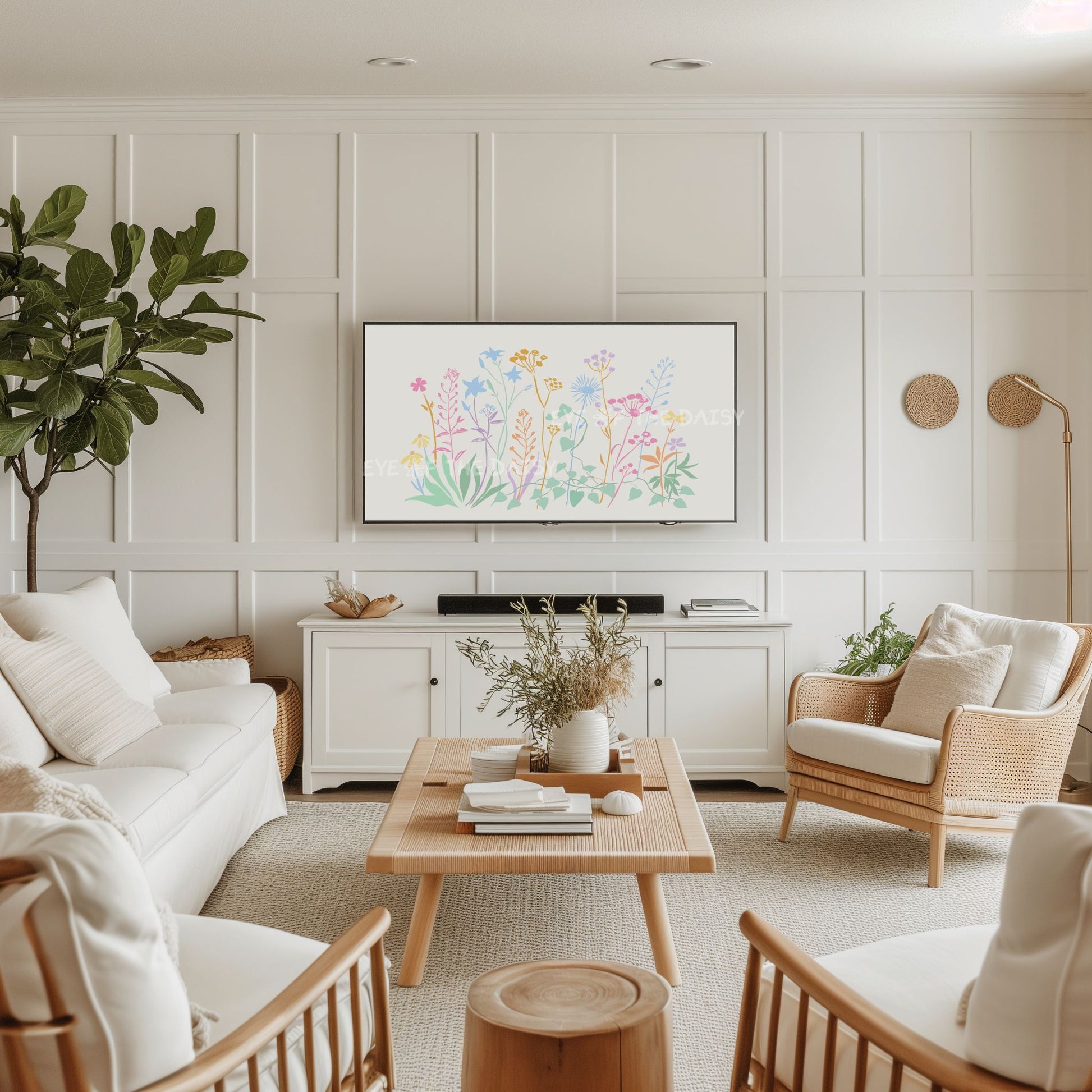 Pastel Floral Sketch 4K TV Art | Colourful Flowers Botanical 4K Art for TV Screen