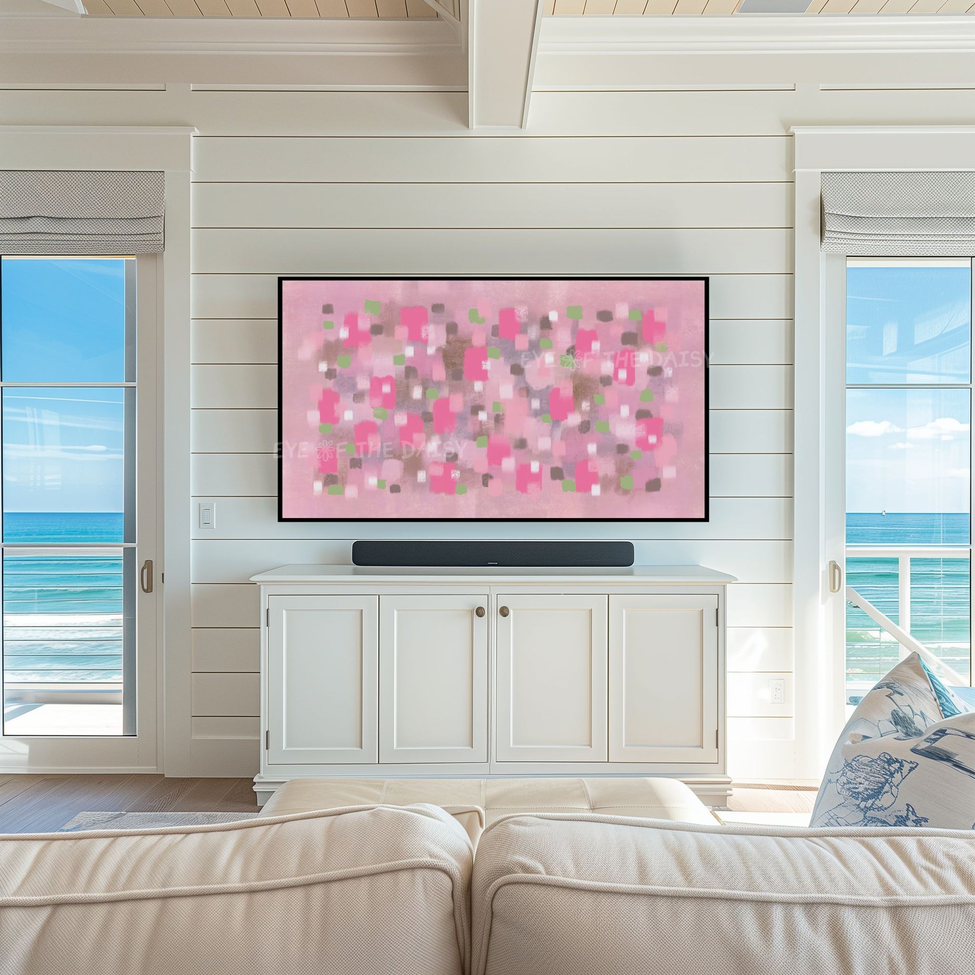 Pink Abstract Expressionist 4K TV Art | Contemporary Brushstrokes Art for TV Screen 4K
