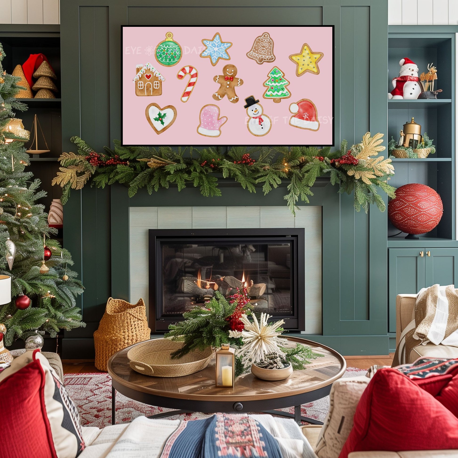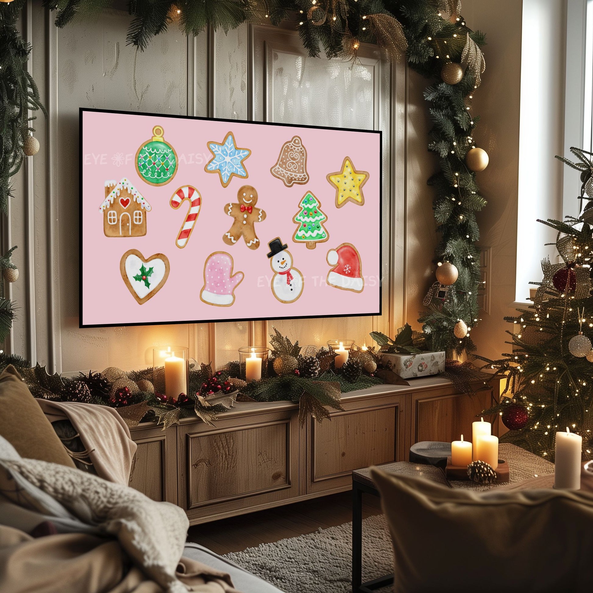 Pink Christmas Cookies 4K TV Art | Pastel Pink Holiday TV Art for TV Screen 4K