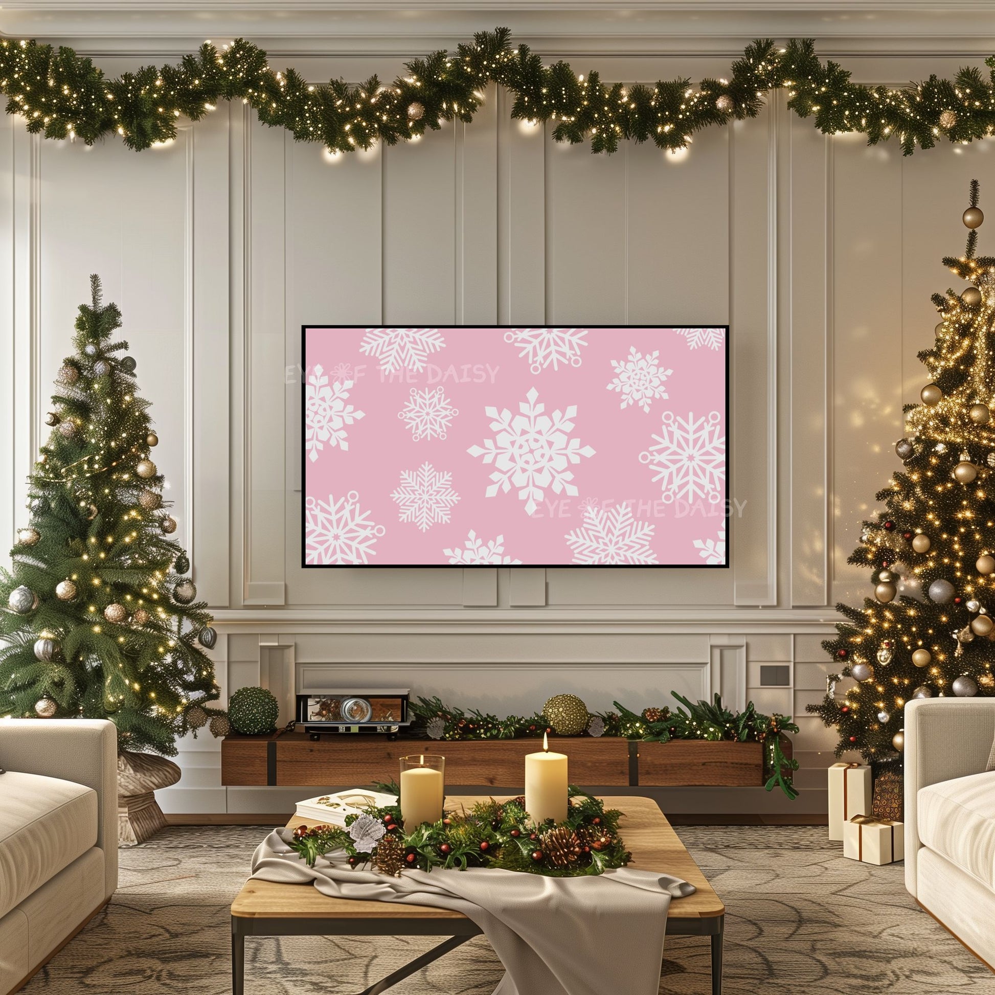 Pink Christmas Snowflakes 4K TV Art | Retro Pastel Pink Holiday TV Artwork 4K