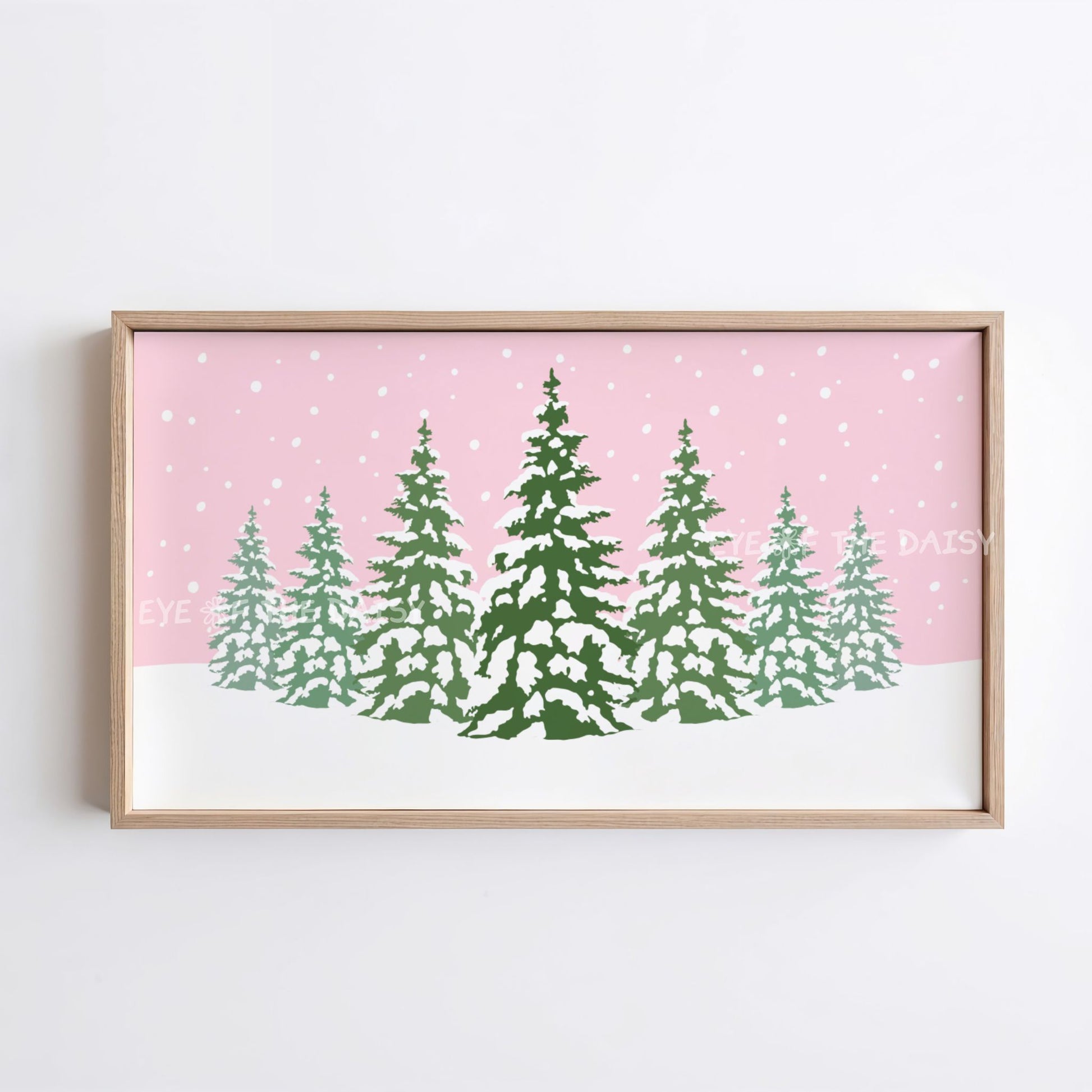 Pink Christmas Trees 4K TV Art | Cute Pink Holiday Snowy Landscape TV Artwork 4K