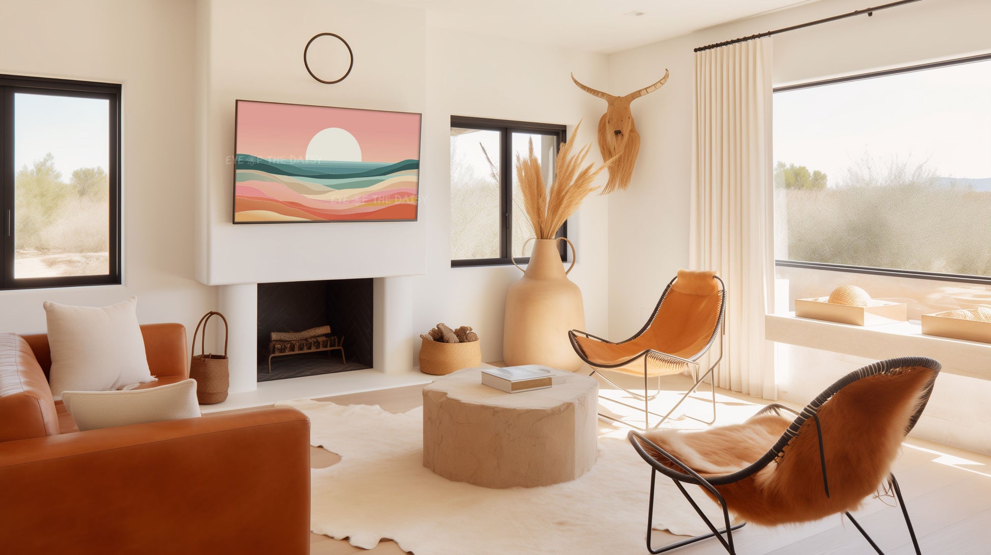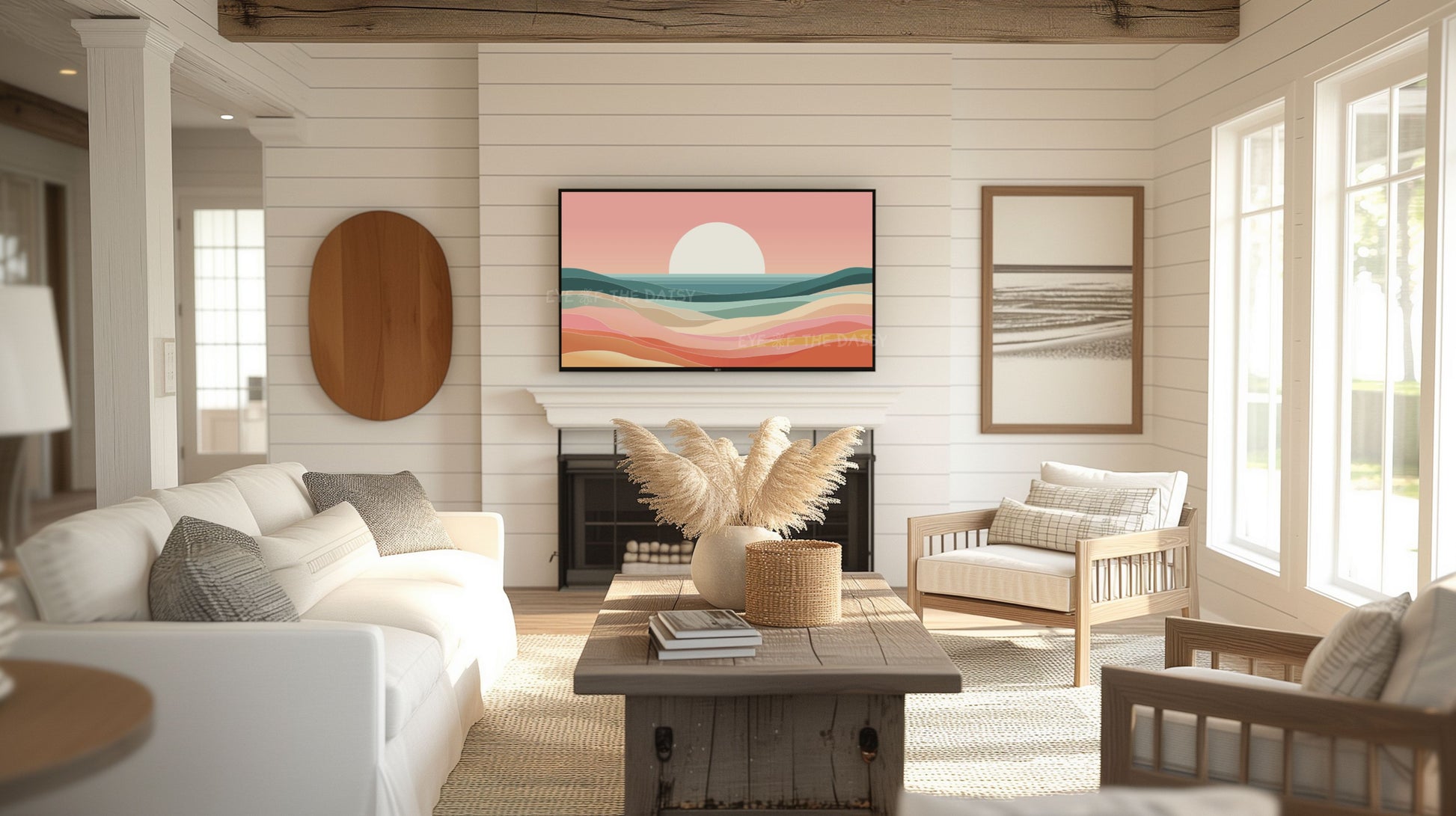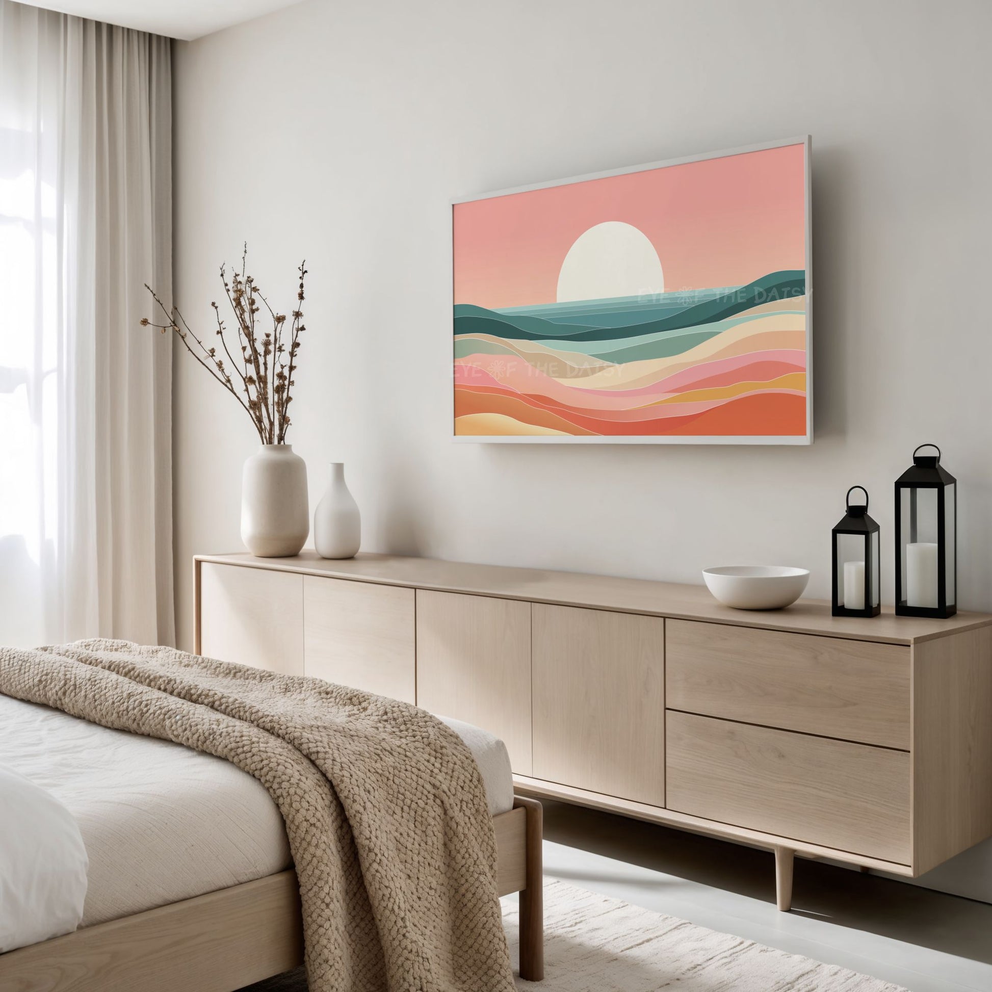Pink Orange Teal Minimal Sea Sunset 4K TV Art | Mid Century Modern Coastal TV Art 4K