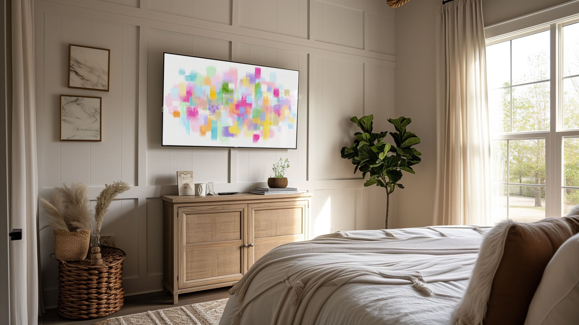 The text watermark seen in the mock-up photos is not included on the digital artwork. Colours may vary slightly depending on the TV on which the image is displayed, and all monitors display colours differently.