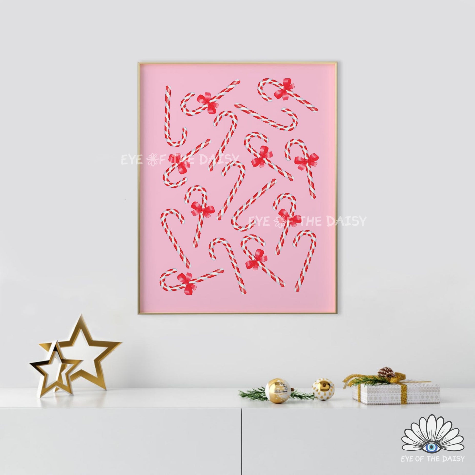 Pink Red Bows Candy Canes Print Download | Cute Whimsical Christmas Printable Wall Art